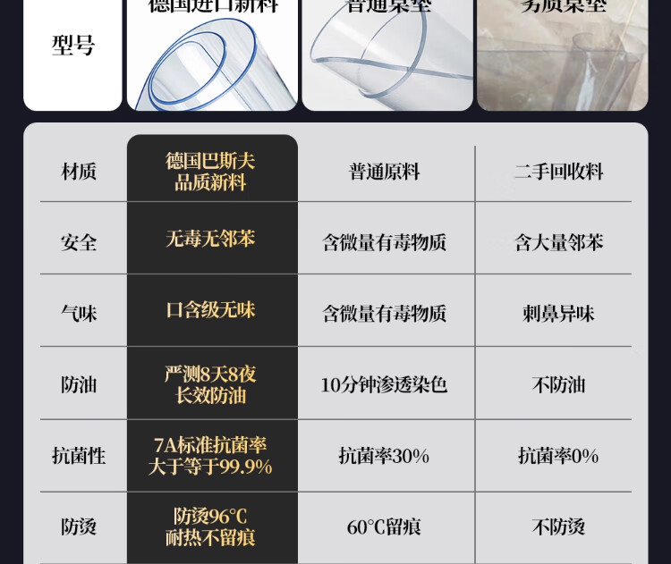 朗格【岩板专用】透明餐桌垫防烫耐高温桌垫软玻璃桌布茶几桌面垫子 【食品级无味不发黄】圆角透明(实厚1.3mm) 60X120cm