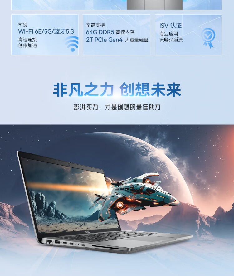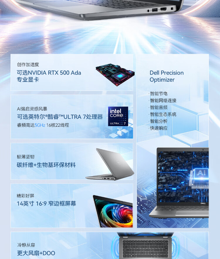 戴尔(DELL)Precision3490 14英寸笔记本 AIGC移动工作站 Ultra7-165H 32G 1T RTX500Ada4GB