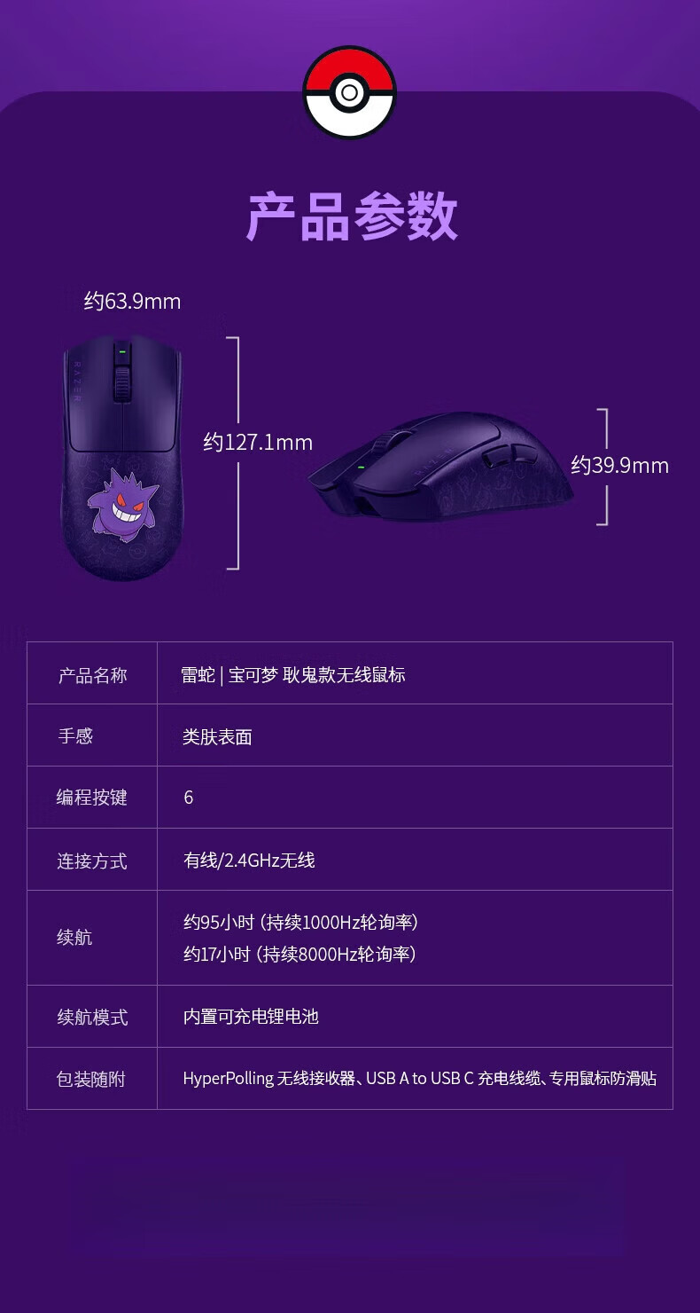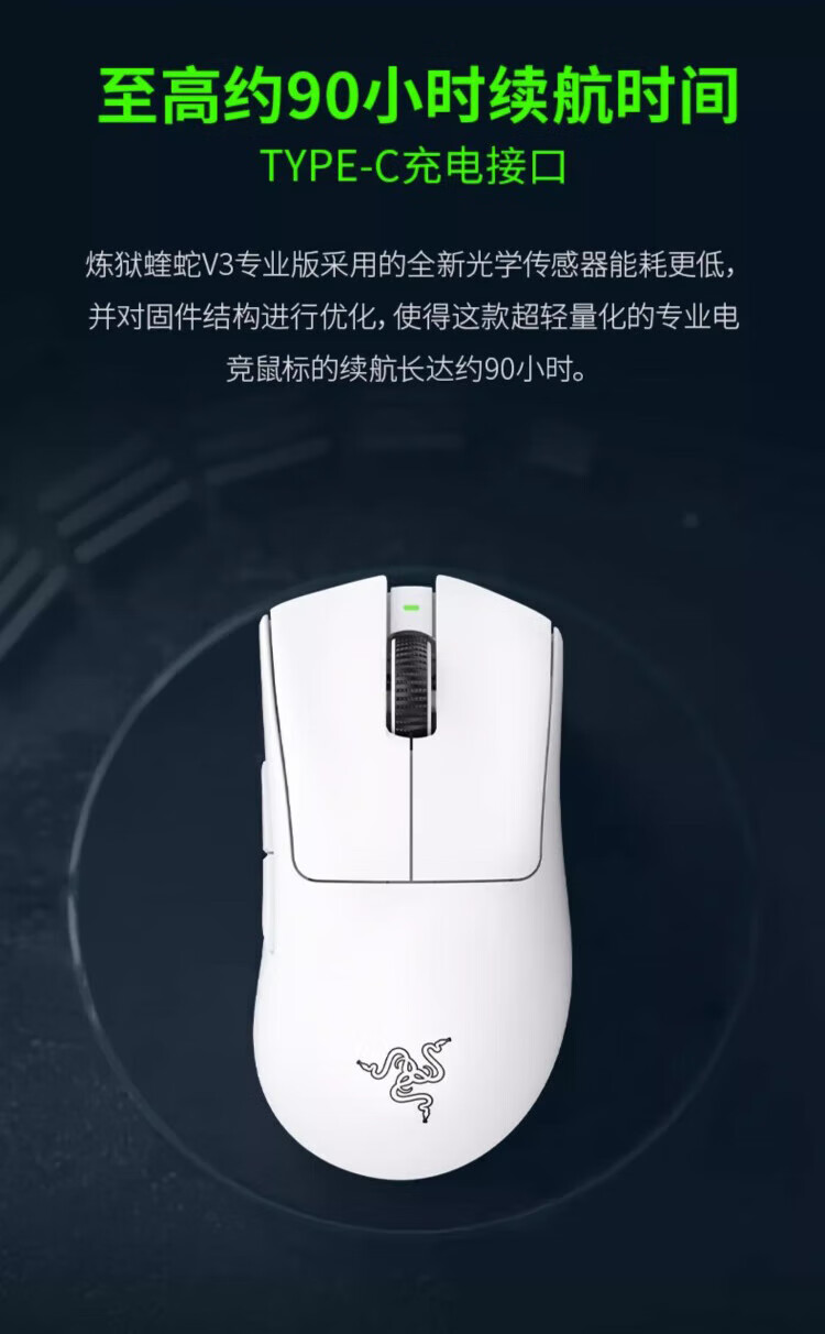 雷蛇蝰蛇V3PRO毒蝰V3PRO皮卡丘毒蝰v2pro毒蝰v3pro耿鬼联名版蝰蛇v4pro毒蝰v3cs联名无线电竞鼠标 炼狱蝰蛇V3pro专业版白色