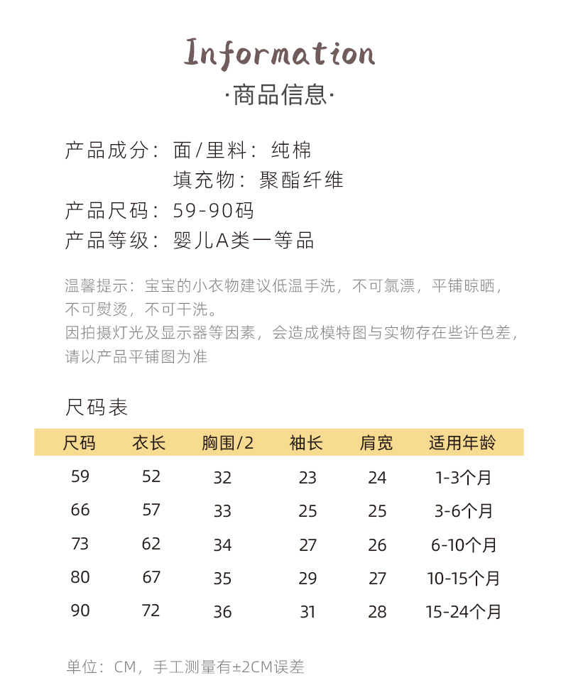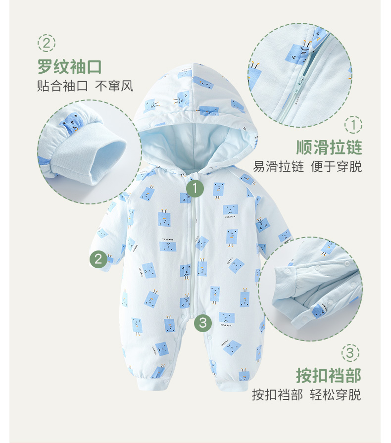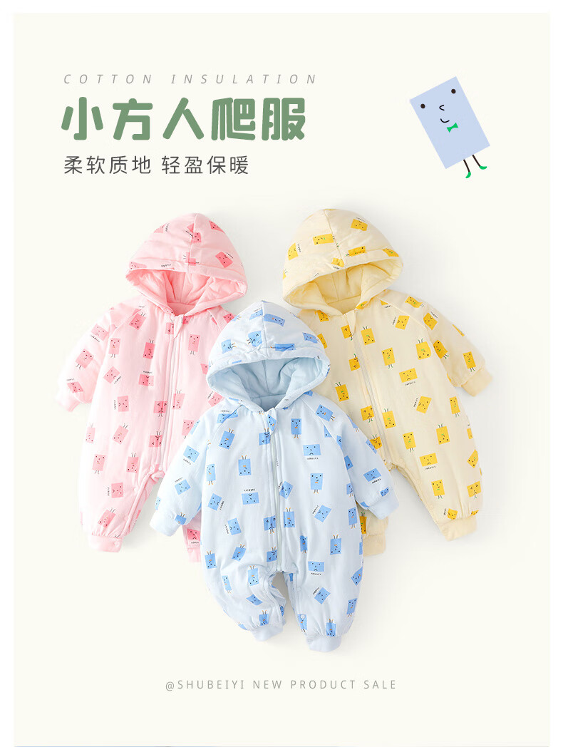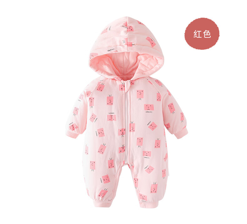 舒贝怡婴儿衣服新生儿连体衣男女保暖夹棉满月周岁宝宝哈衣百天爬服粉80