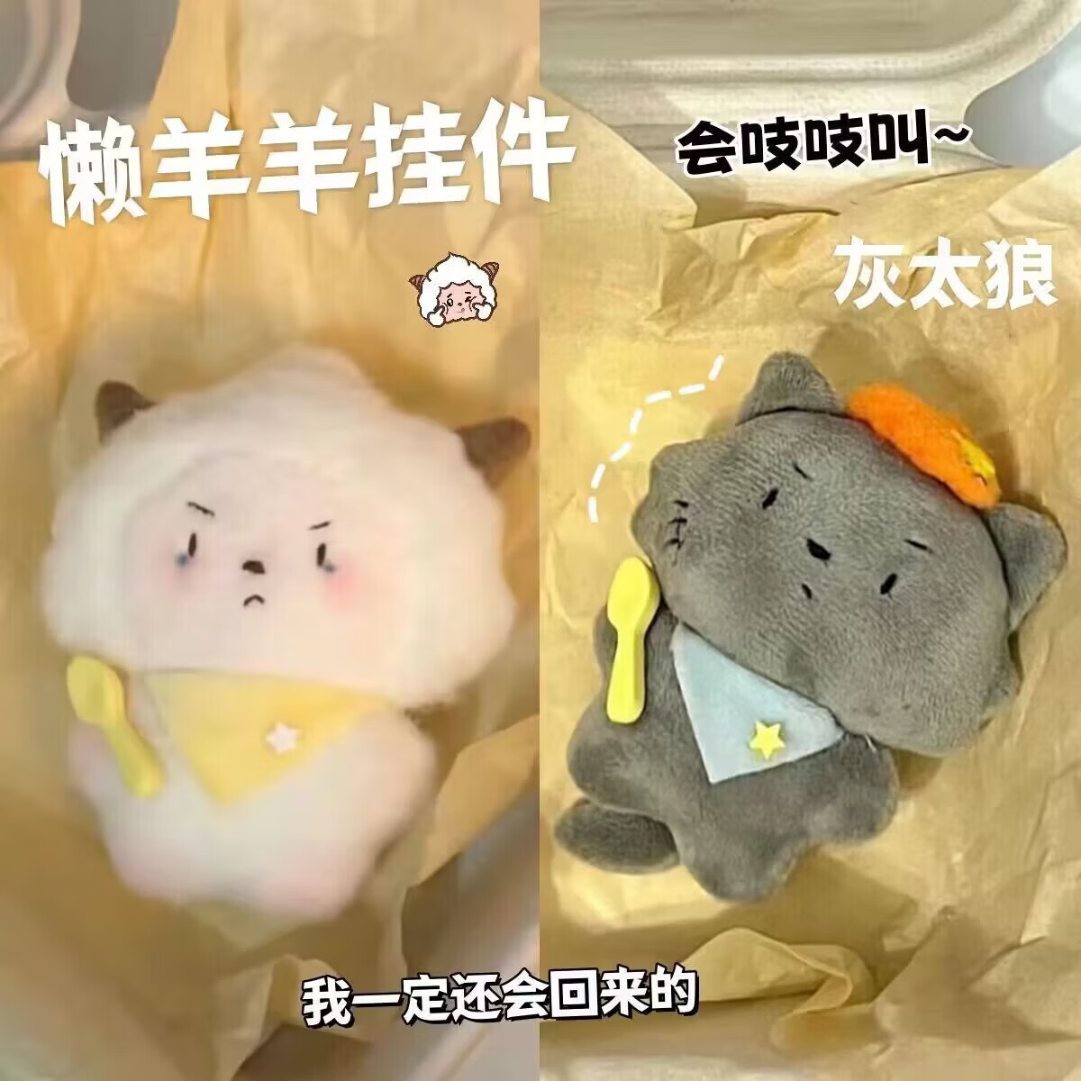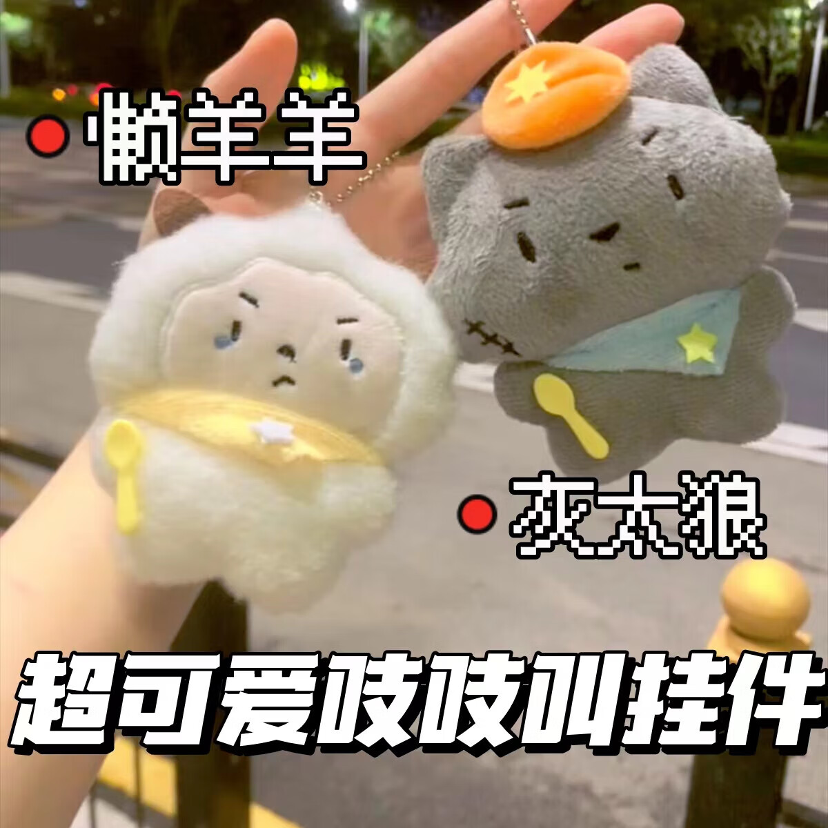 【精选】灰太狼懒羊羊吱吱叫可爱卡通毛绒钥匙扣书包玩偶公仔挂件 卡通公仔挂件-白色-1个