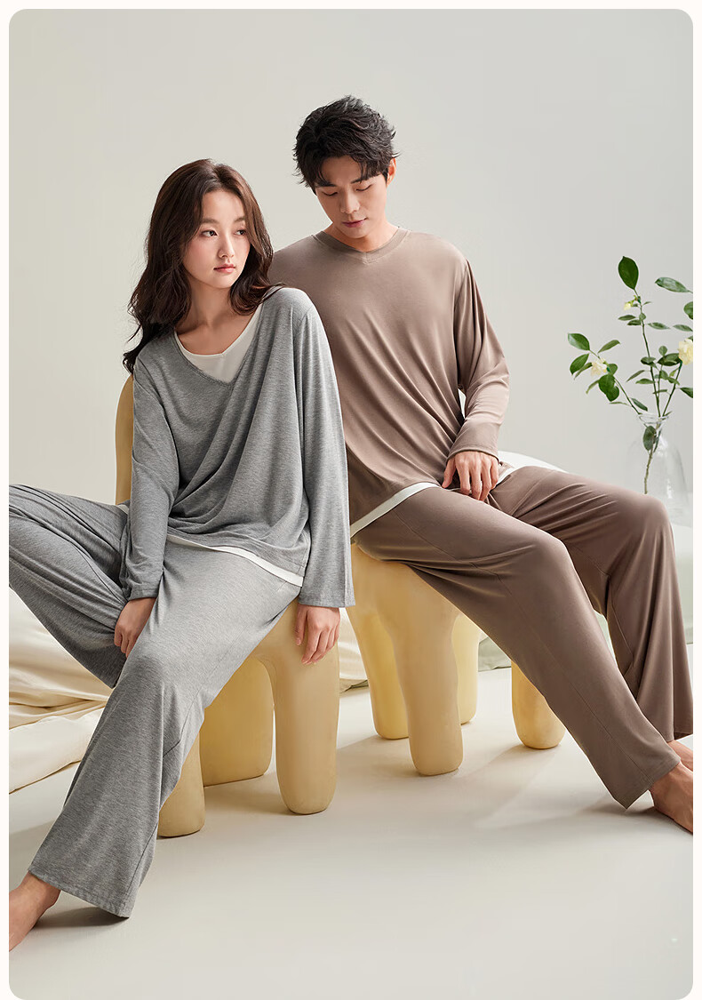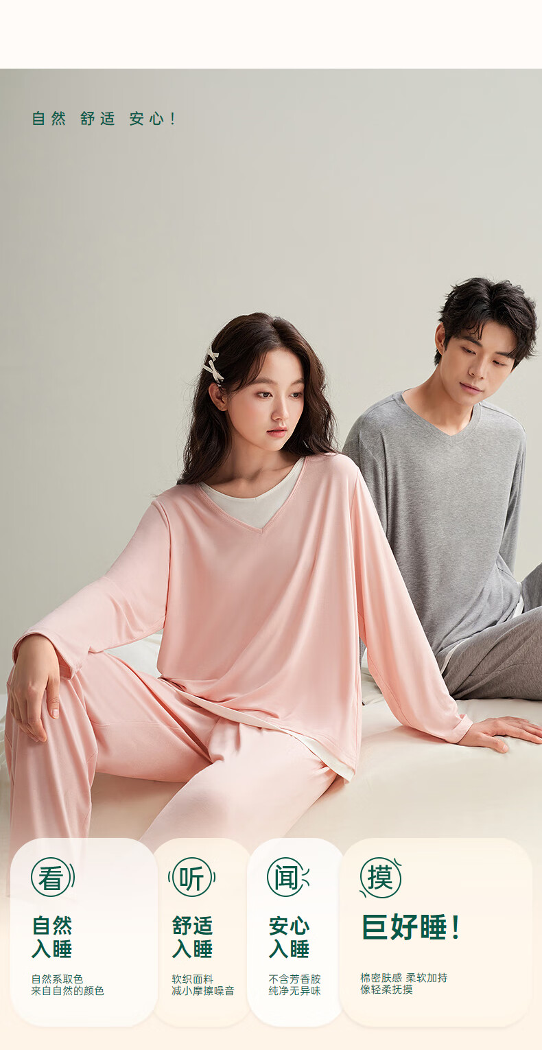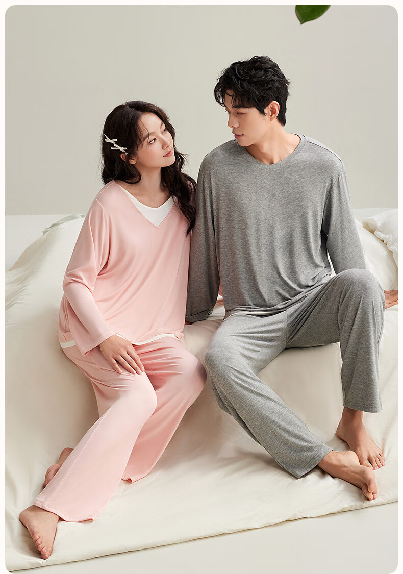 安之伴【软绵绵】情侣睡衣女春秋冬季优可丝男女士套装家居服 糖果粉-女 L