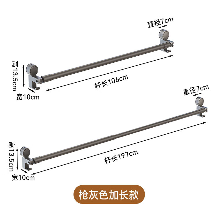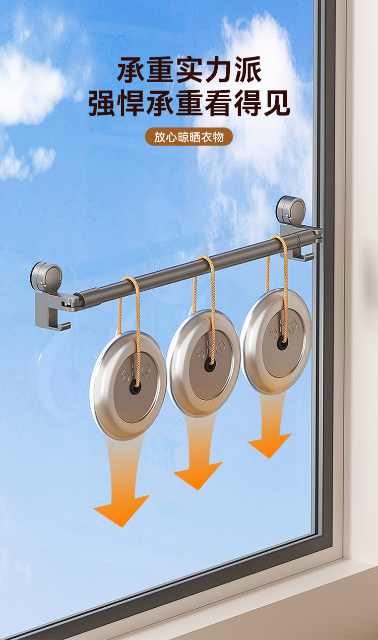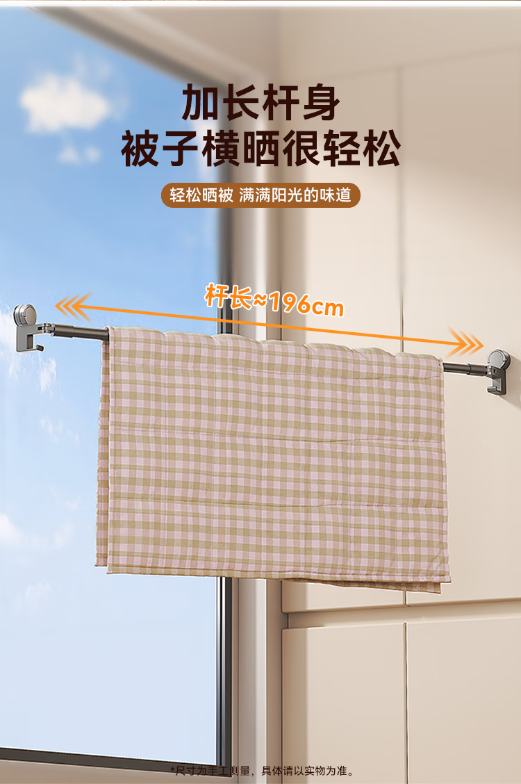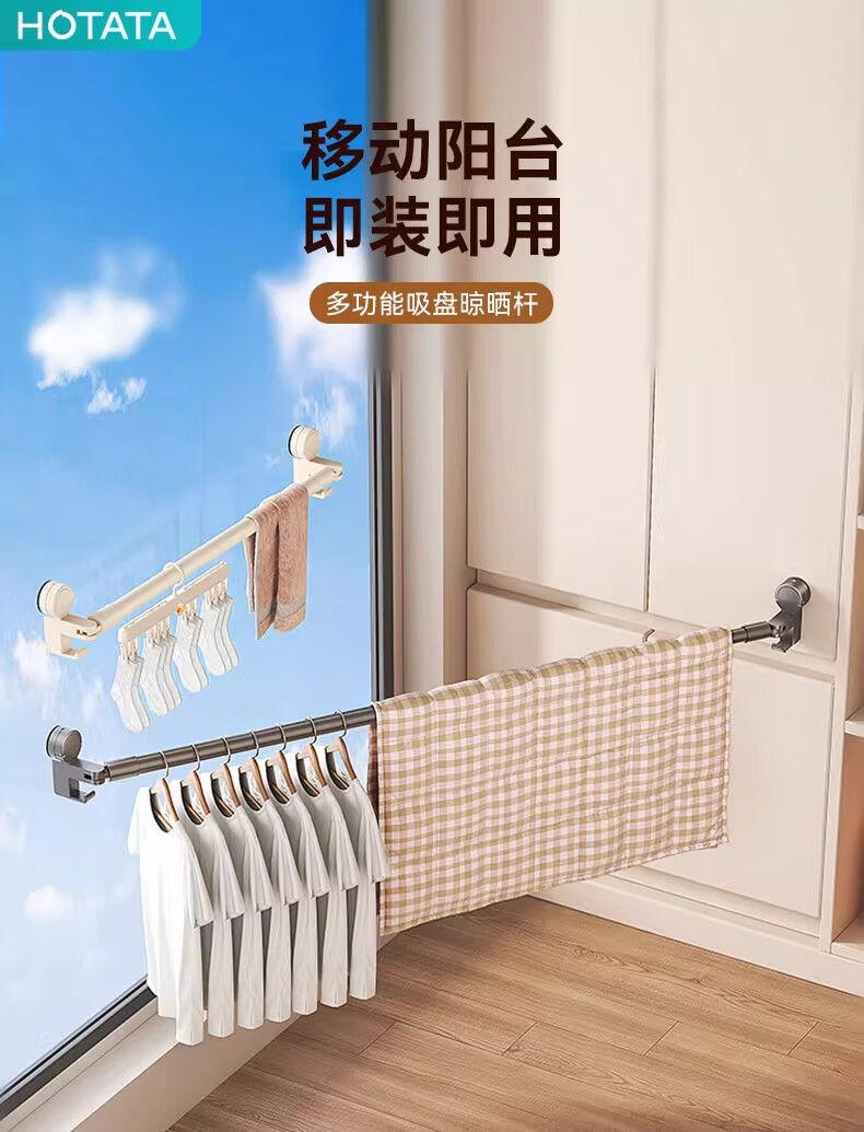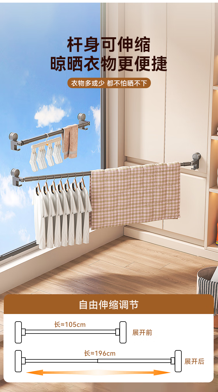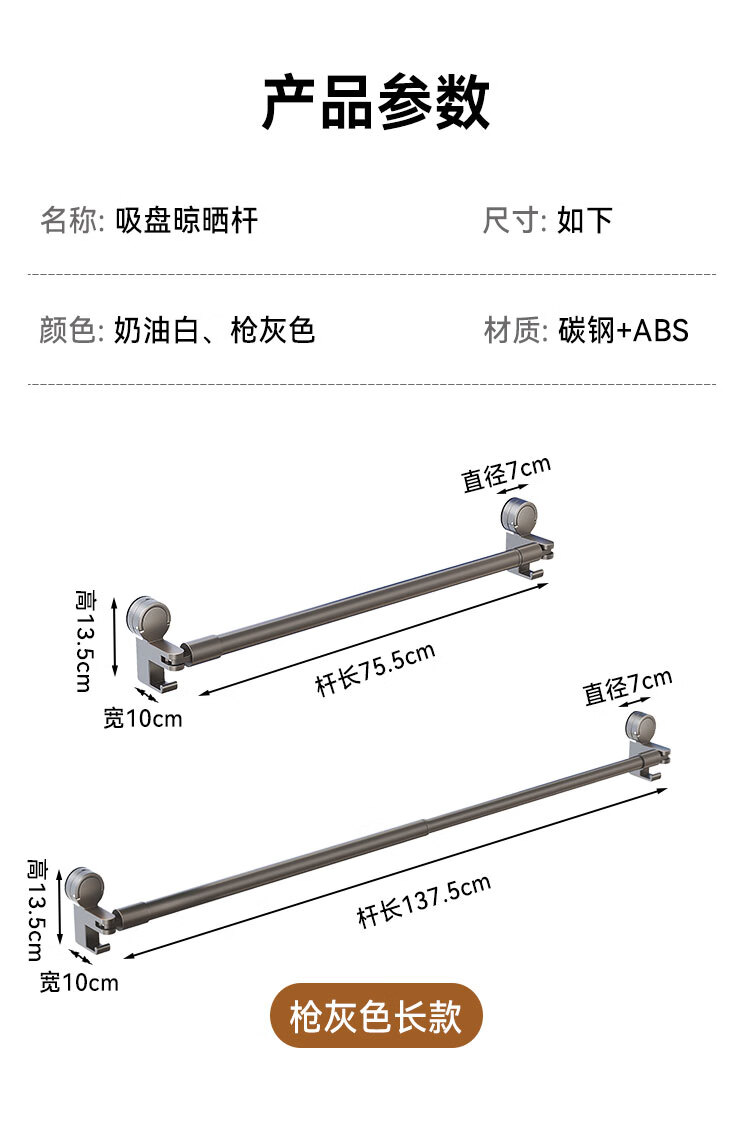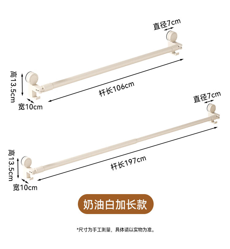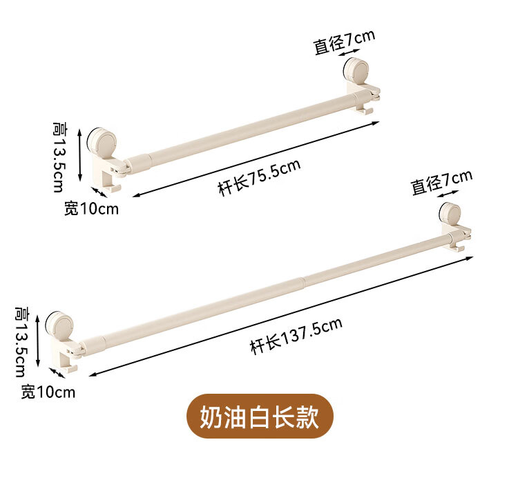 Hotata伸缩晾衣杆家用阳台吸盘免打孔便捷晾晒杆无痕吸附承重强收纳方便 【奶油白-长款】可伸缩75.5cm-137.5cm