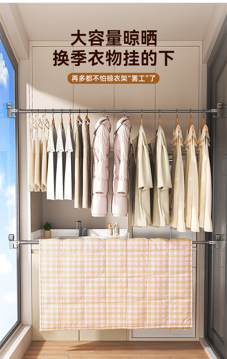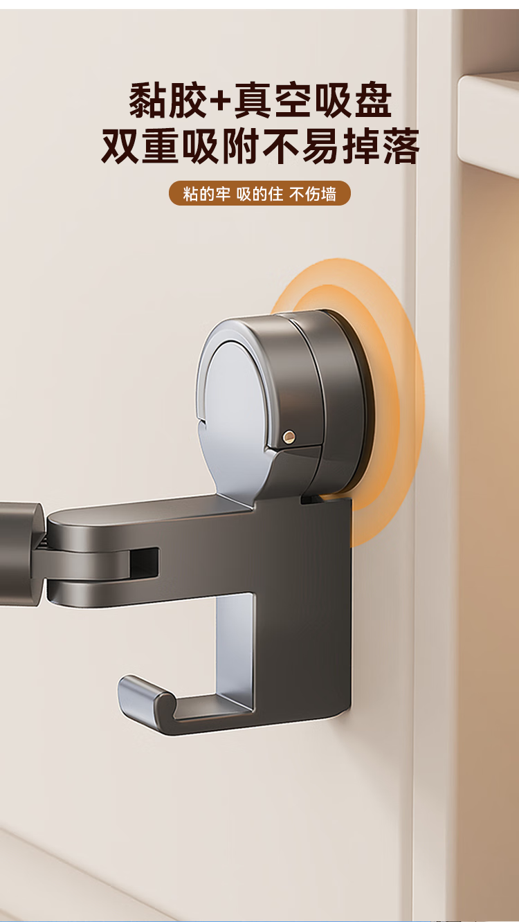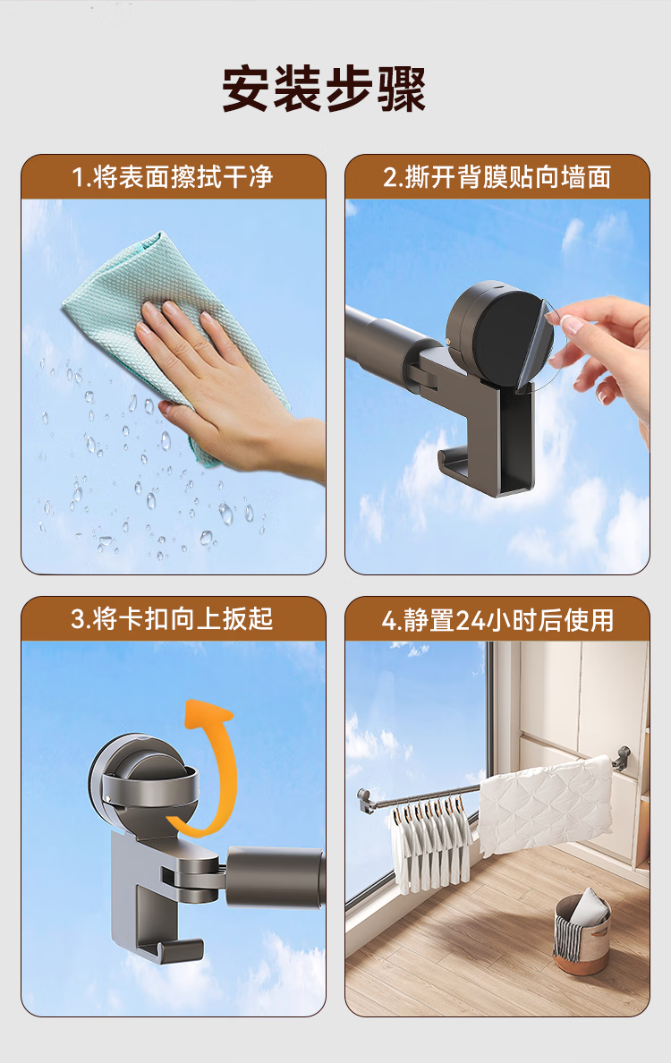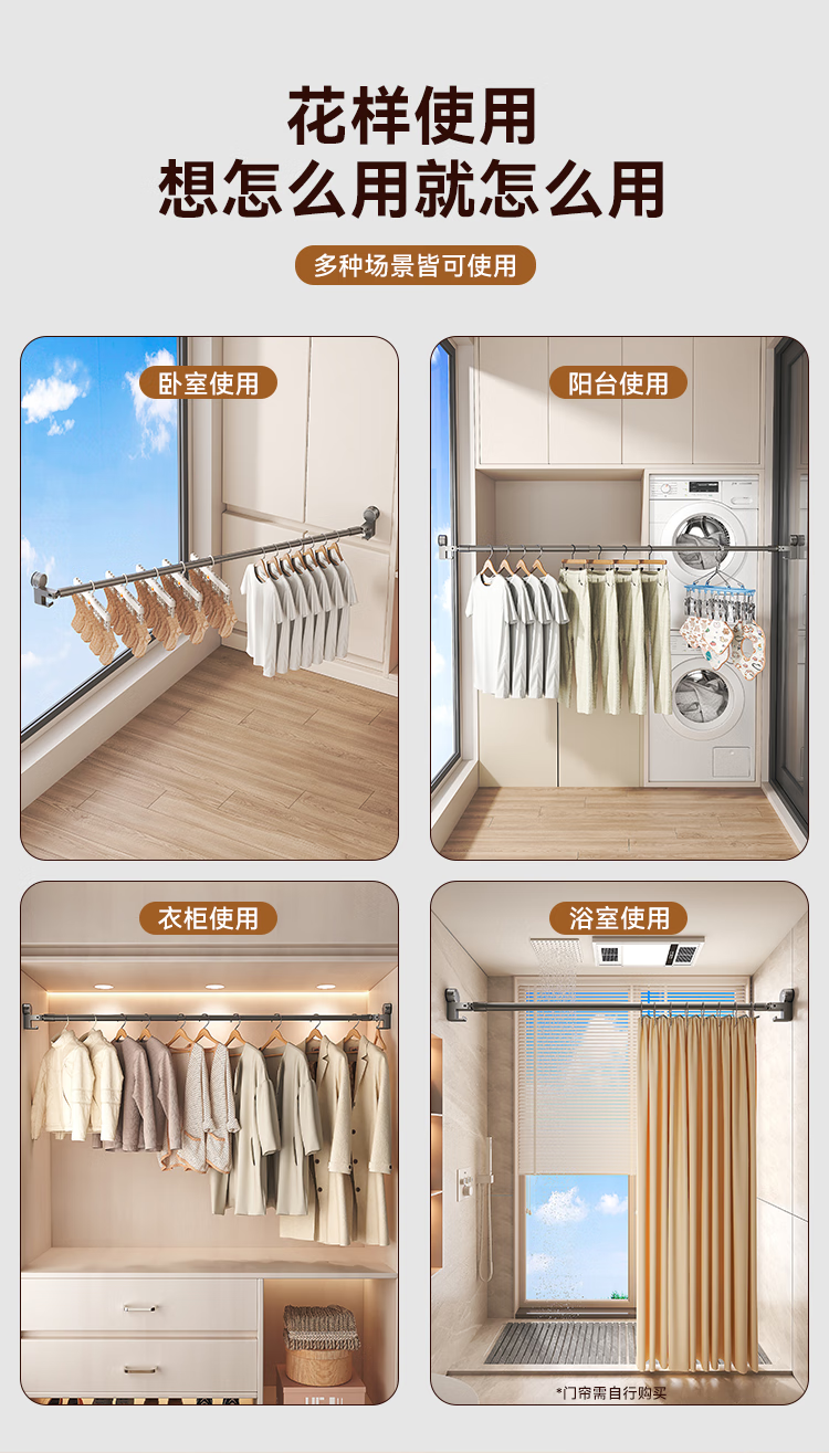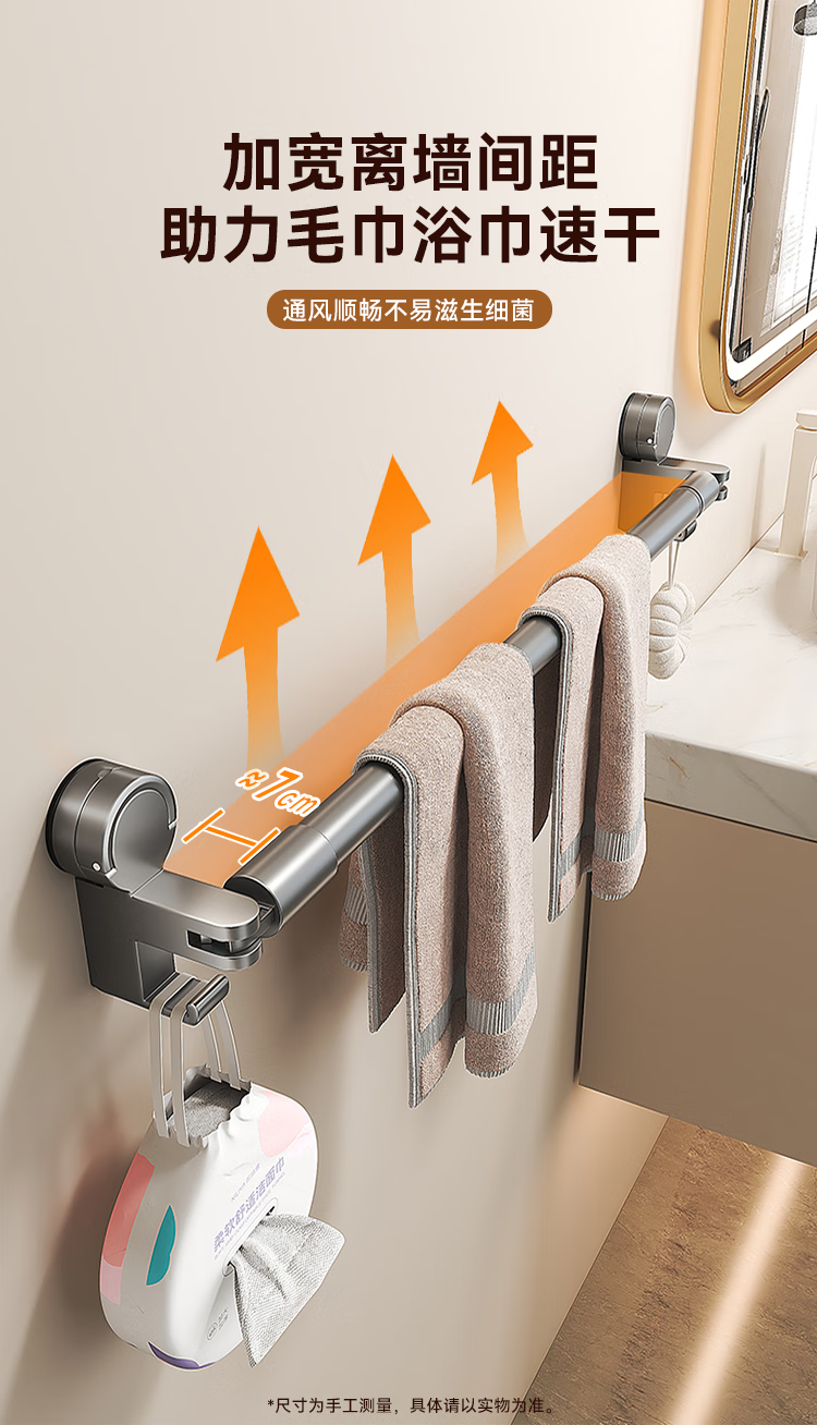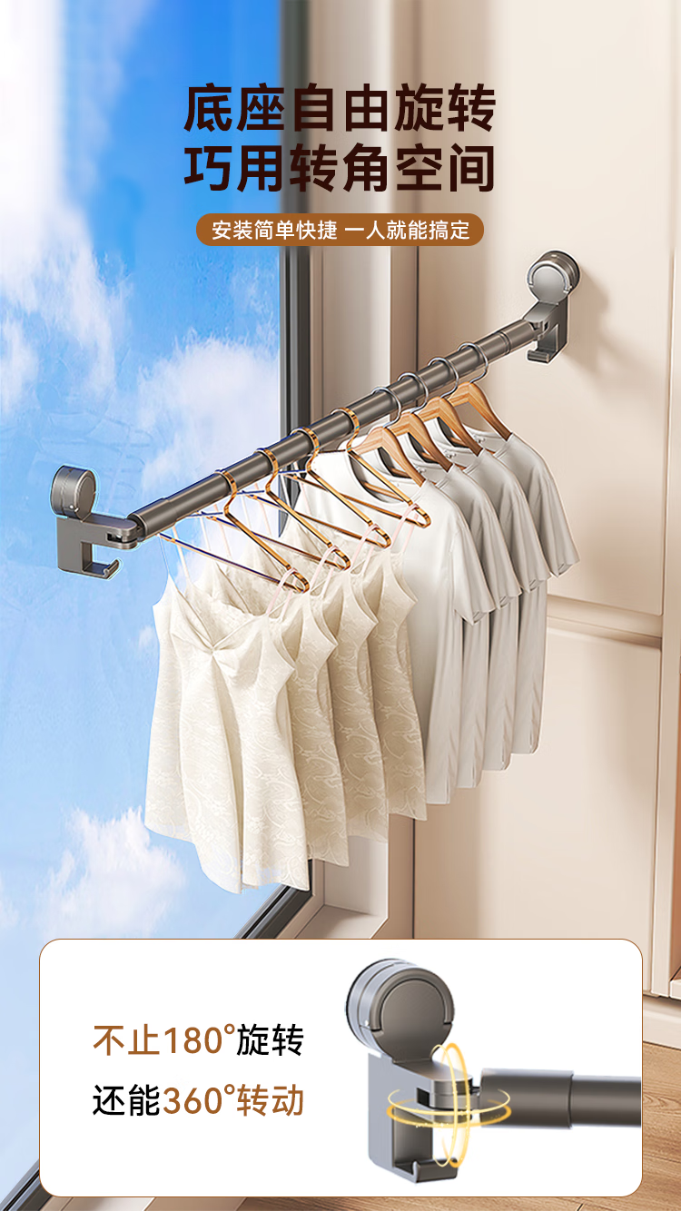 Hotata伸缩晾衣杆家用阳台吸盘免打孔便捷晾晒杆无痕吸附承重强收纳方便 【奶油白-长款】可伸缩75.5cm-137.5cm