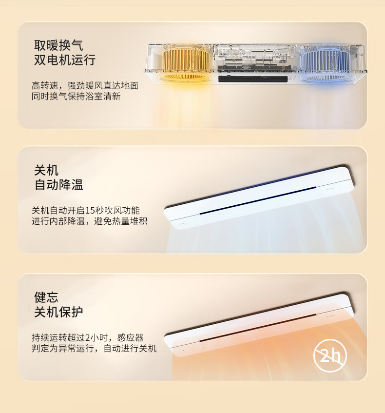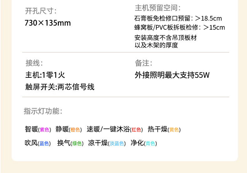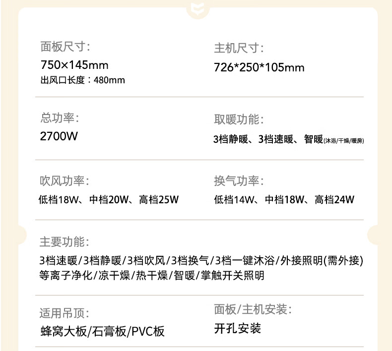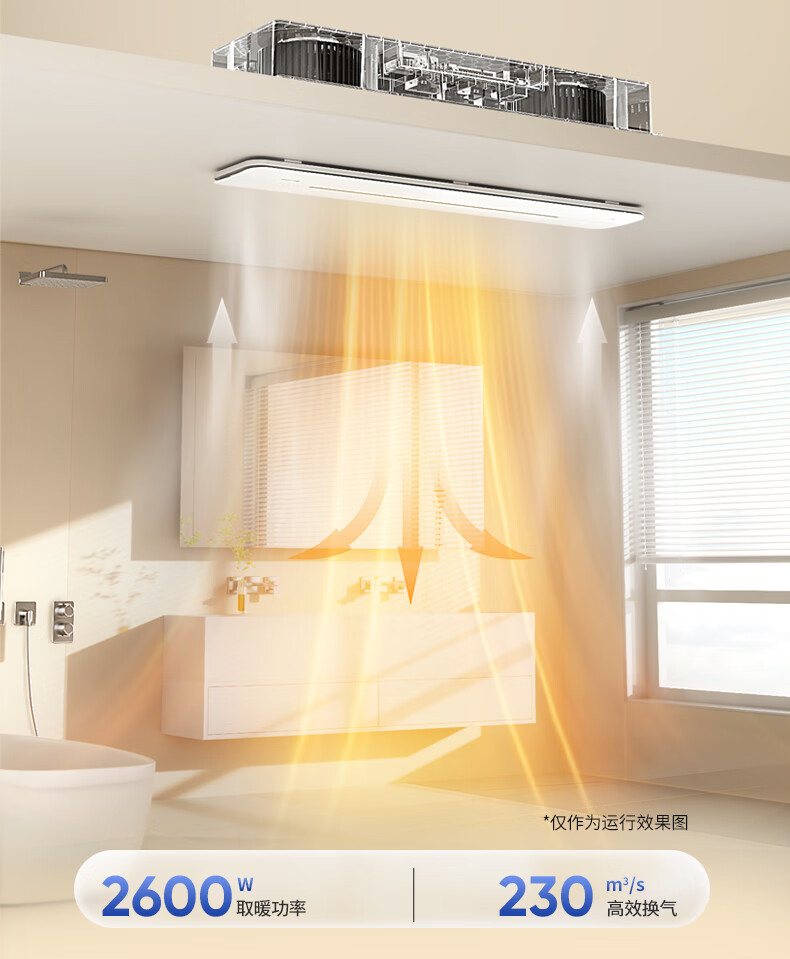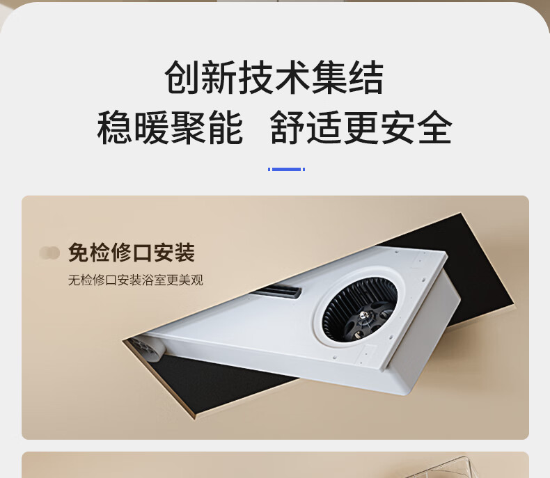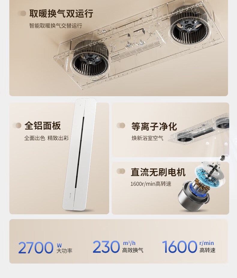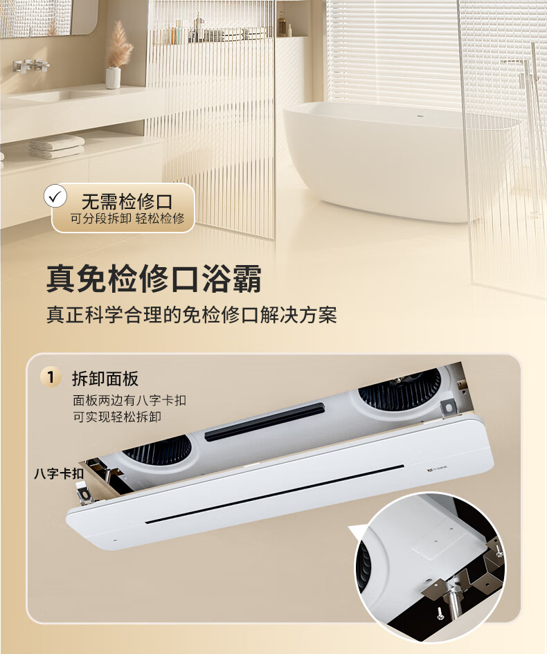 巴洛斯顿免检修口线性风暖型浴霸除菌浴室卫生间蜂窝石膏大板吊顶取暖排气 U1奶油白免检修口