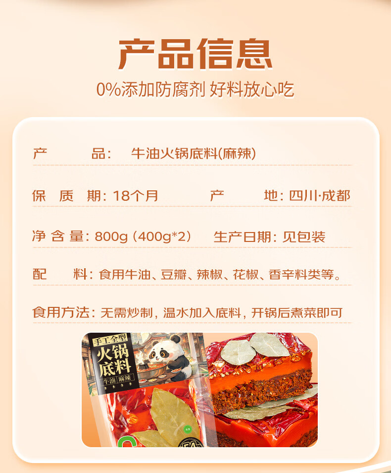 名揚名扬x京东超市联名牛油麻辣火锅底料800g(400g*2串串香锅新年送礼