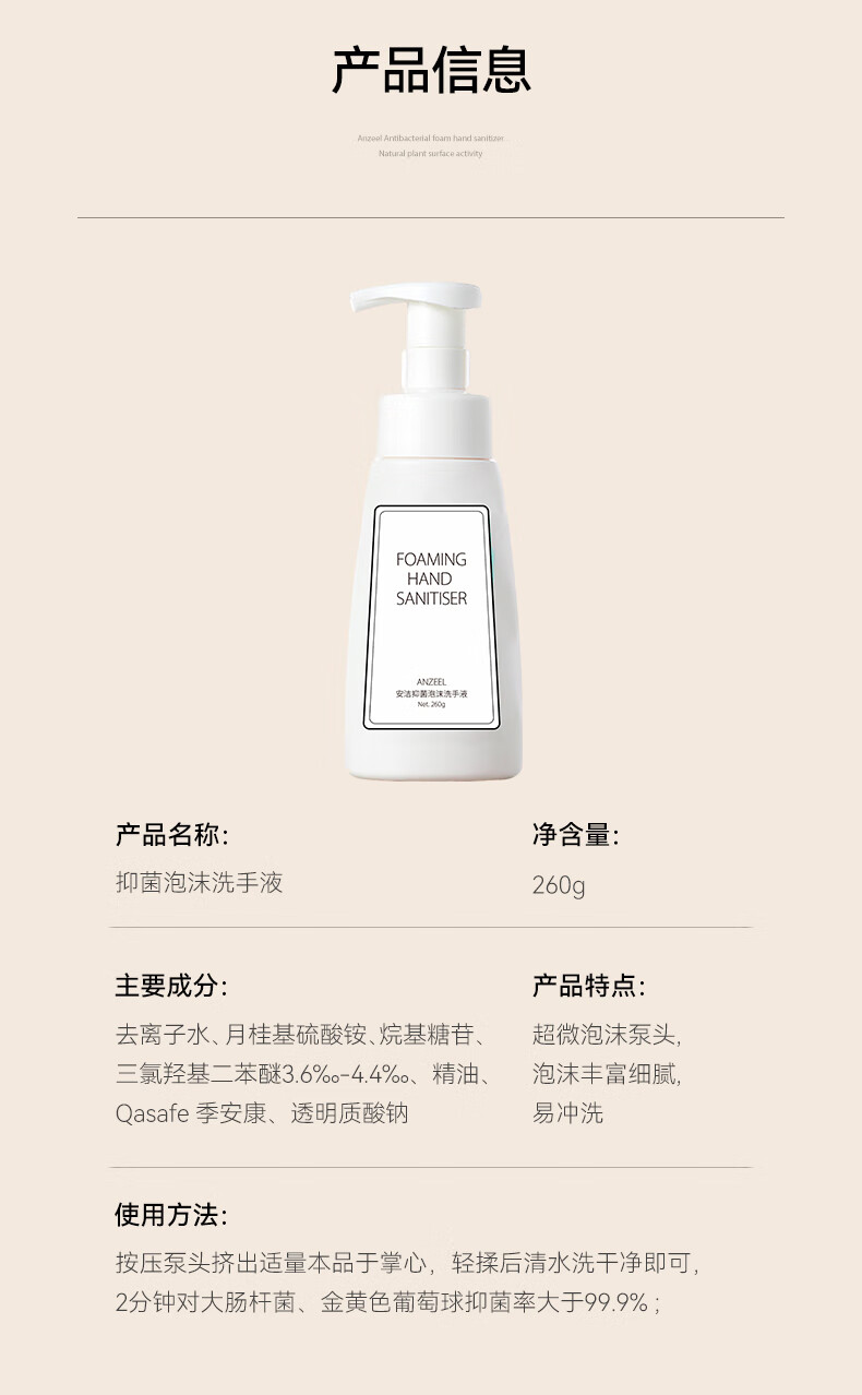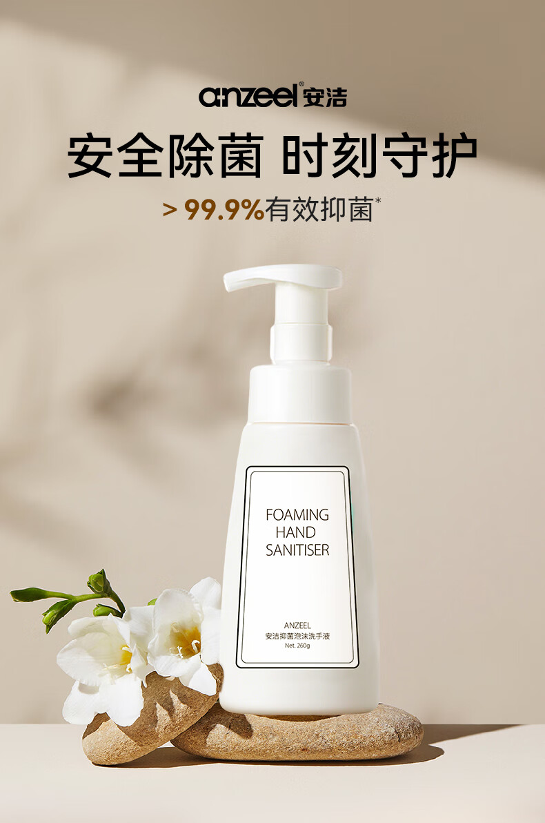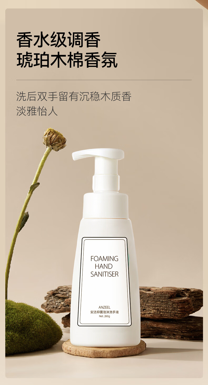 安洁(Anzeel)抑菌消毒易冲洗泡沫洗手液中性pH母婴可用泡泡洗手液星级酒店同款 挪威森林香型260g*1瓶