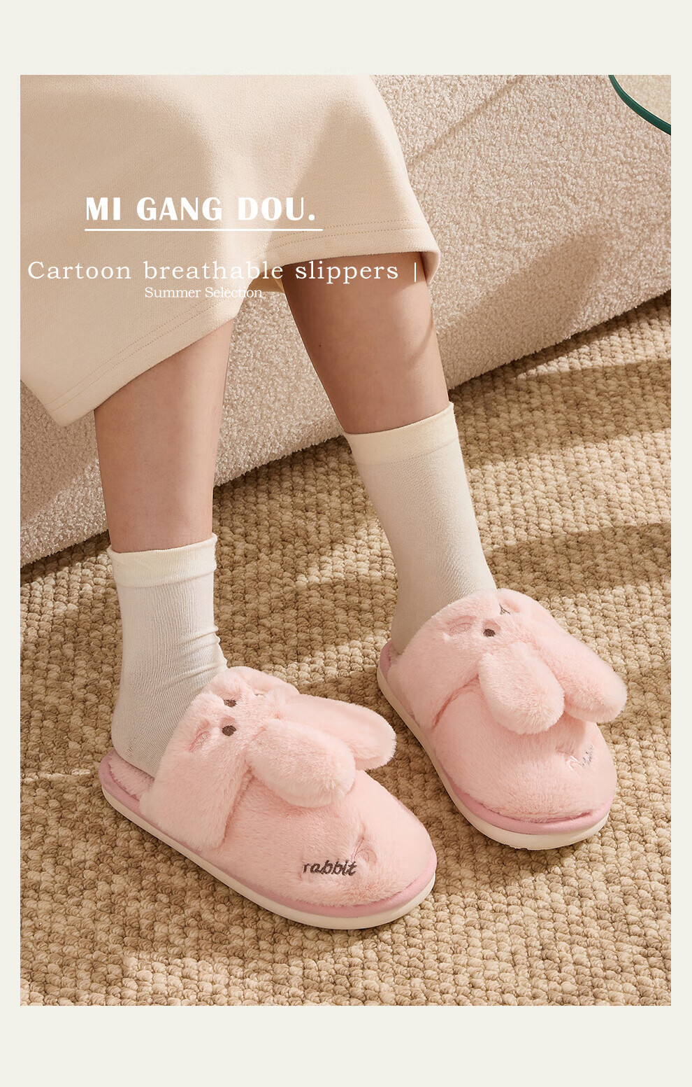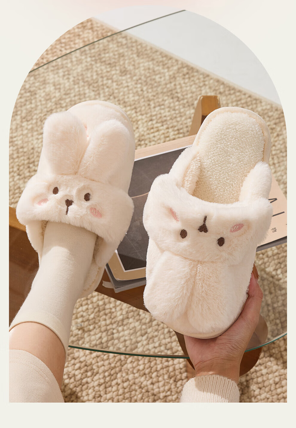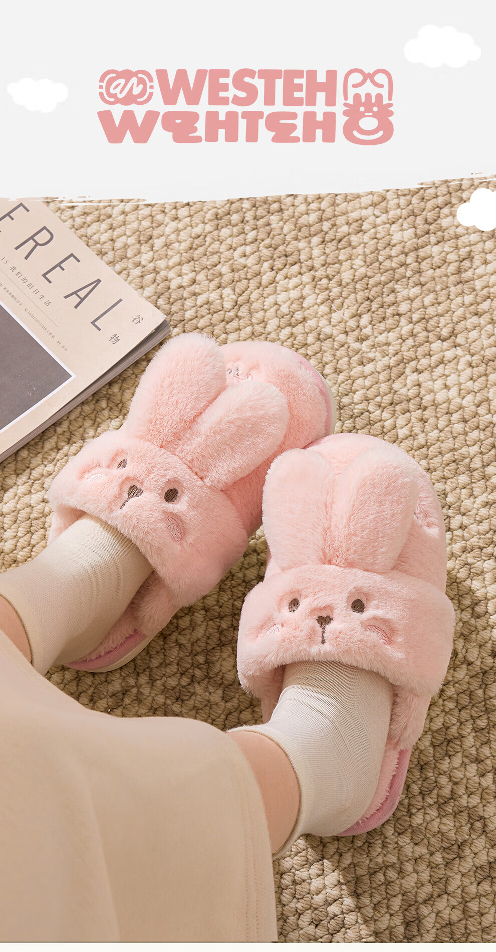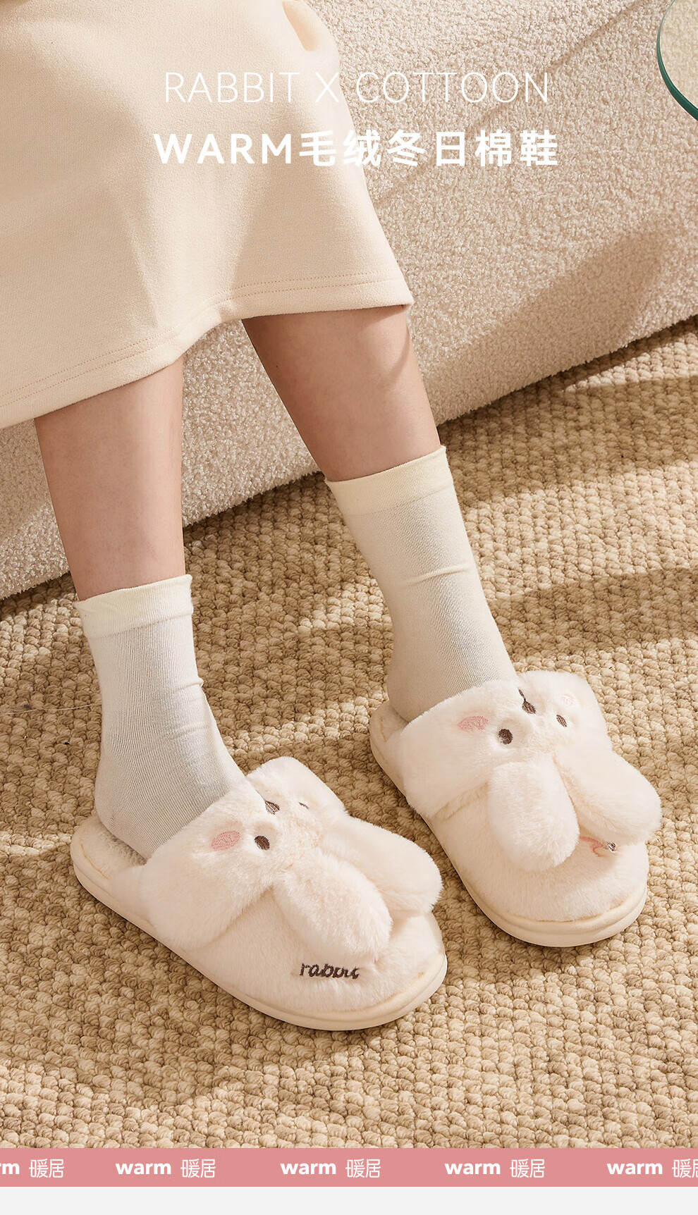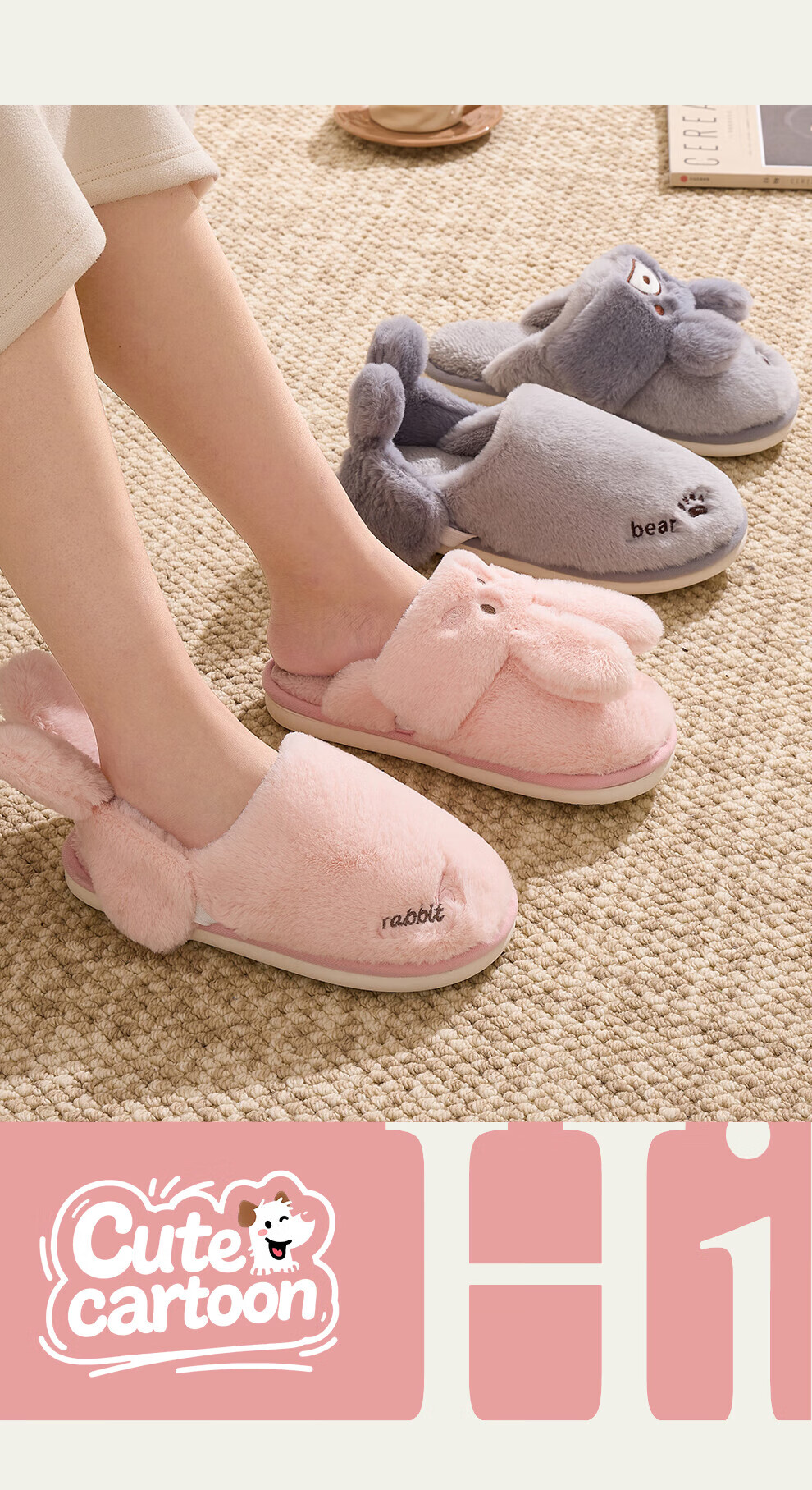 FZT棉拖鞋女冬季2025新款室内家居情侣毛绒可爱兔子毛毛拖鞋女士冬款 粉色【可爱保暖两用】 36-37 正码