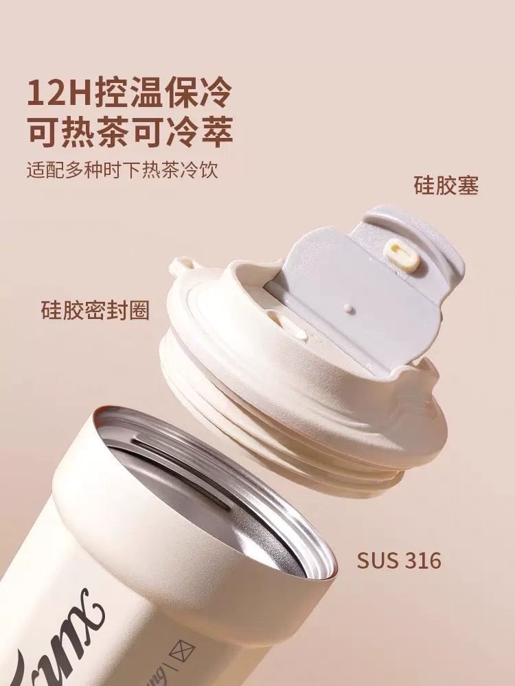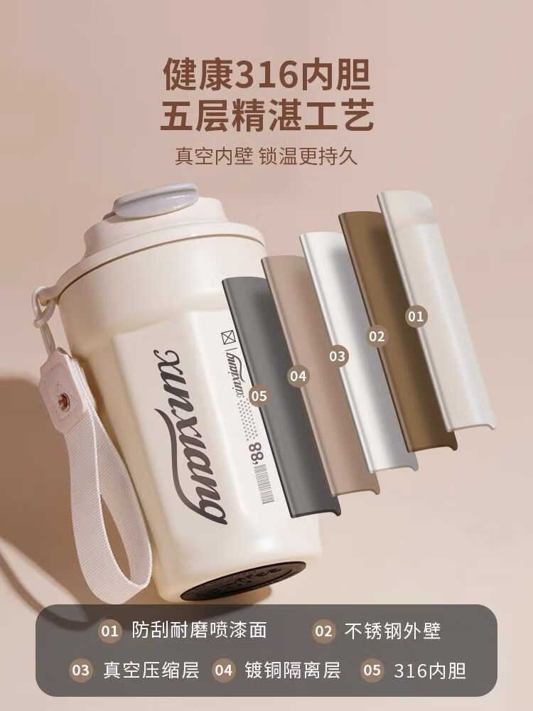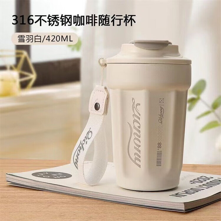 简漾咖啡杯保温杯316不锈钢随行杯女款办公室ins高颜值杯子男外带专用 升级316保温杯 白色-480ml送提绳