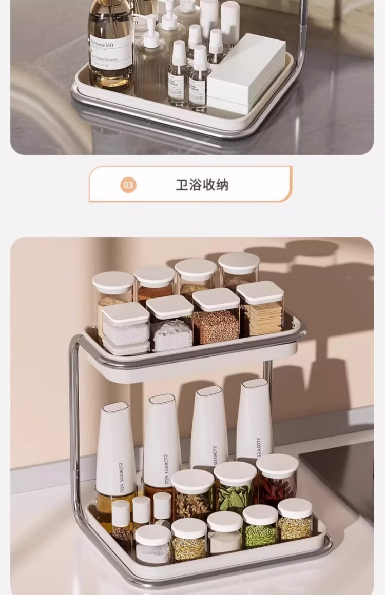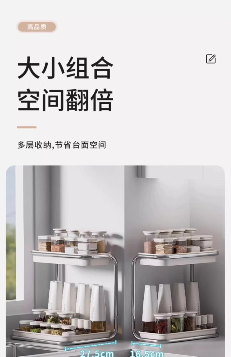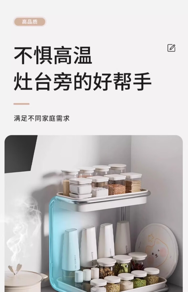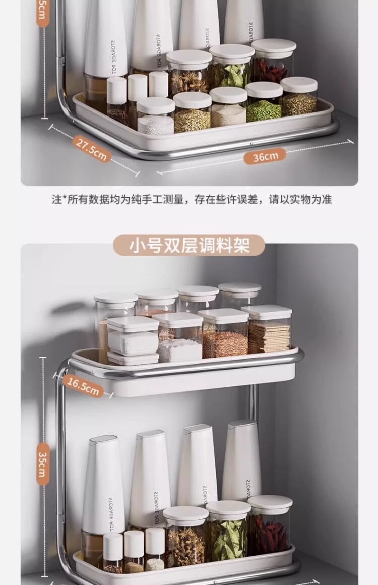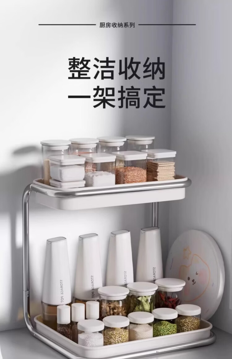 尔思家厨房调料置物架台面免安装双层放调料收纳盒多功能油盐酱醋储物架 奶油白 小号 双层钣金调料架