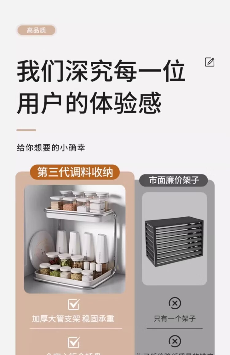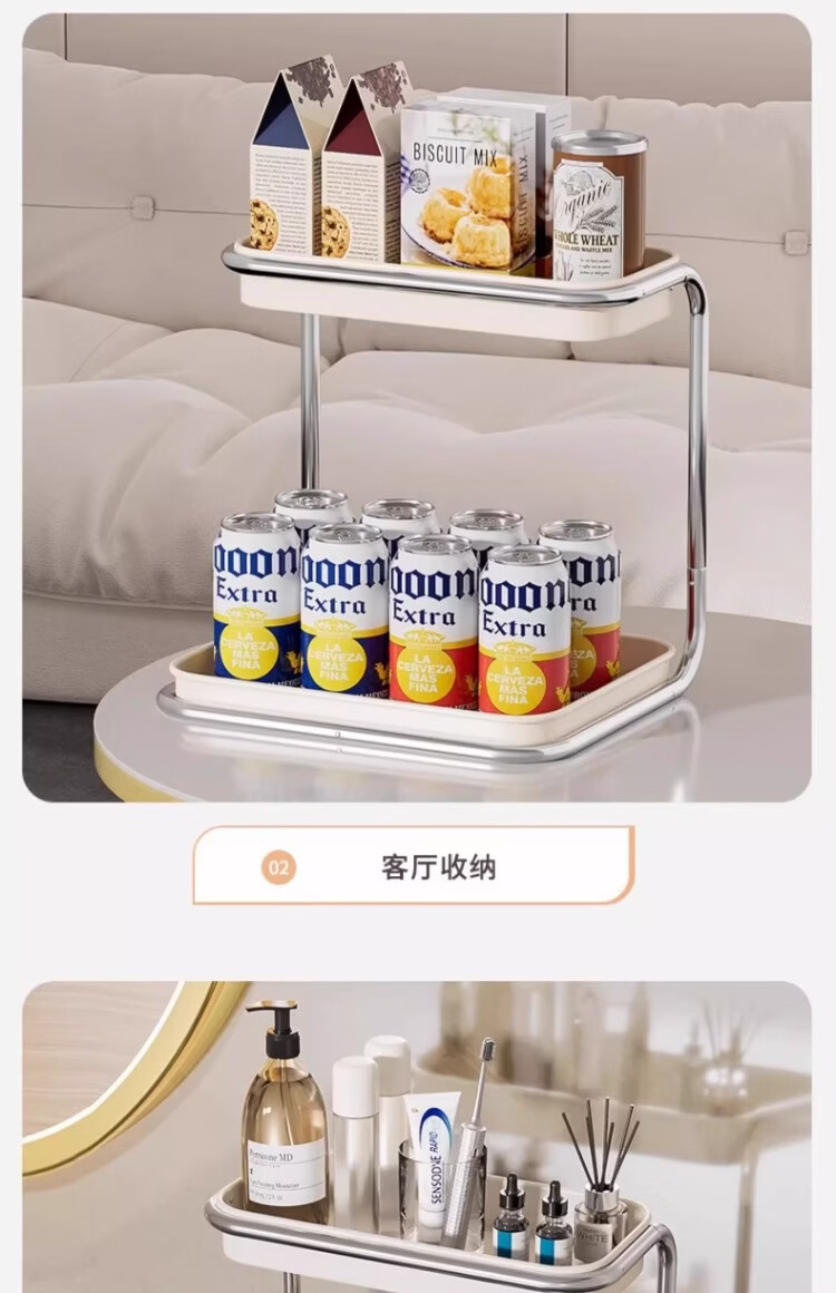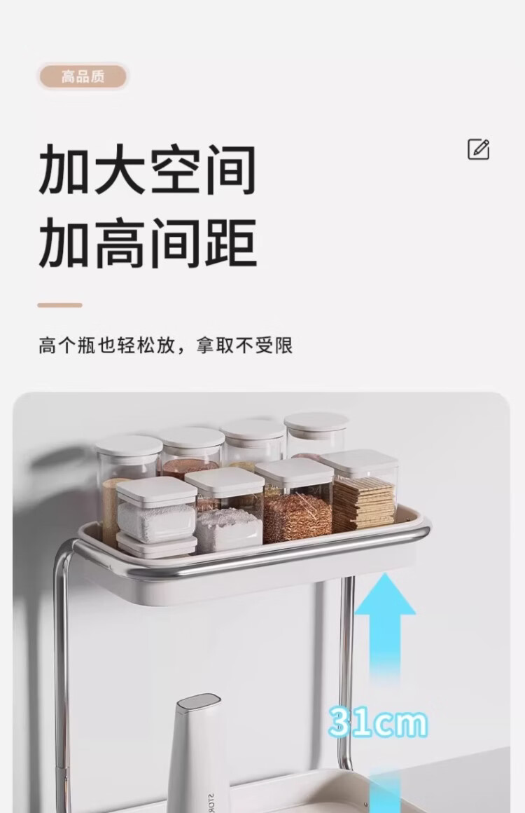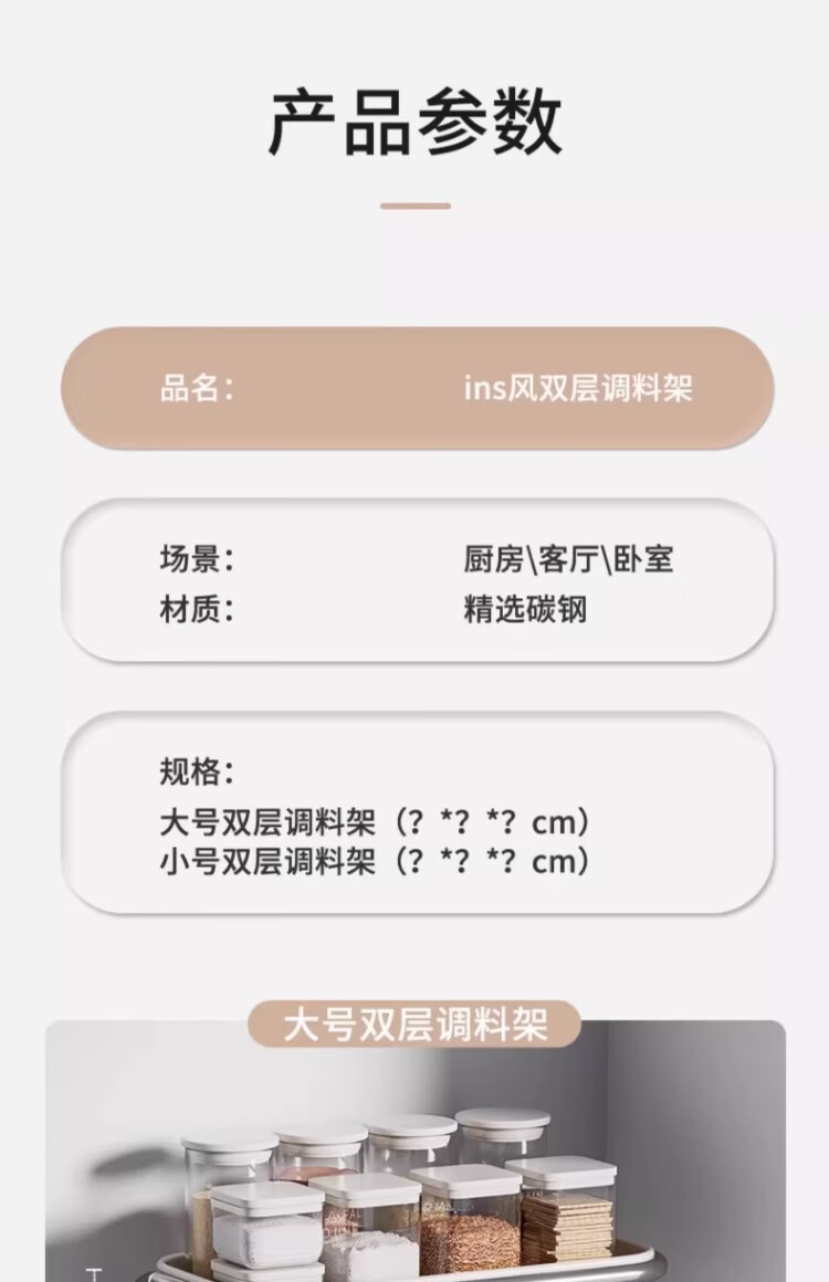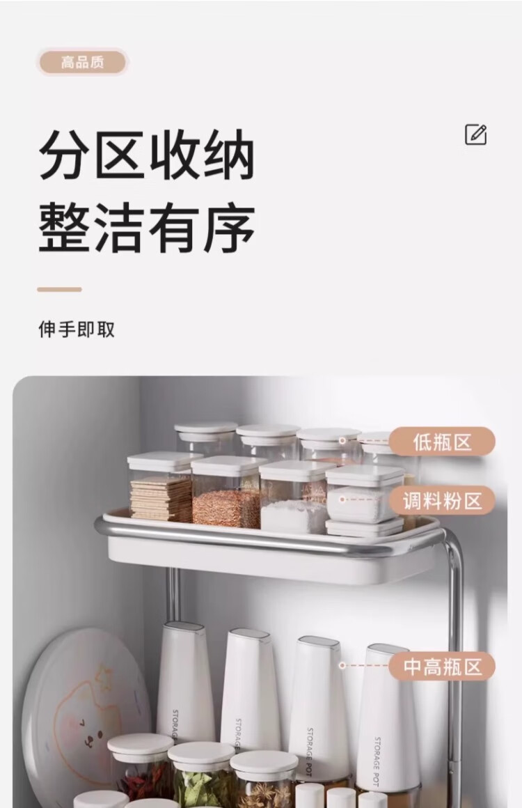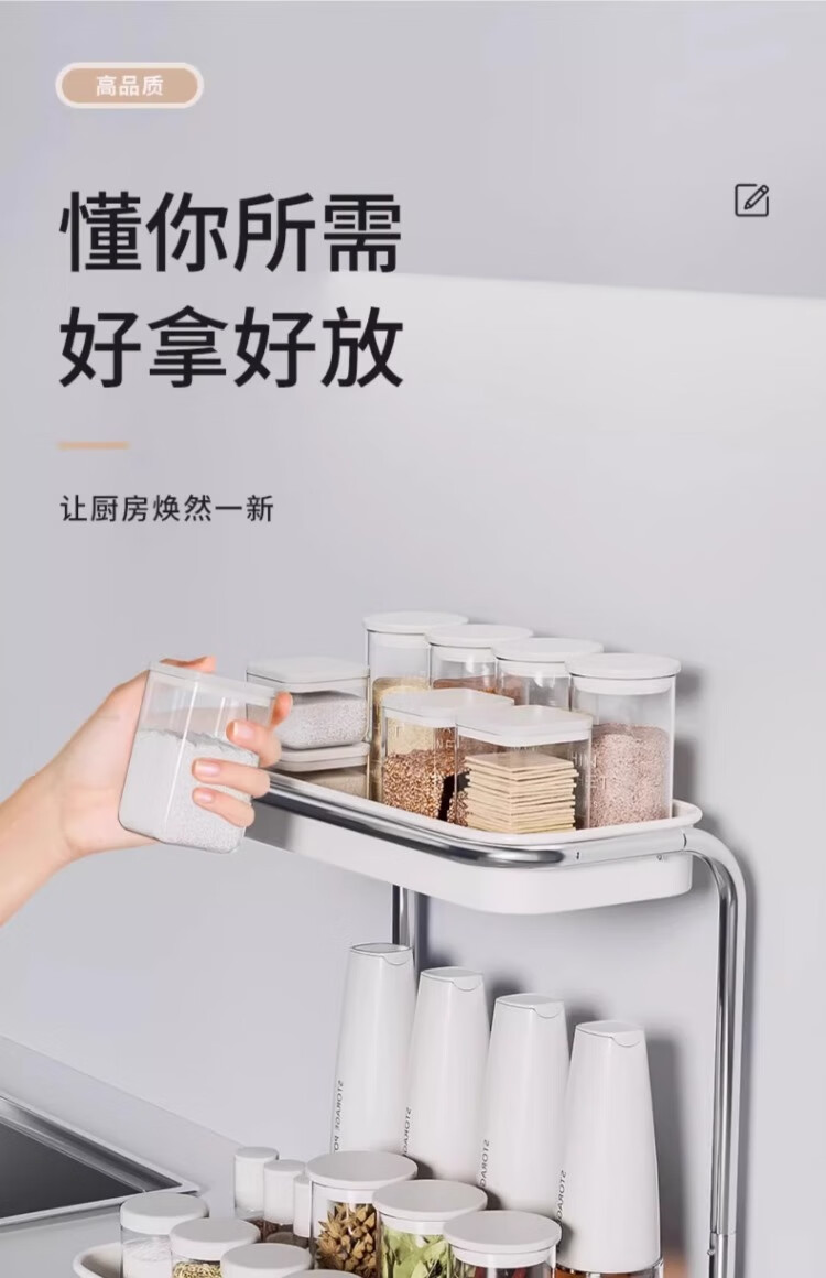 尔思家厨房调料置物架台面免安装双层放调料收纳盒多功能油盐酱醋储物架 奶油白 小号 双层钣金调料架