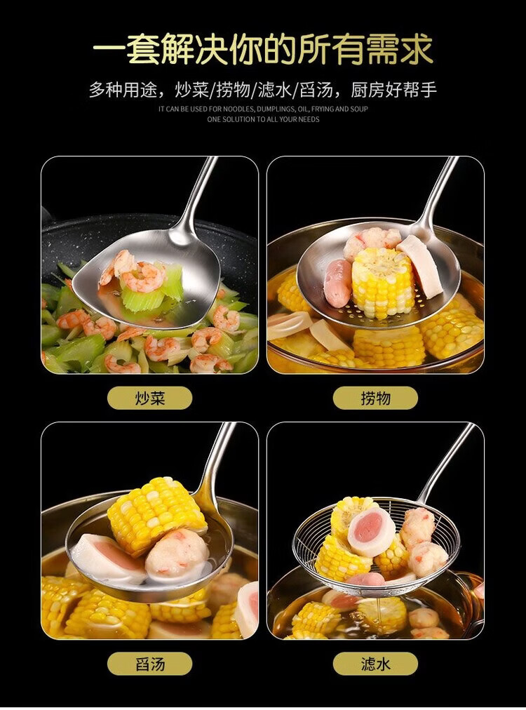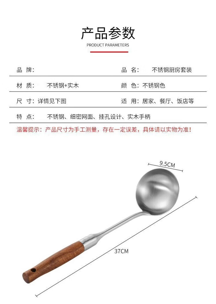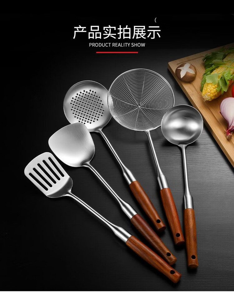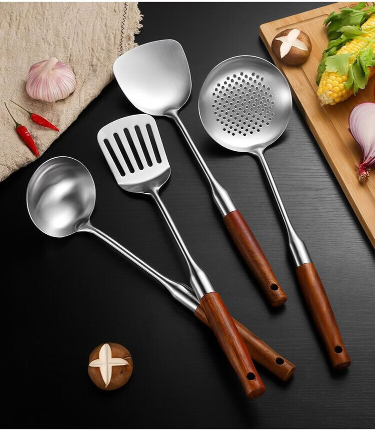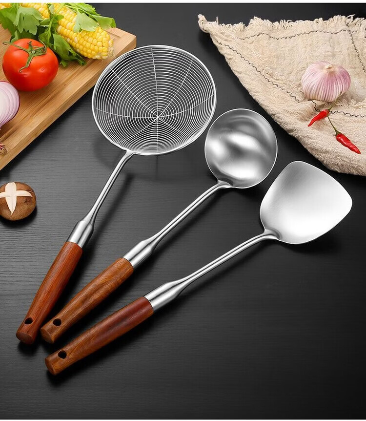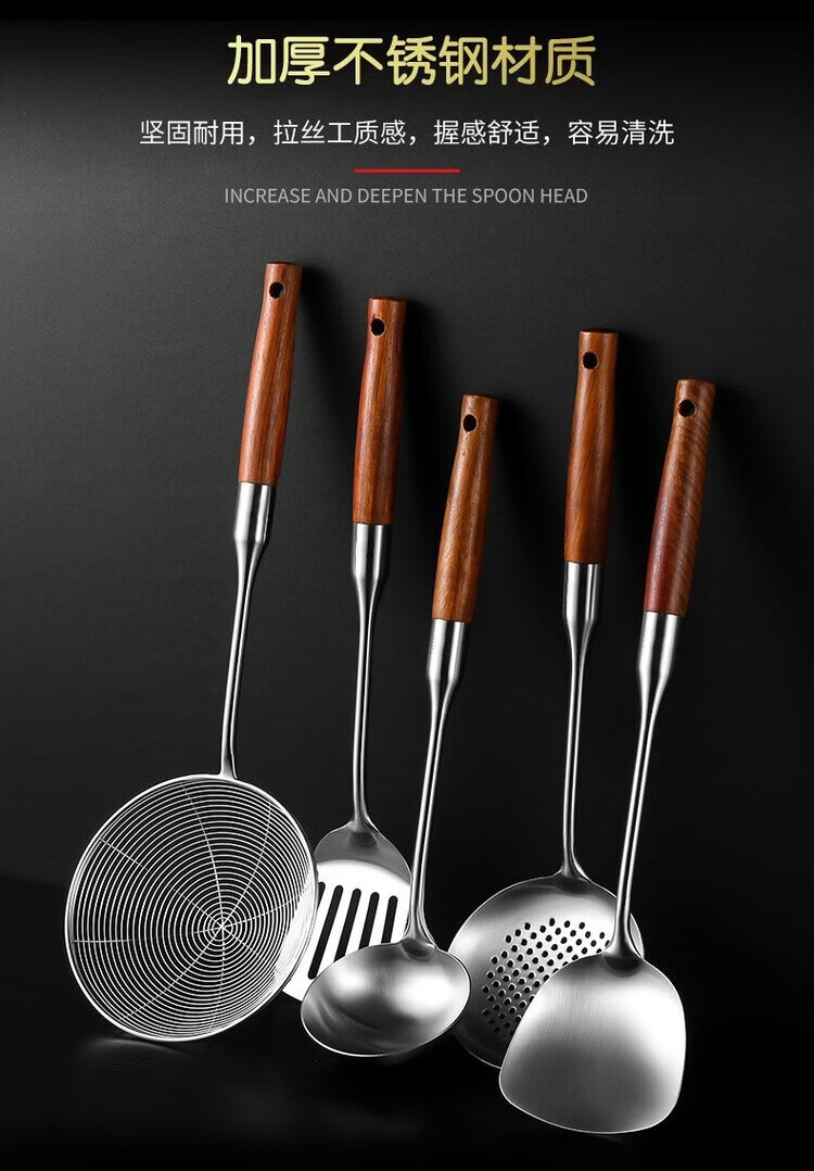 咏夏加厚不锈钢锅铲实木手柄家用厨具炒菜铲子汤勺炒勺组合套装 【锅铲】