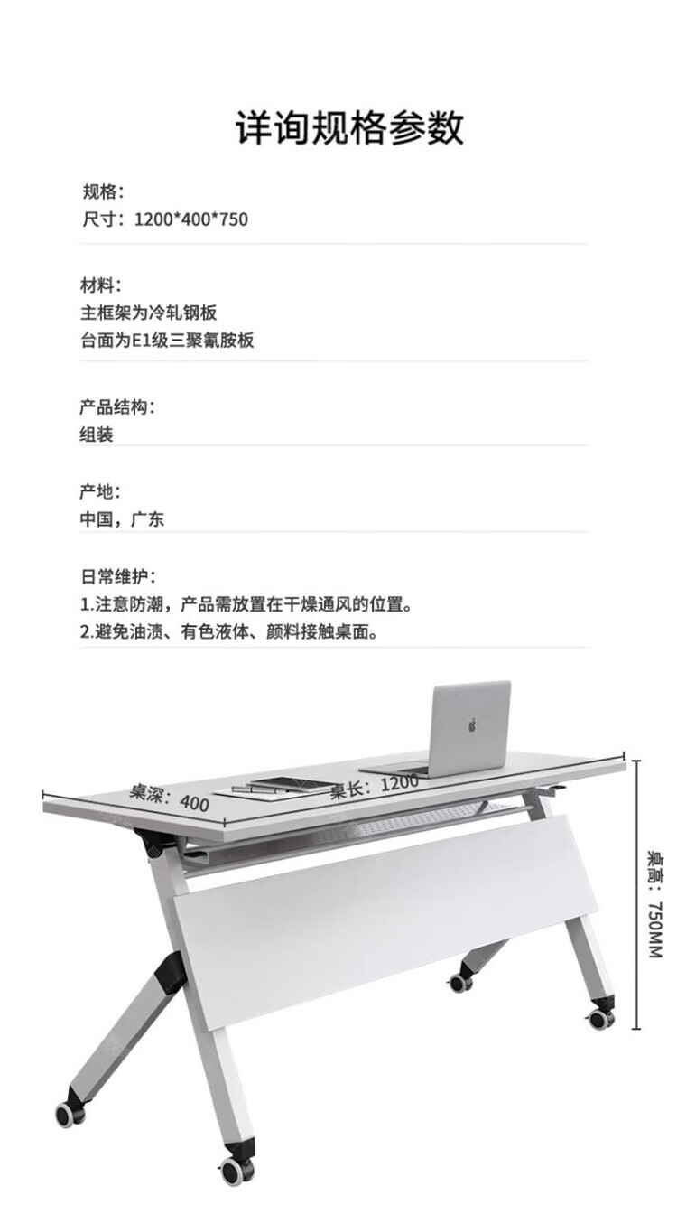 欣慕雅培训桌椅组合移动办公桌长条拼接培训课桌折叠会议桌 120*40【厂家直销】加厚款