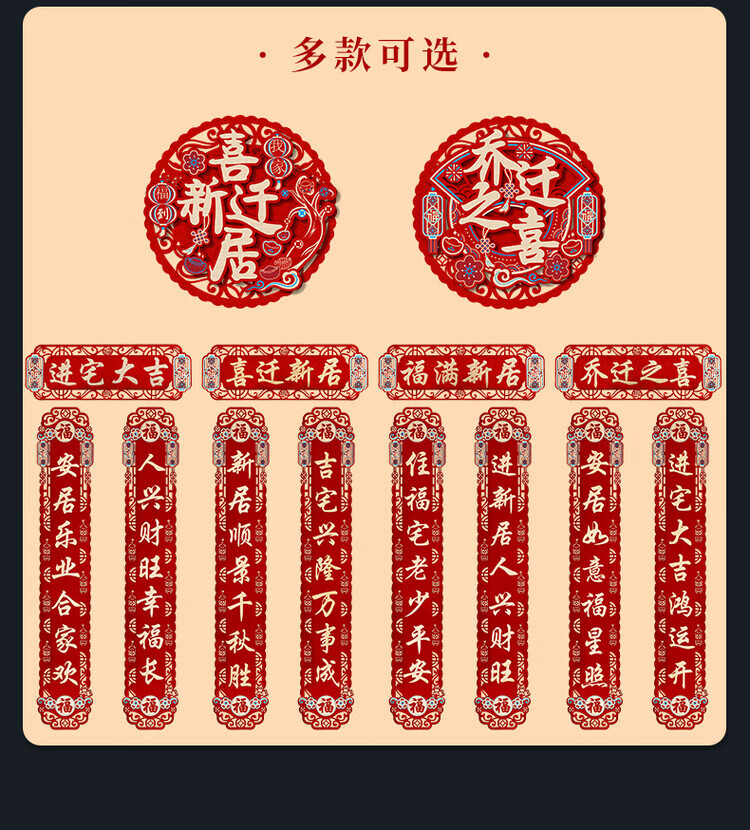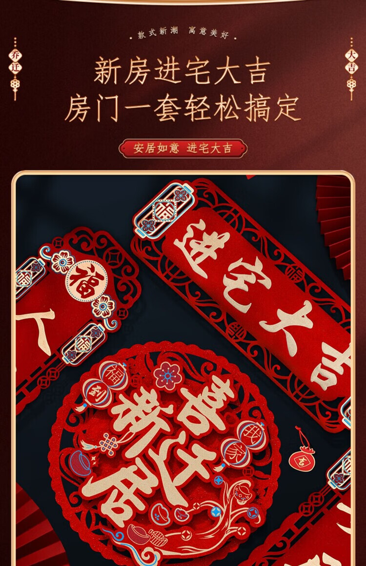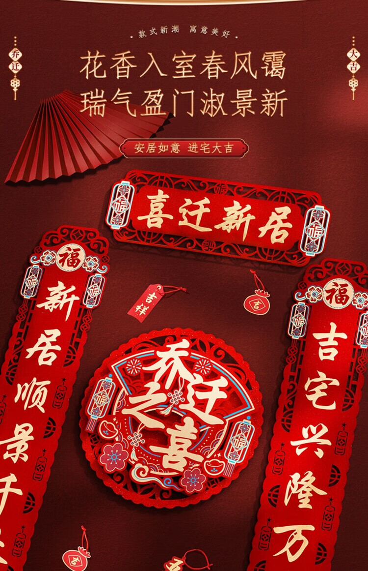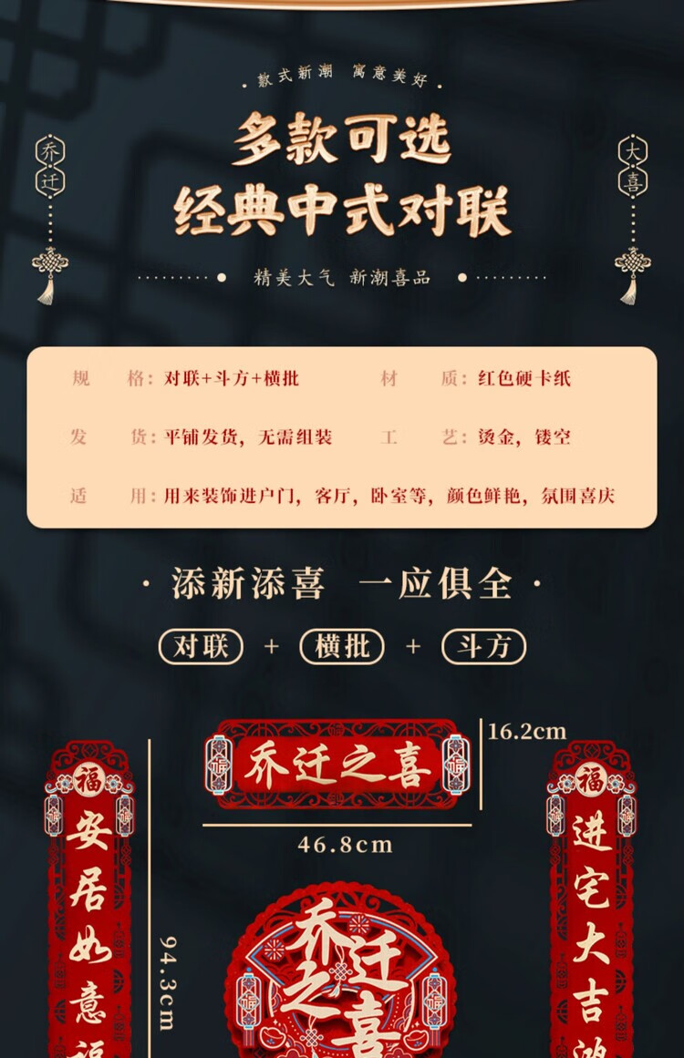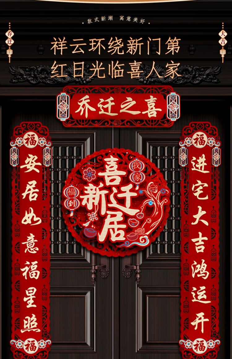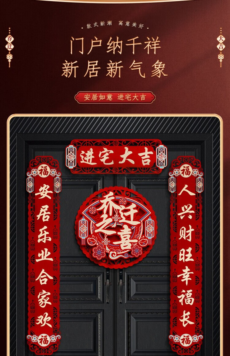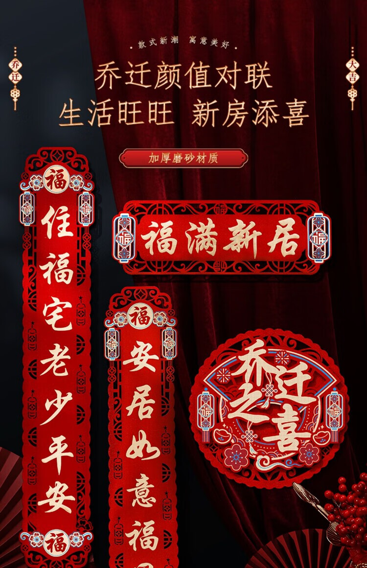 OYKTN乔迁之喜对联2026新款磁吸搬家入宅仪式入户门贴新居布置装饰用品 福满新居-对联-没有乔迁之喜 【常规款】成品发货-送粘胶点