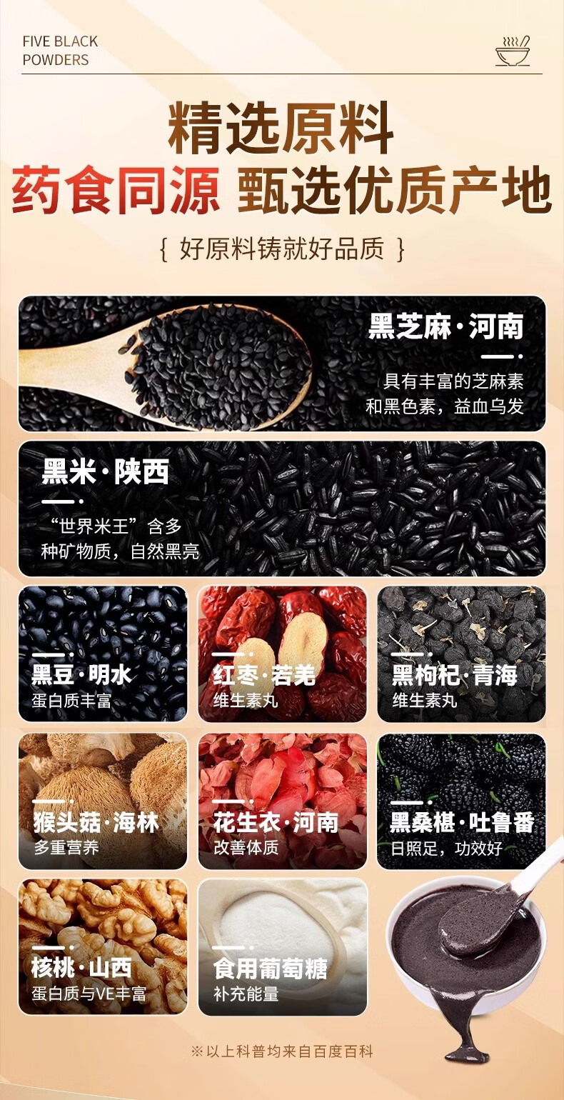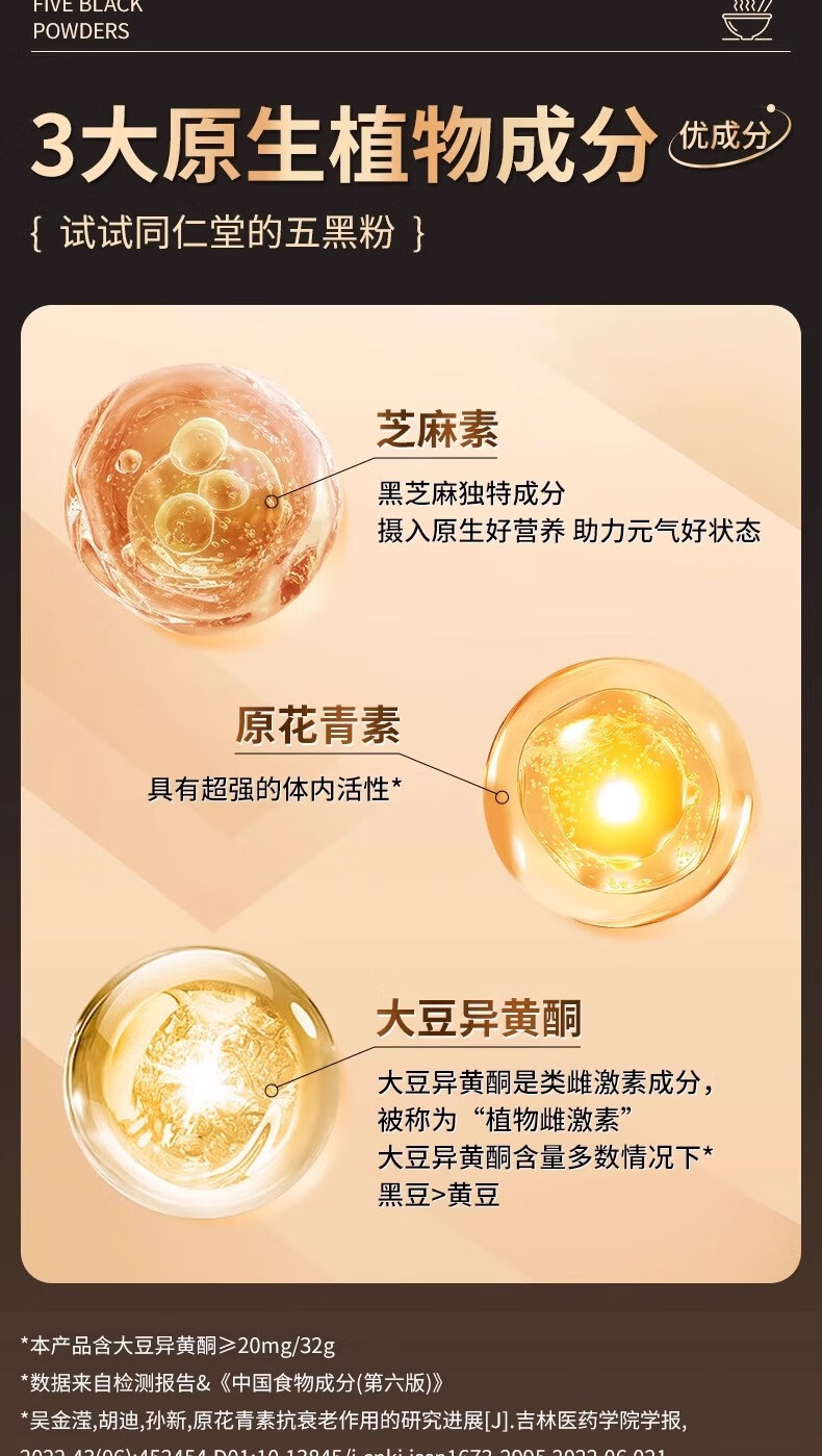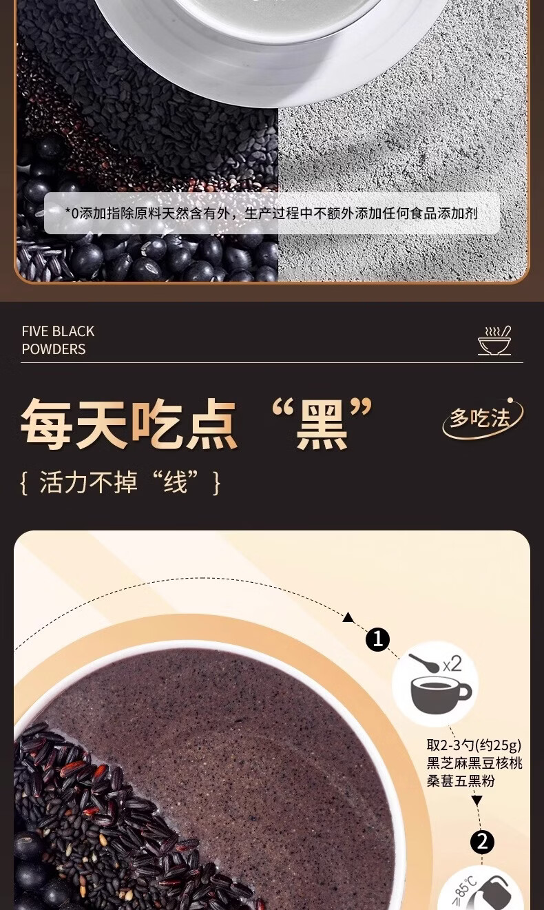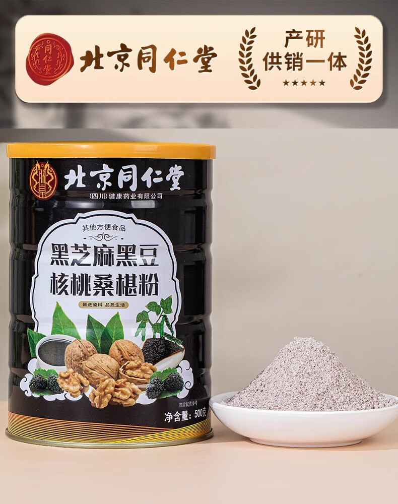朕皇北京同仁堂黑芝麻黑豆核桃桑椹粉以黑养黑即食冲饮营养代早餐粉 【1盒装】体验装 500g/桶