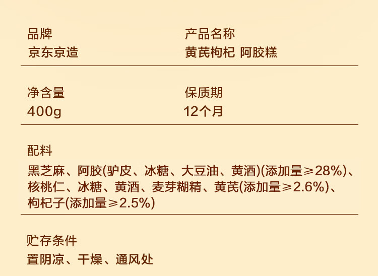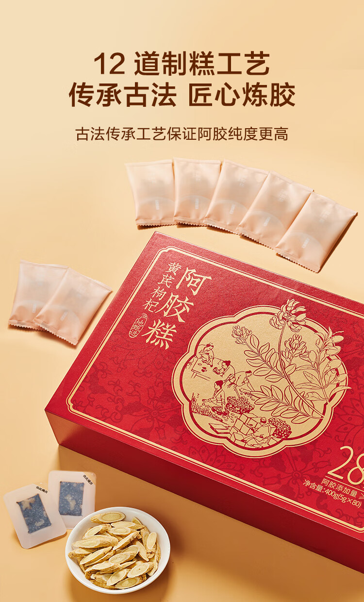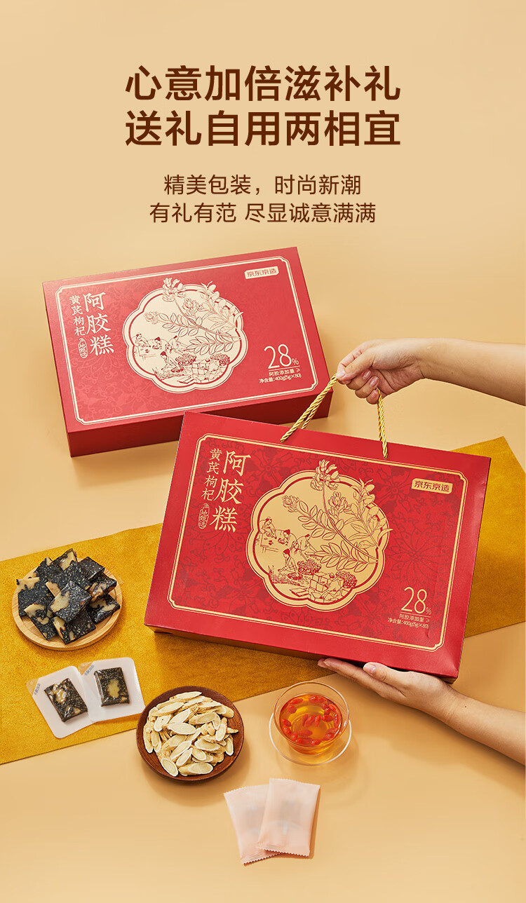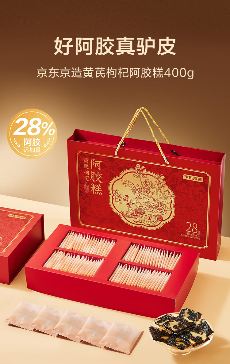 京东京造28%黄芪阿胶糕礼盒400g【母亲节礼物】补品滋补品送妈妈送长辈