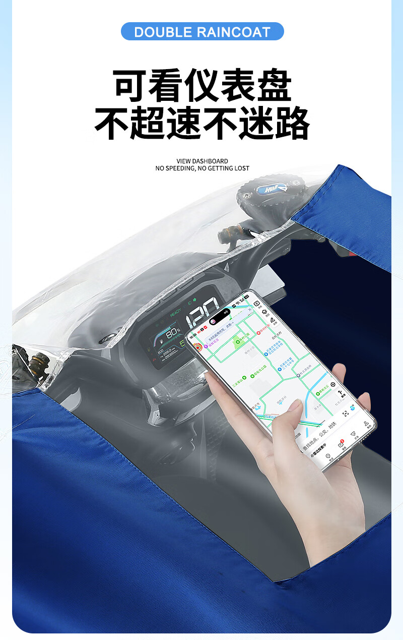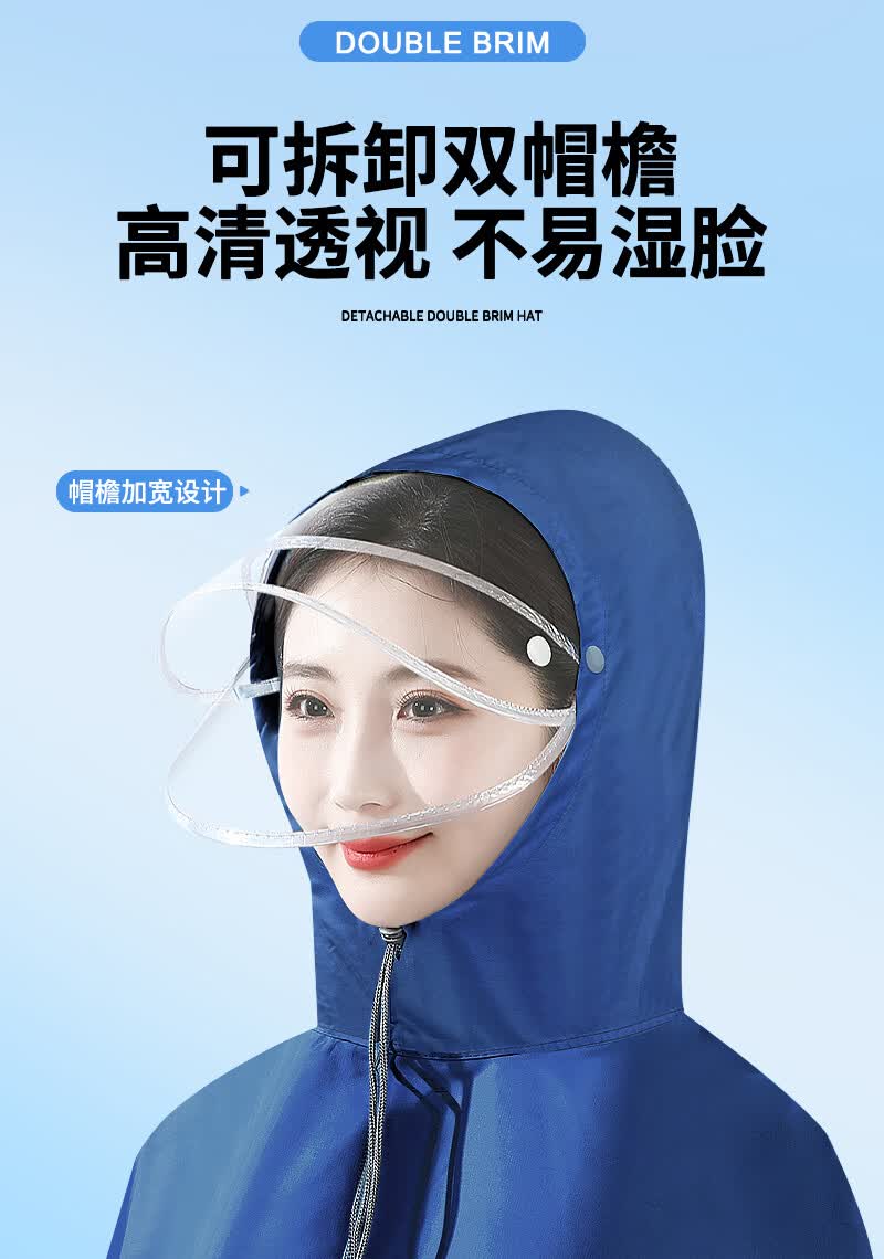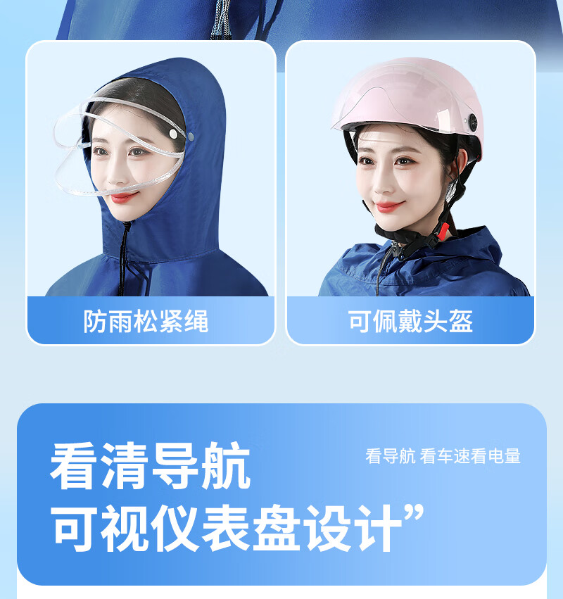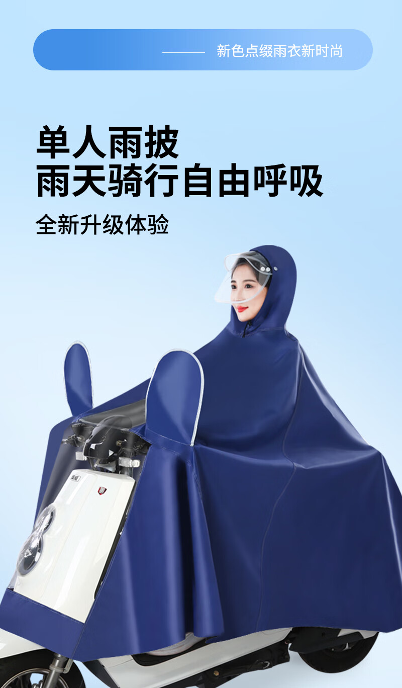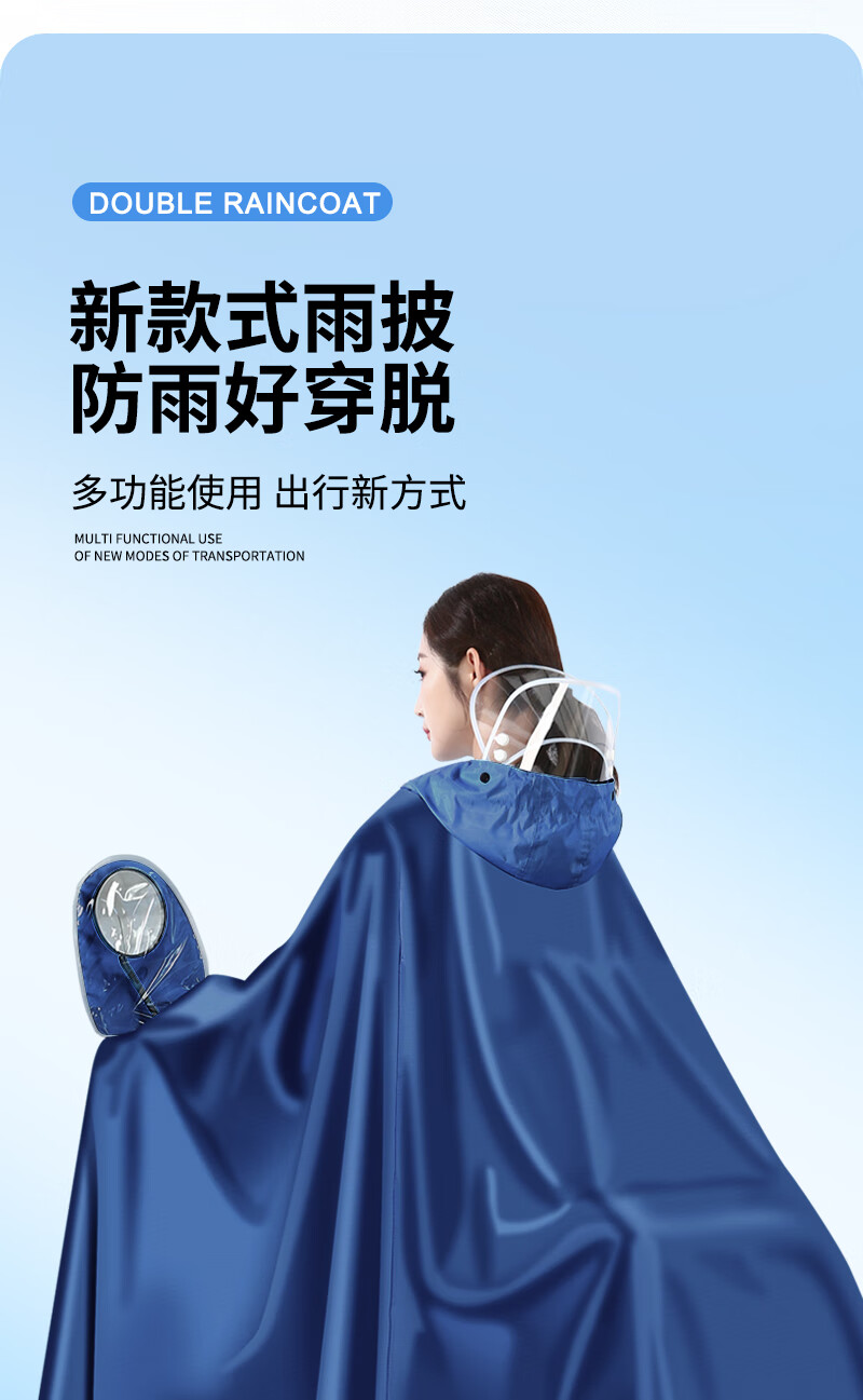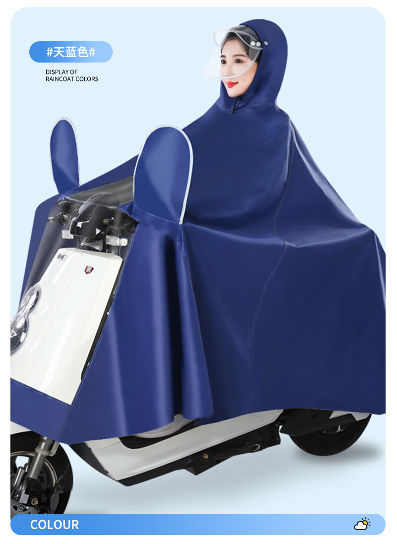 雨航(YUHANG)电动车雨衣电动车专用电瓶车雨披带镜套天蓝色4XL