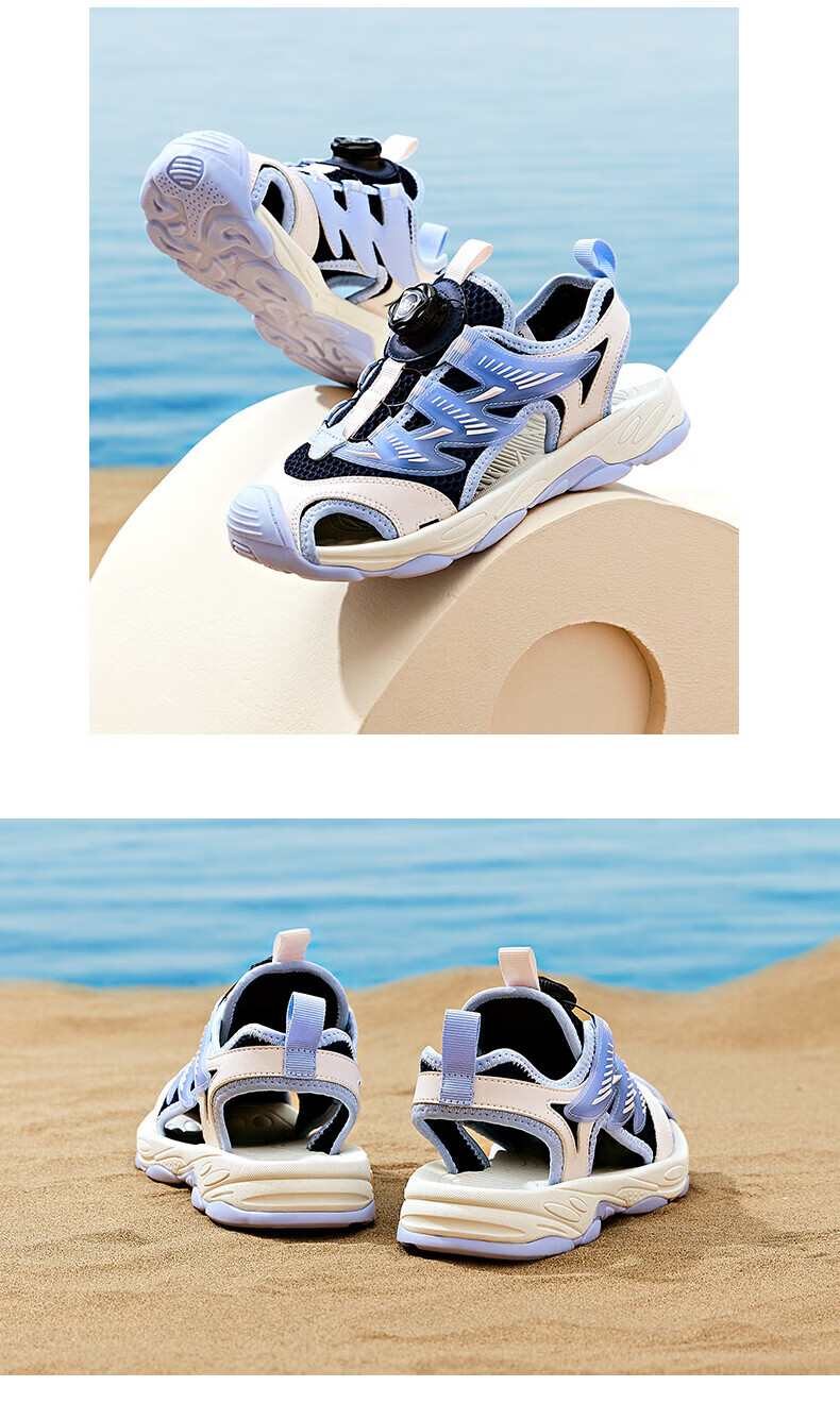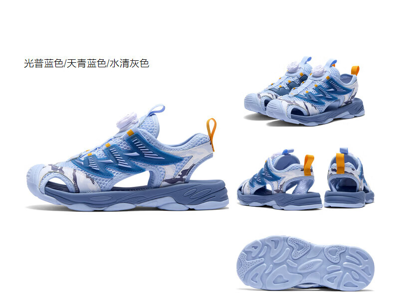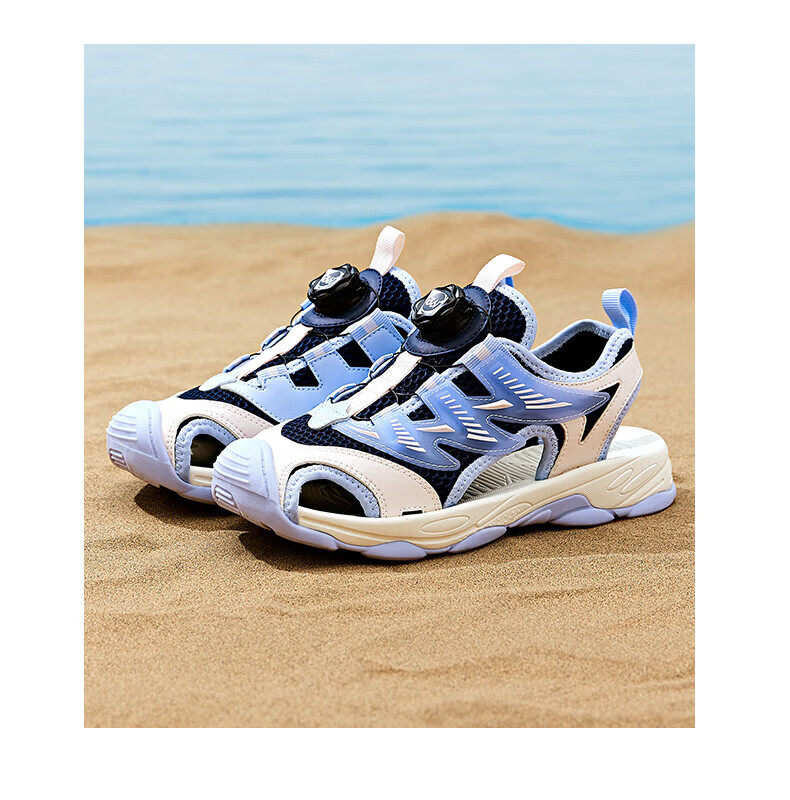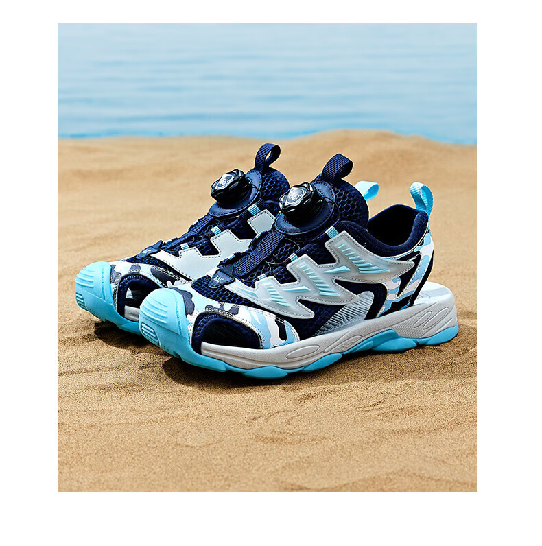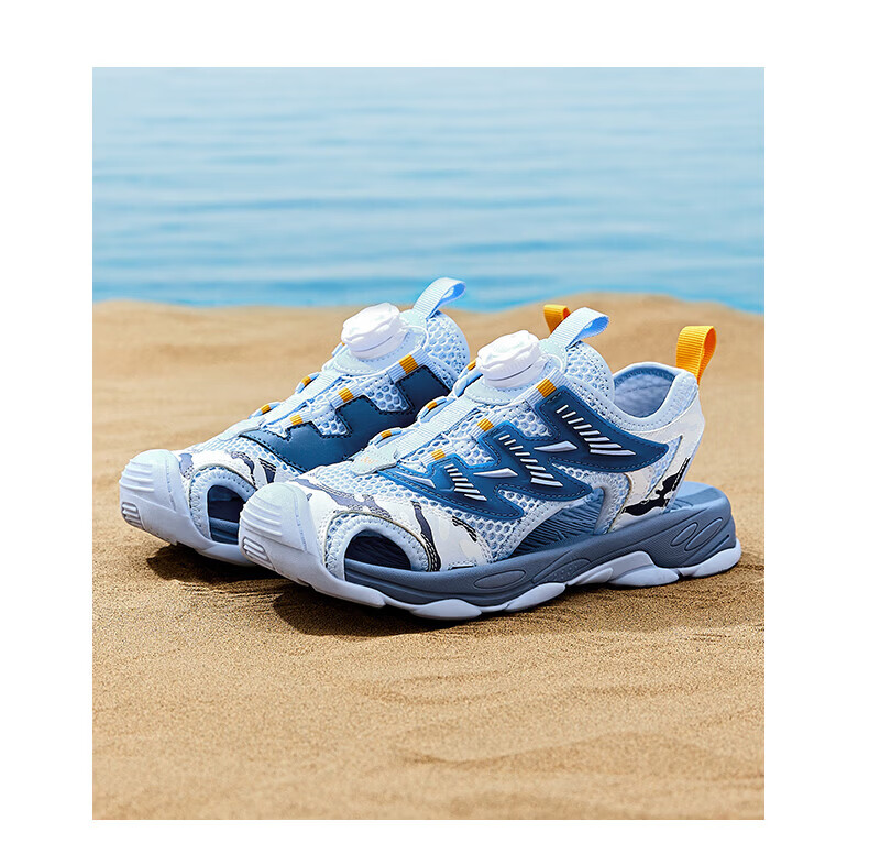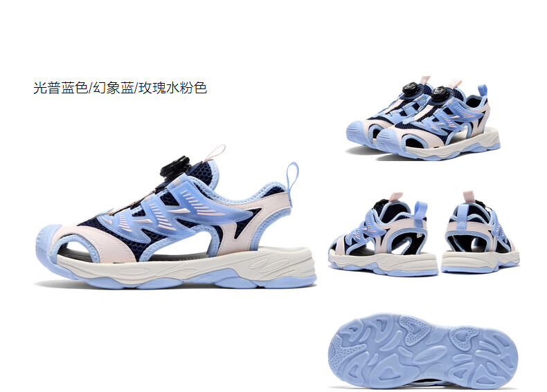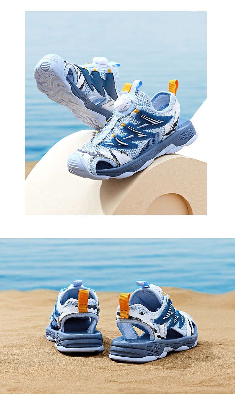 361°童鞋男童包头凉鞋儿童旋钮扣夏季中大童鞋溯溪鞋运动鞋男童鞋 幻象蓝/永恒蓝色/361度白 34