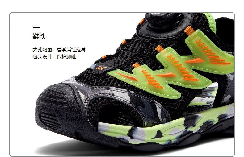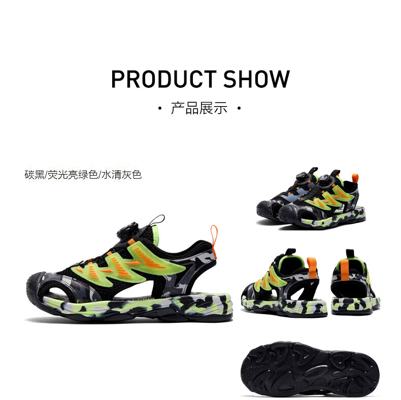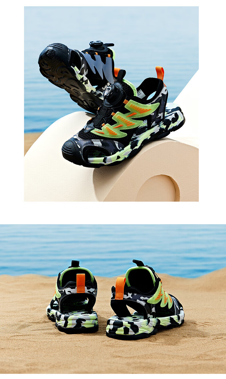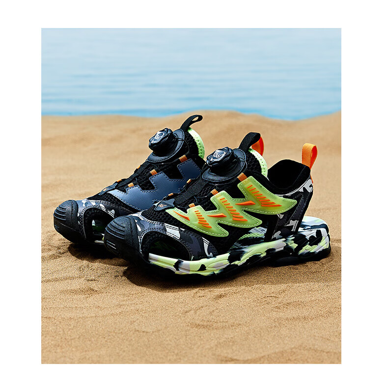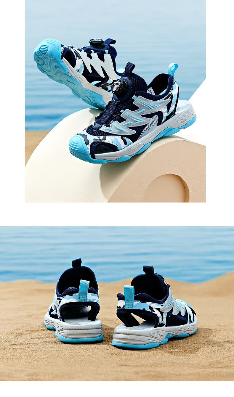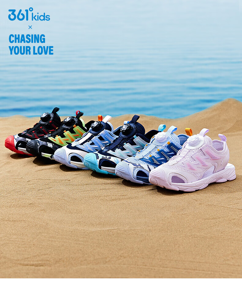 361°童鞋男童包头凉鞋儿童旋钮扣夏季中大童鞋溯溪鞋运动鞋男童鞋 幻象蓝/永恒蓝色/361度白 34