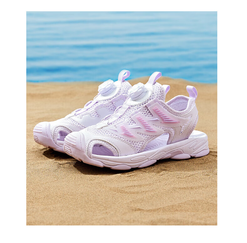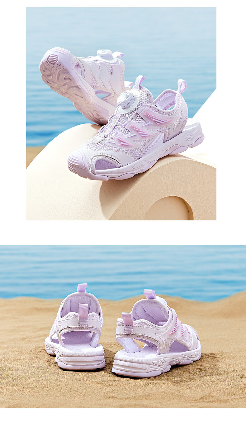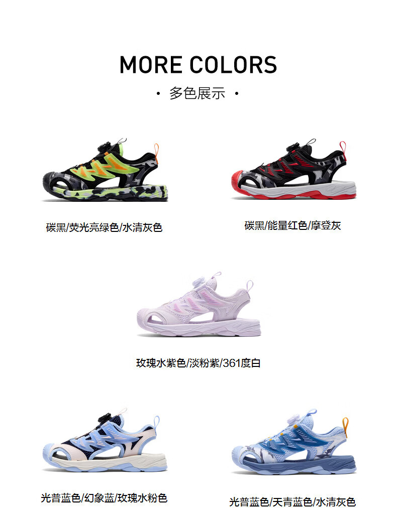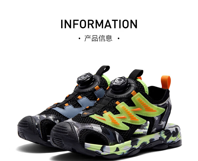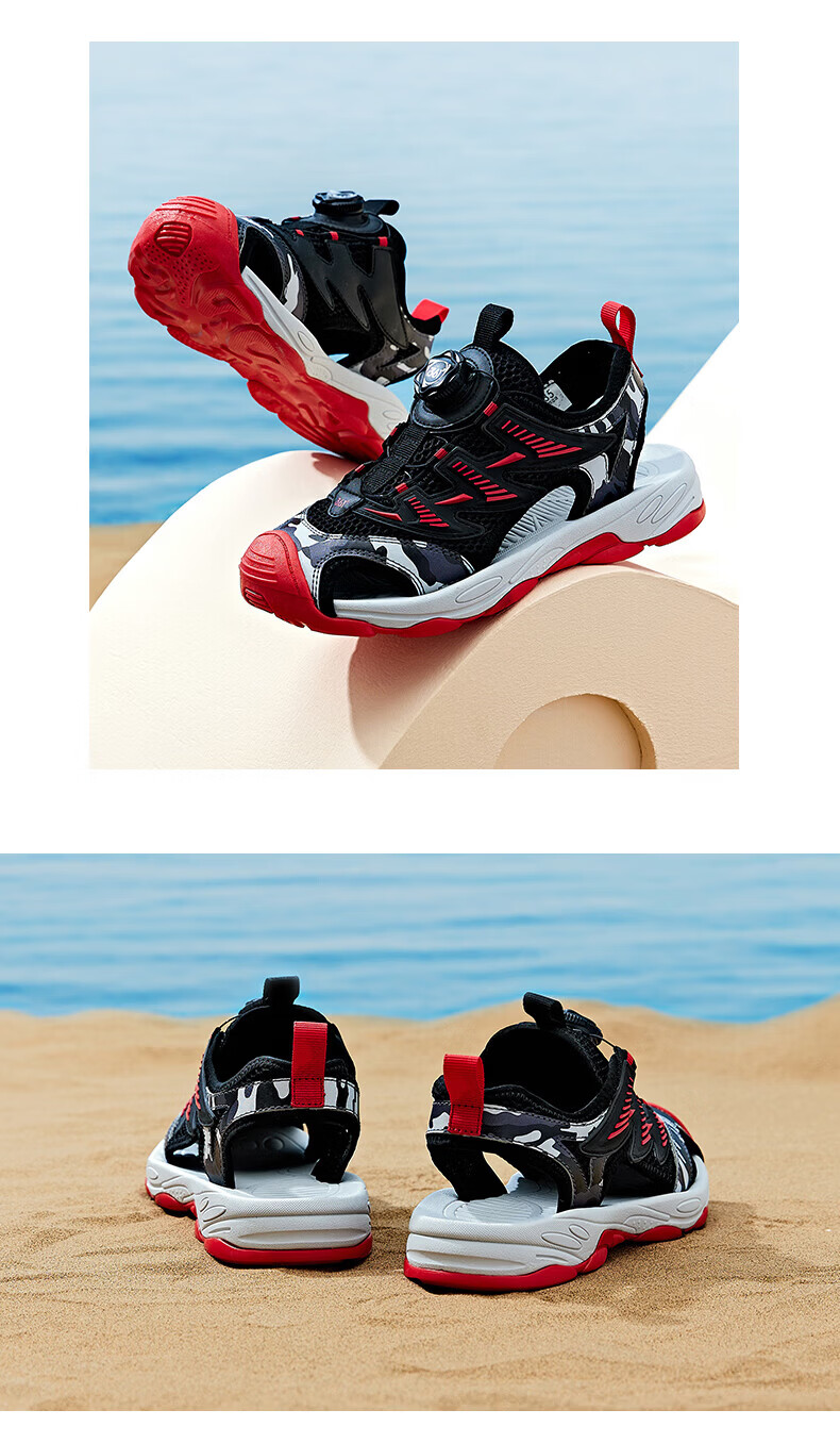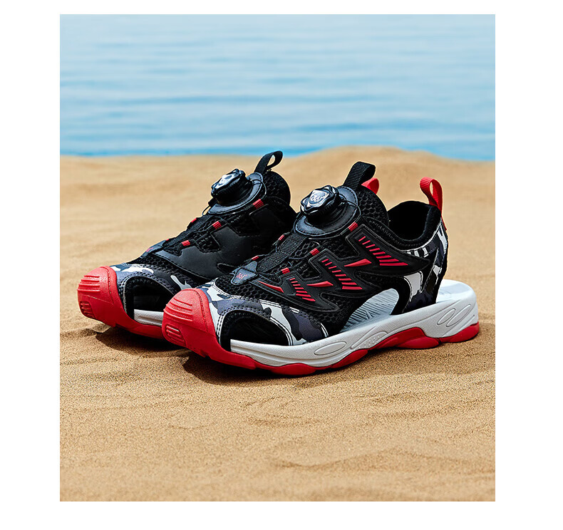 361°童鞋男童包头凉鞋儿童旋钮扣夏季中大童鞋溯溪鞋运动鞋男童鞋 幻象蓝/永恒蓝色/361度白 34