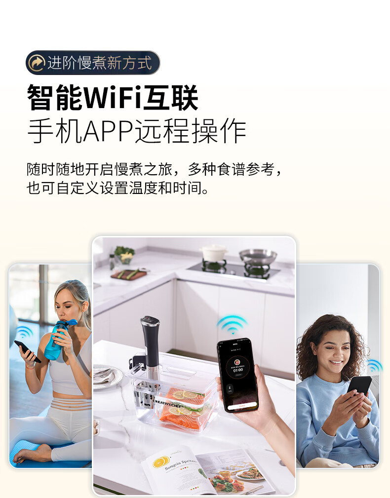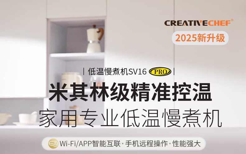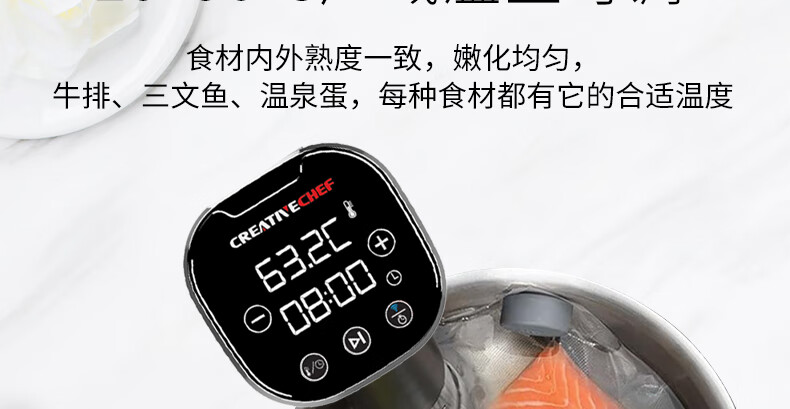 Creativechef【西班牙】低温慢煮机家用真空恒温料理机分子料理机舒肥机牛排鸡排三文鱼温泉蛋烹饪低温慢煮棒 【京仓发货SV16Pro智能APP】下单送6L水箱