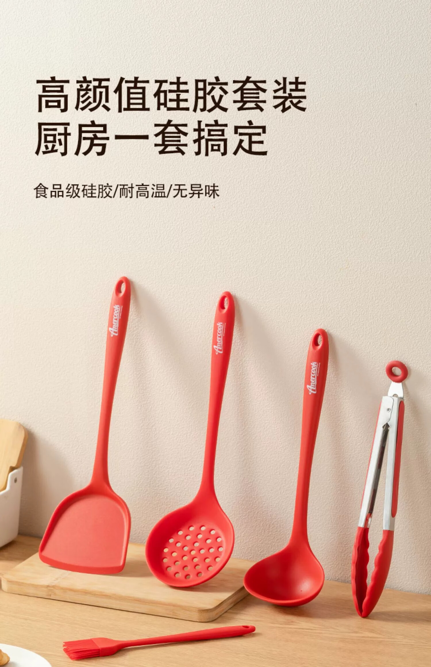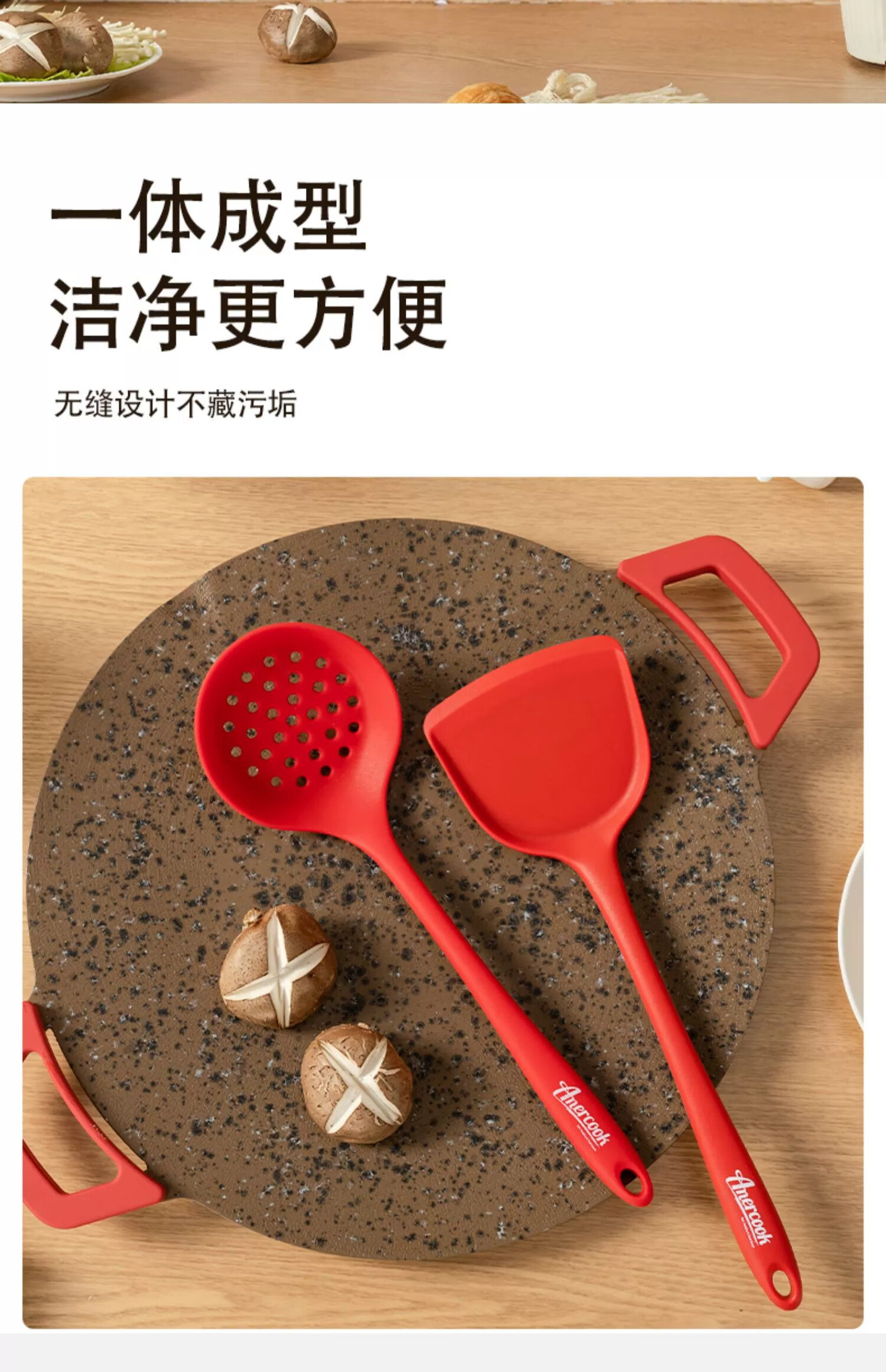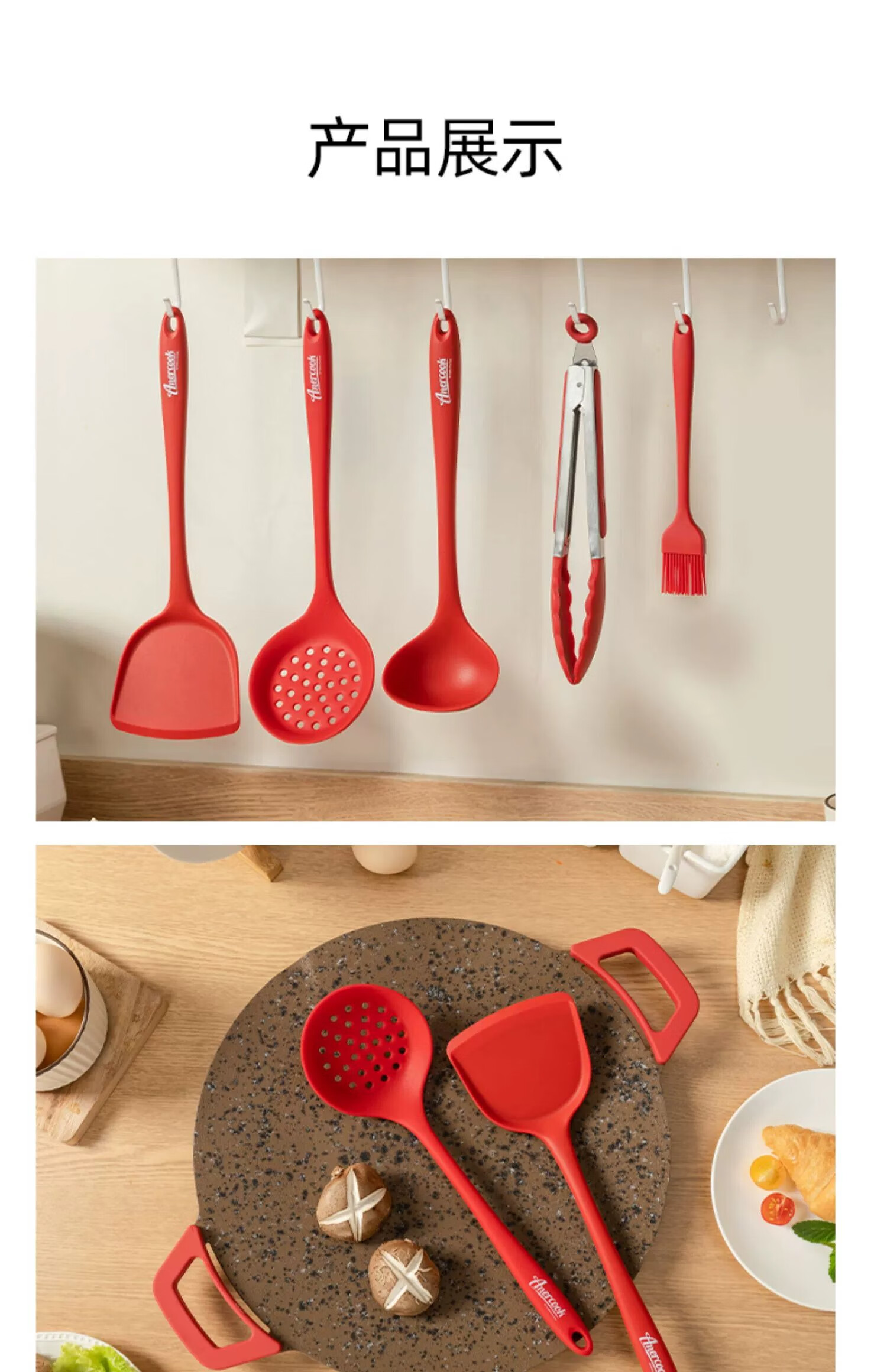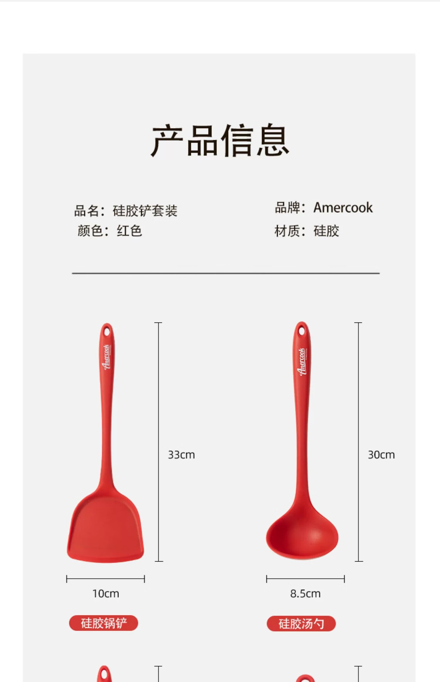 Amercook 硅胶锅铲煎锅不粘锅炒菜铲硅胶汤勺耐高温家用铲勺防烫不粘铲子 红色硅胶汤勺
