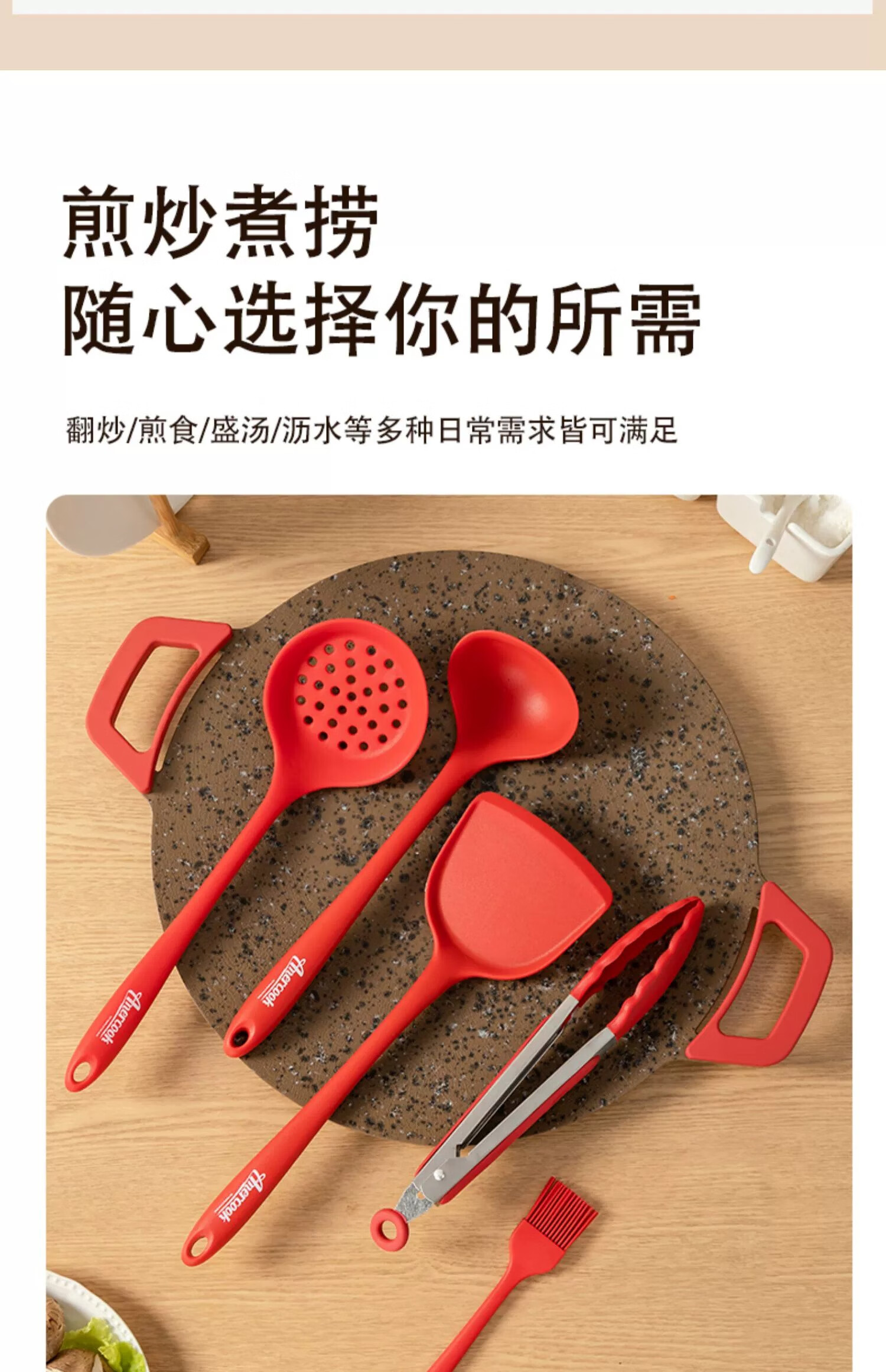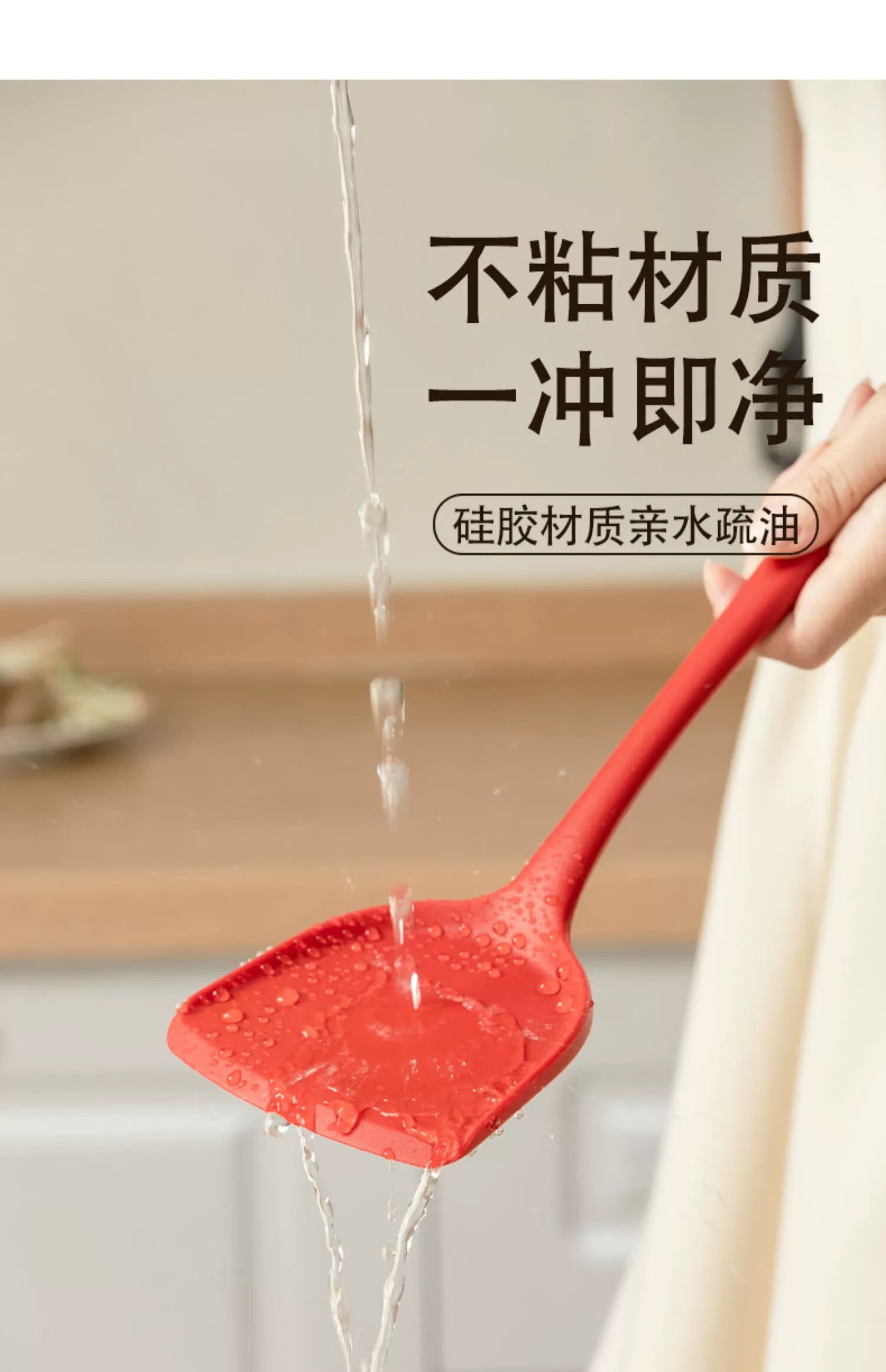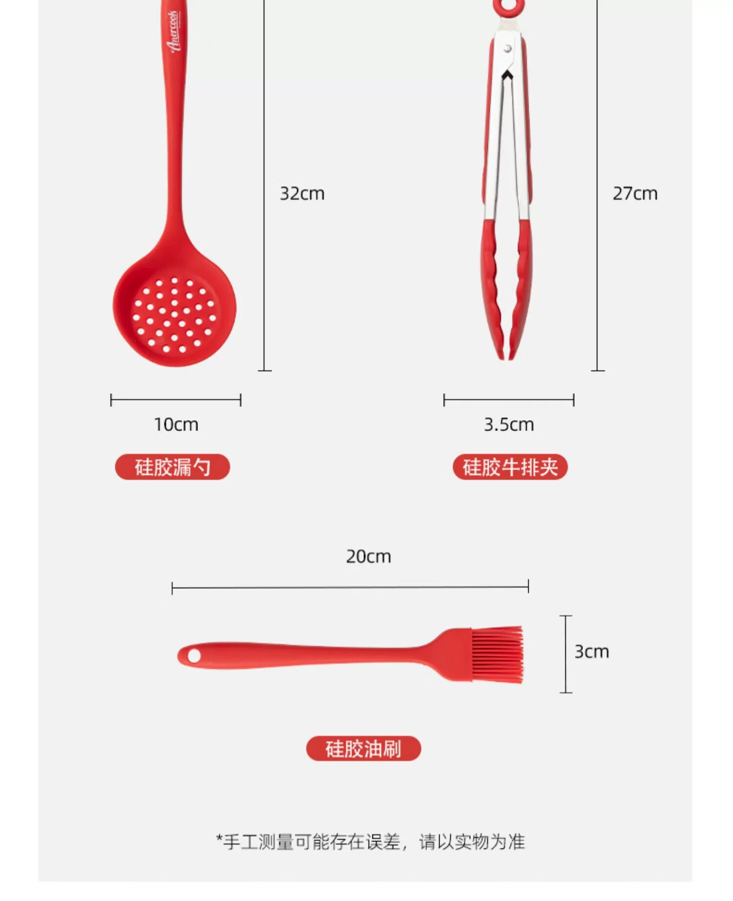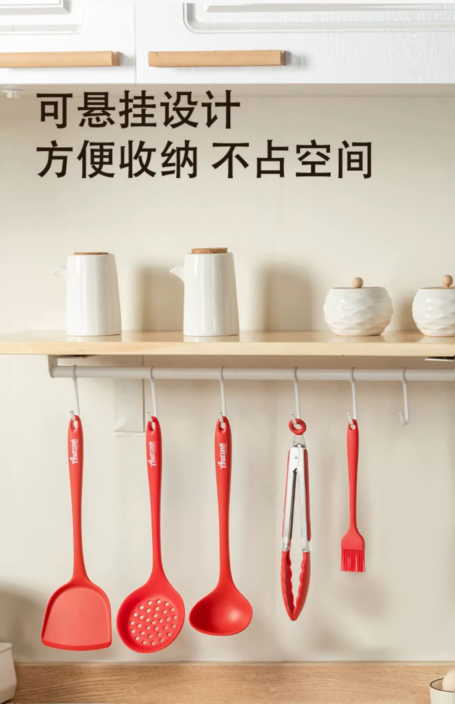 Amercook 硅胶锅铲煎锅不粘锅炒菜铲硅胶汤勺耐高温家用铲勺防烫不粘铲子 红色硅胶汤勺