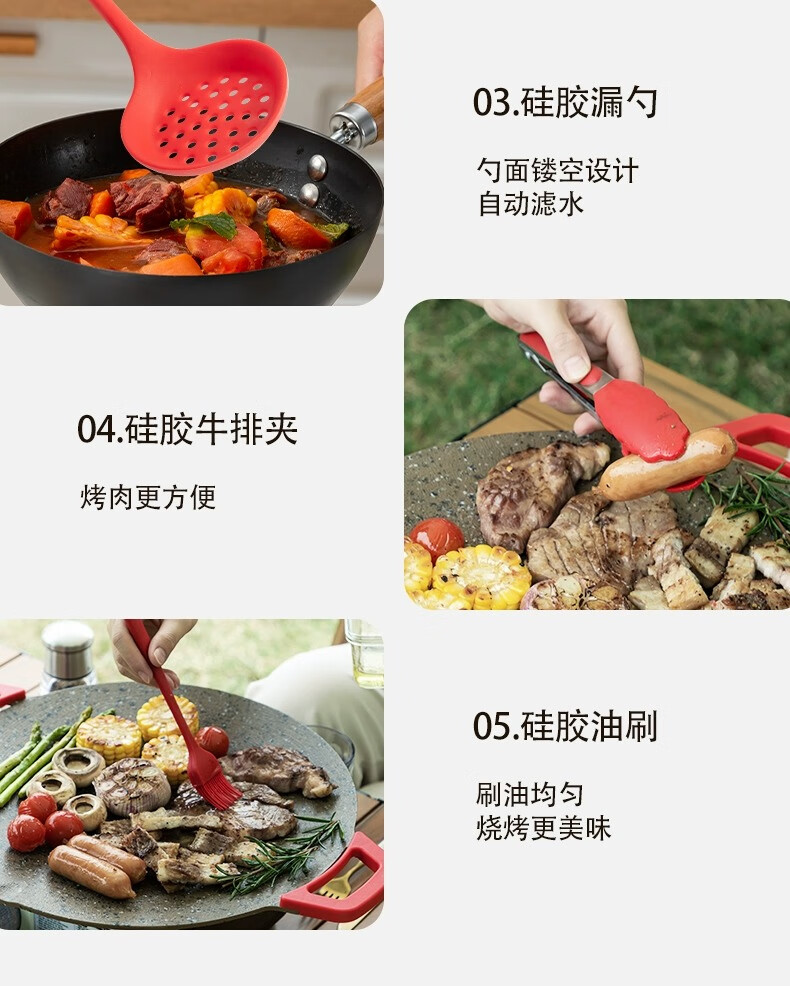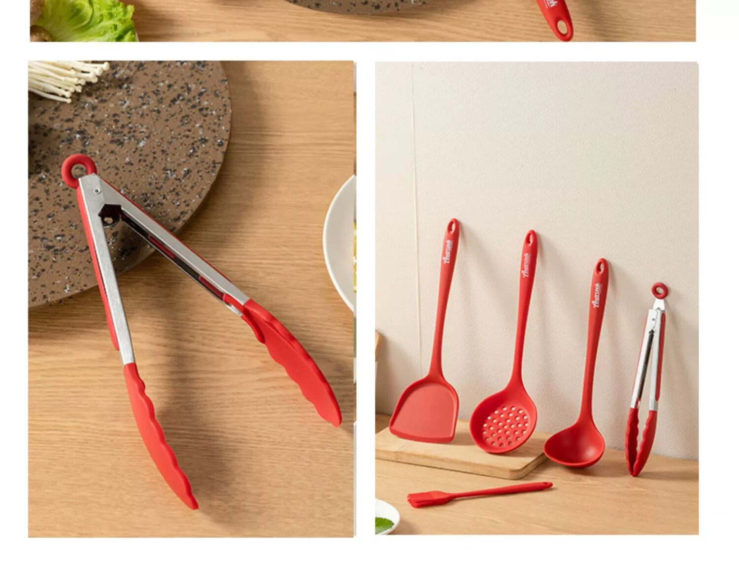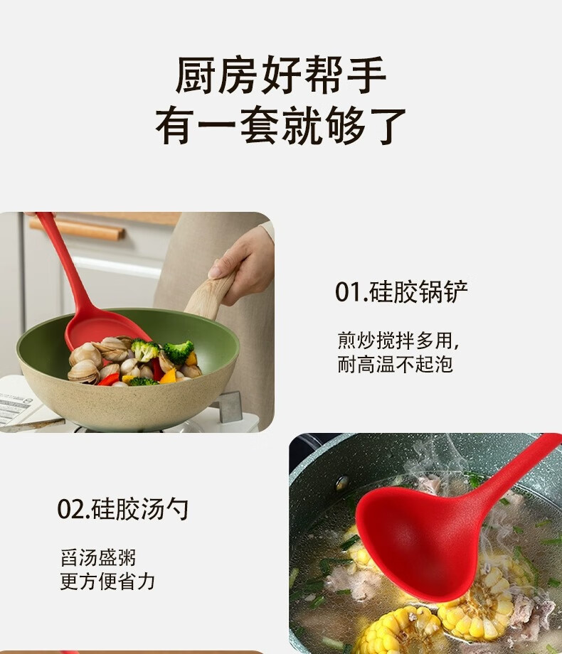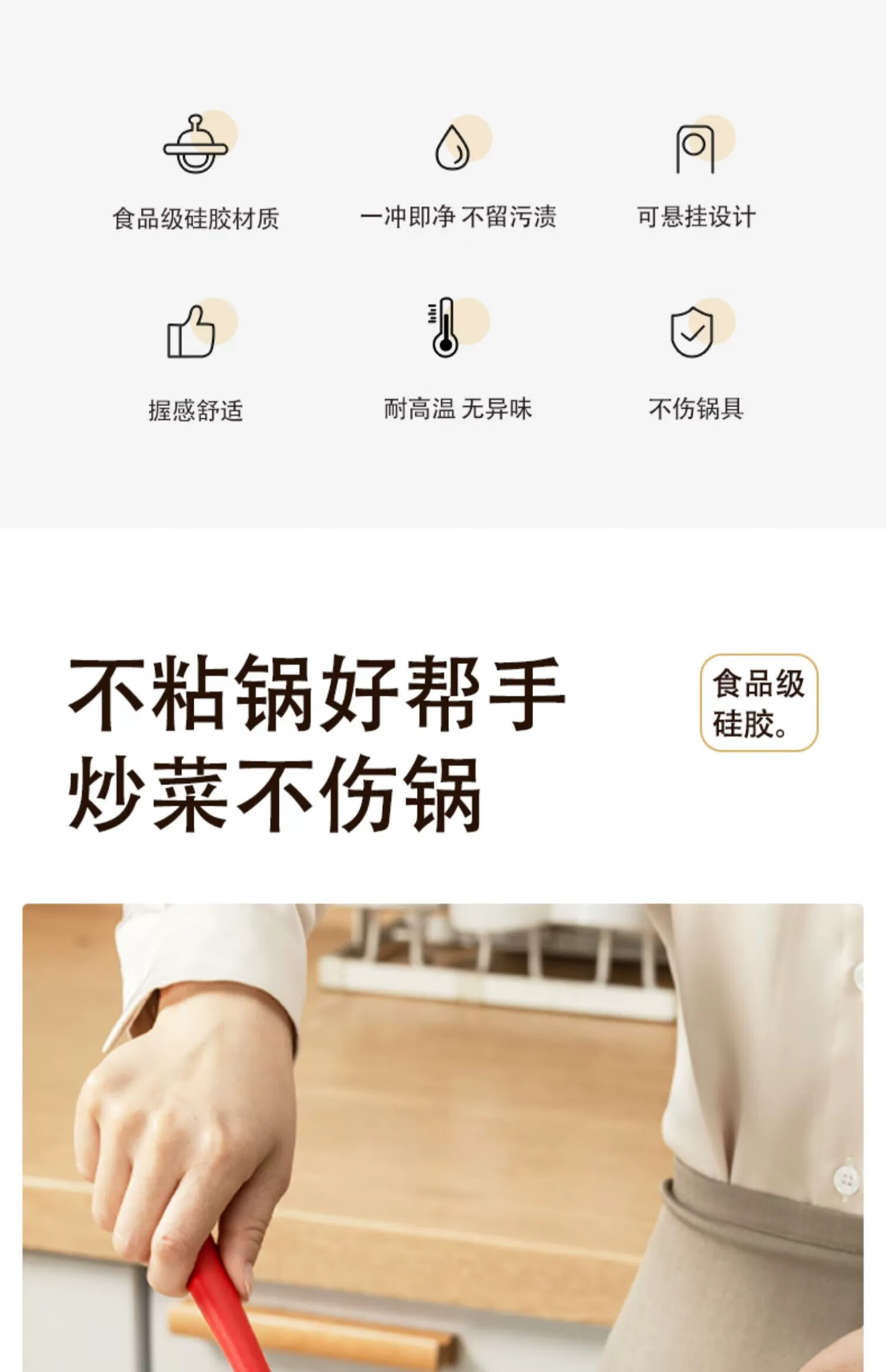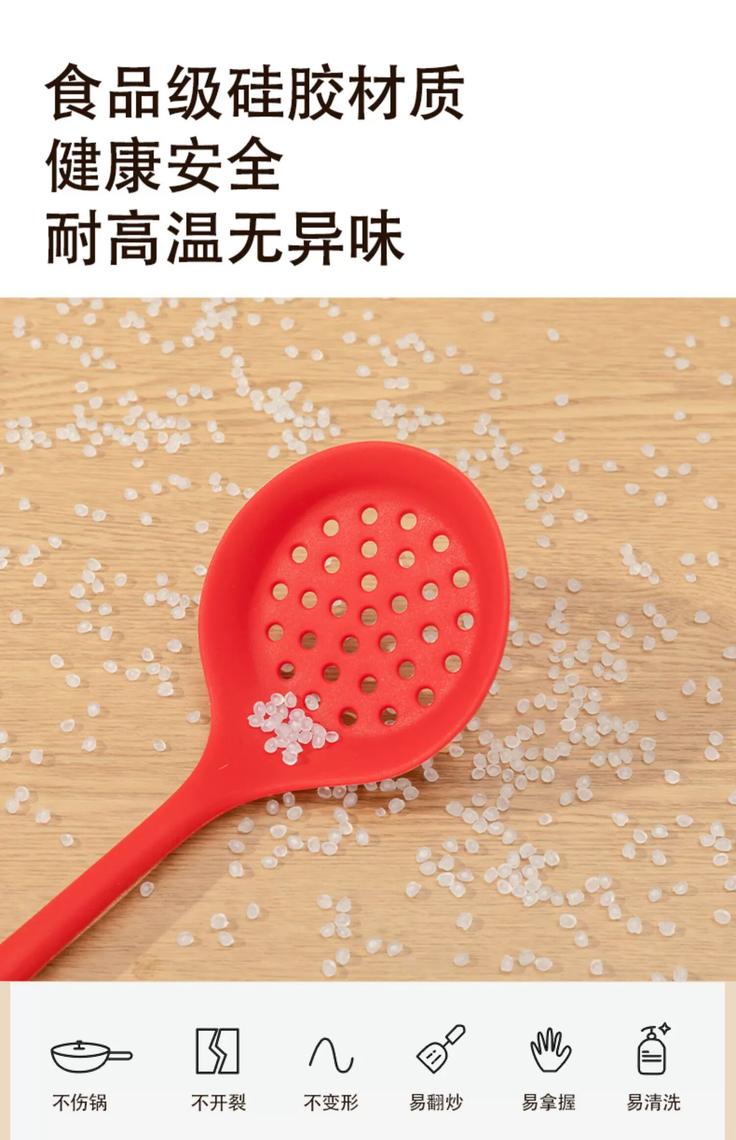 Amercook 硅胶锅铲煎锅不粘锅炒菜铲硅胶汤勺耐高温家用铲勺防烫不粘铲子 红色硅胶汤勺