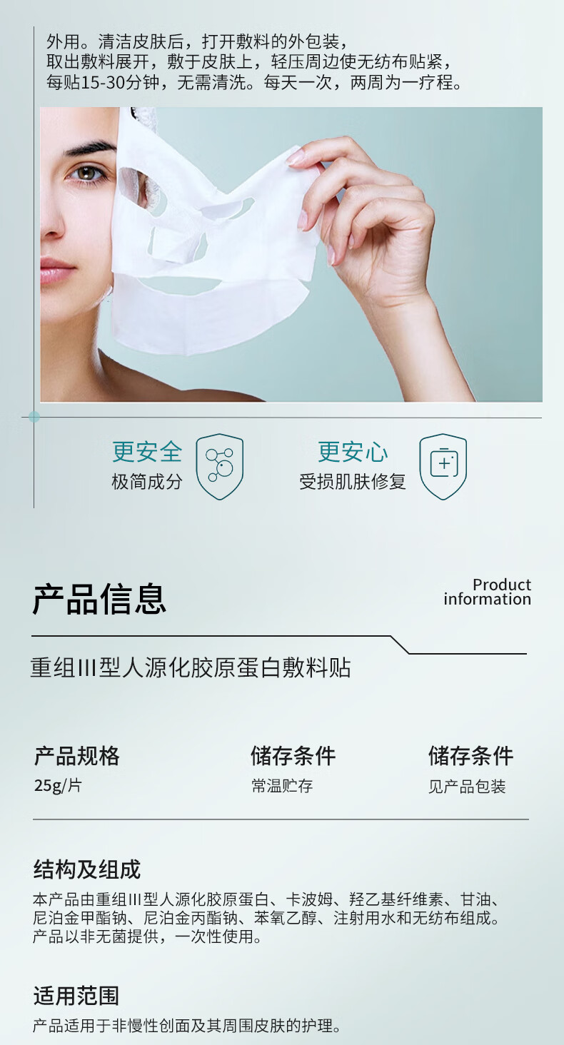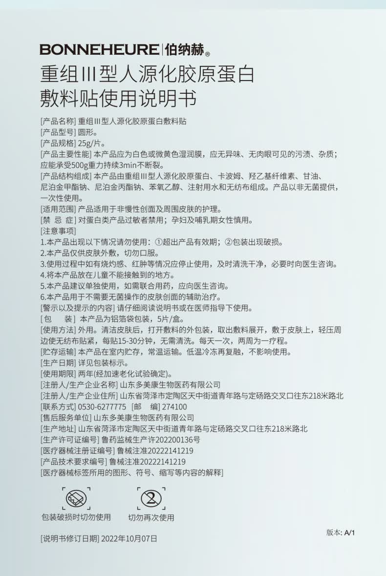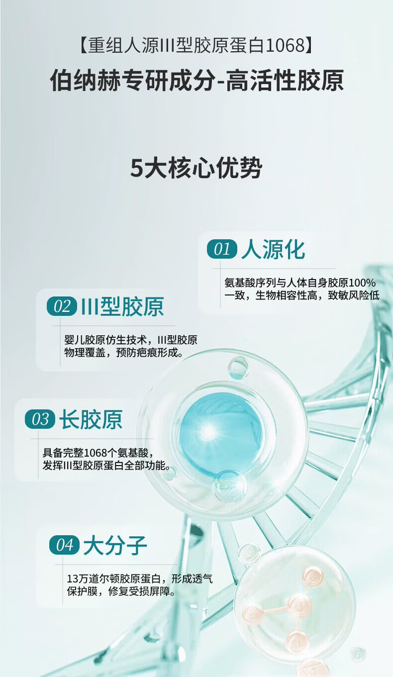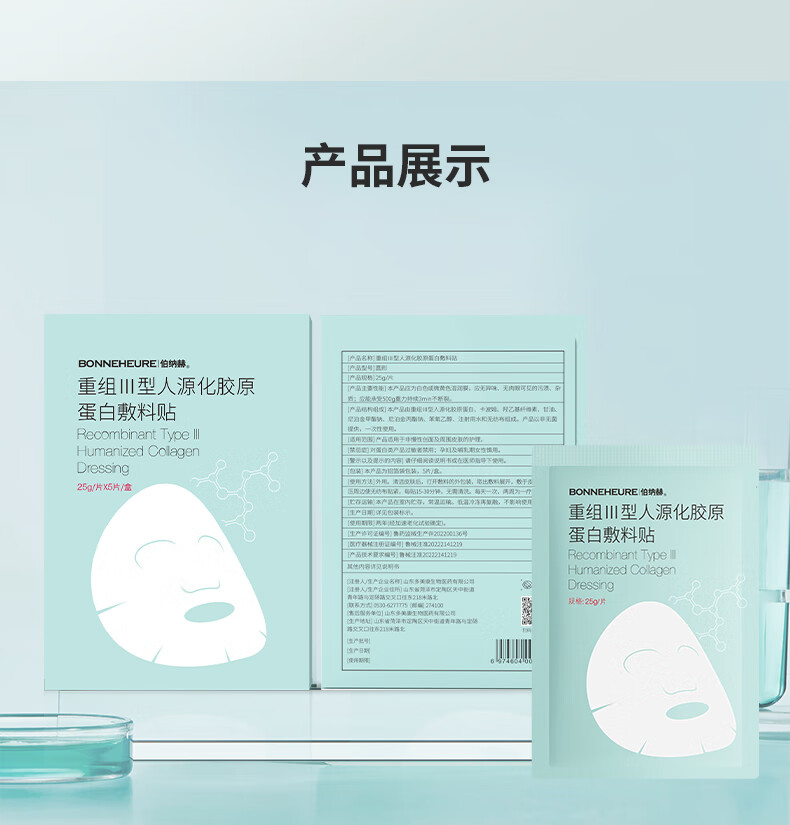 伯纳赫医用重组胶原蛋白功能敷料贴 适用于非慢性创面及周围皮肤的护理 【胶原全新升级版】5片/盒
