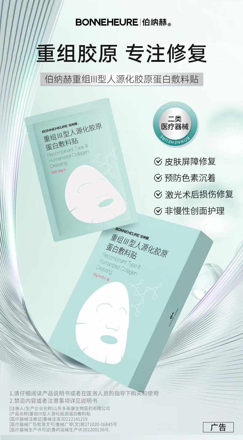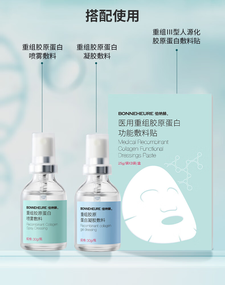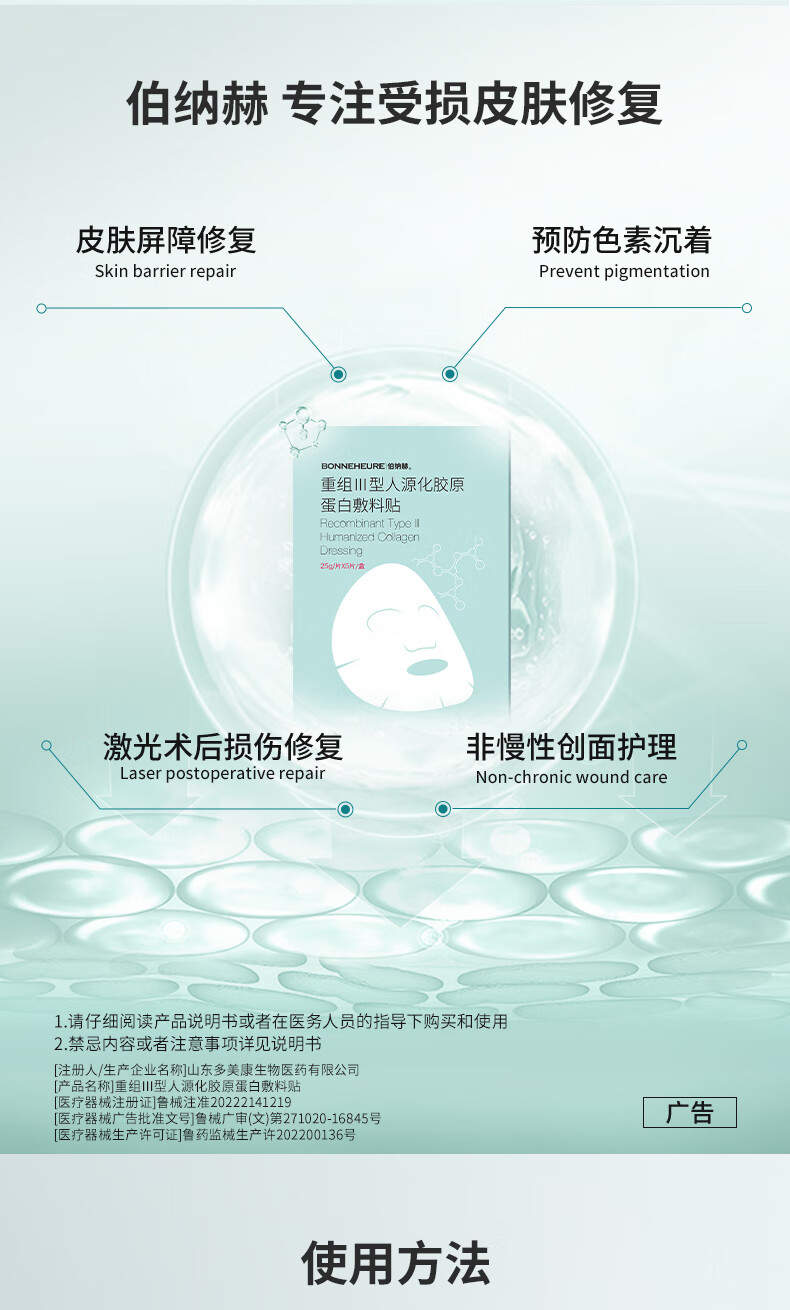 伯纳赫医用重组胶原蛋白功能敷料贴 适用于非慢性创面及周围皮肤的护理 【胶原全新升级版】5片/盒