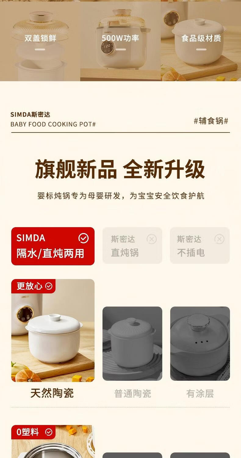 SIMDA斯密达电炖锅燕窝炖盅BB煲粥汤饭锅婴儿专用隔水炖盅宝宝辅食锅 隔水炖/直炖两用【辅食/燕窝】 0.8L