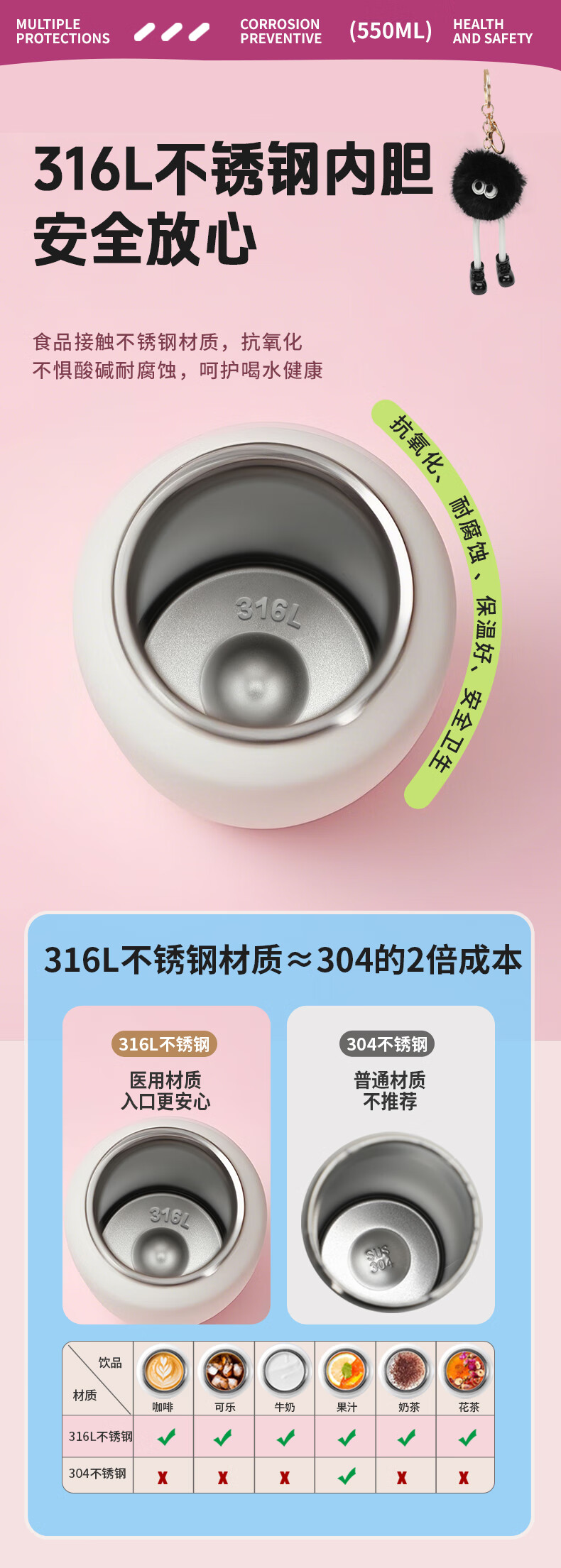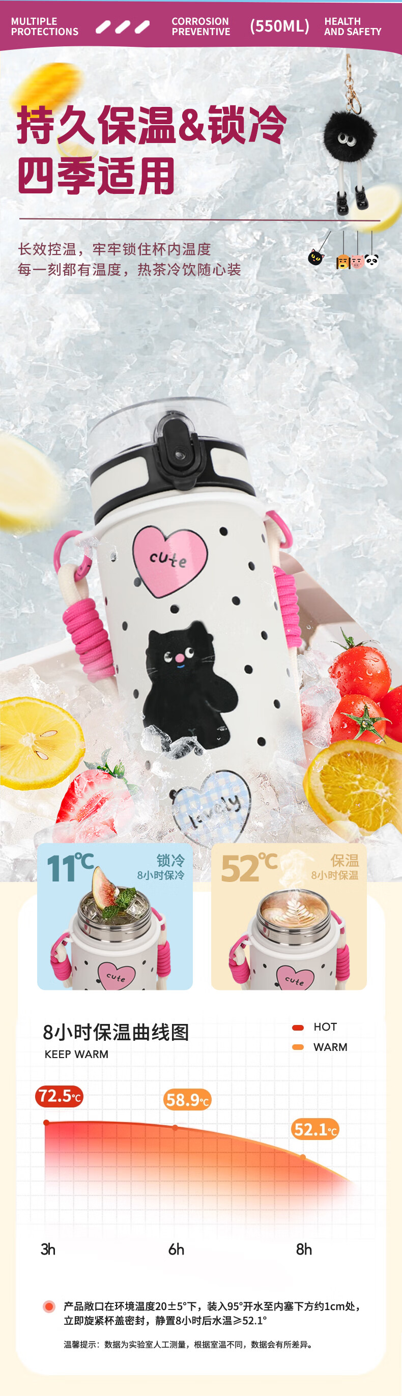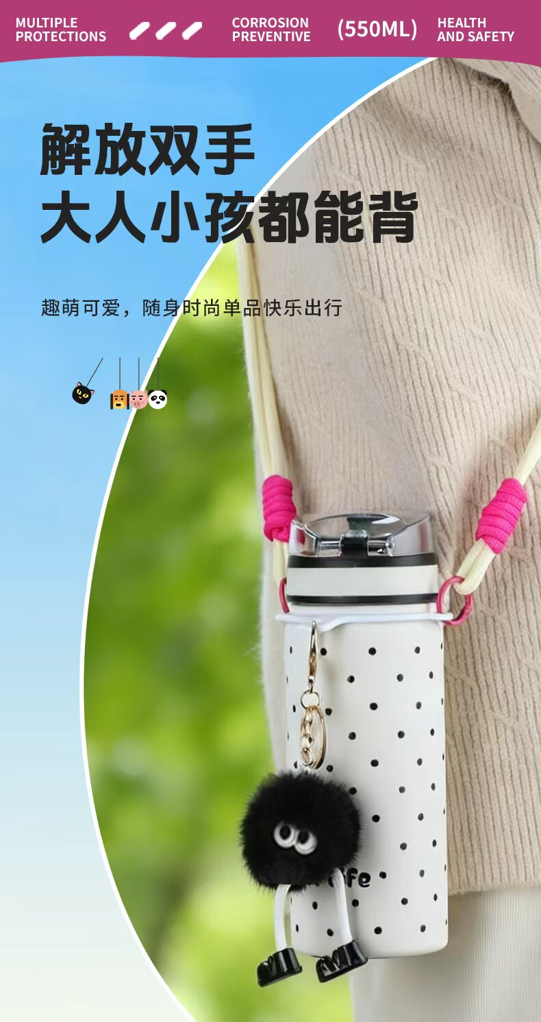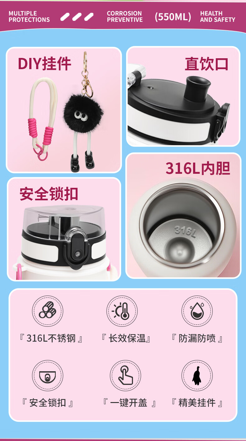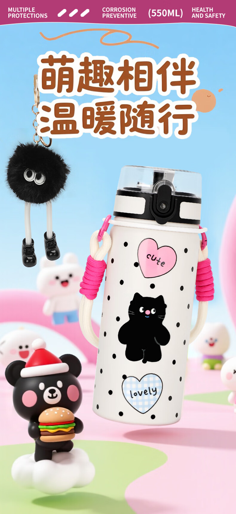 闲适生活保温杯女生 新款高颜值女士大容量便捷316L不锈钢上学专用水杯 高颜值500ml瞄趣杯【送挂件玩偶】