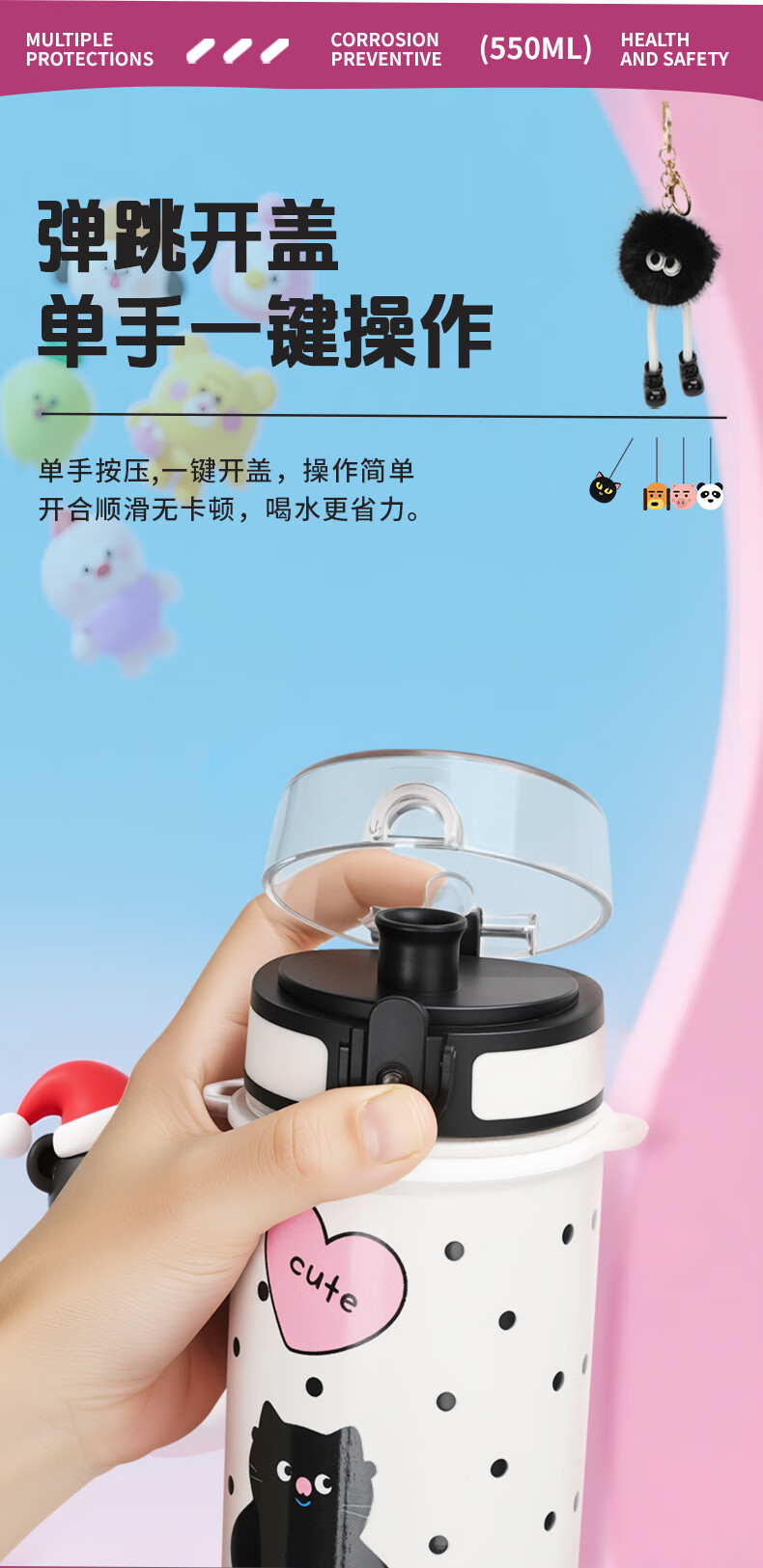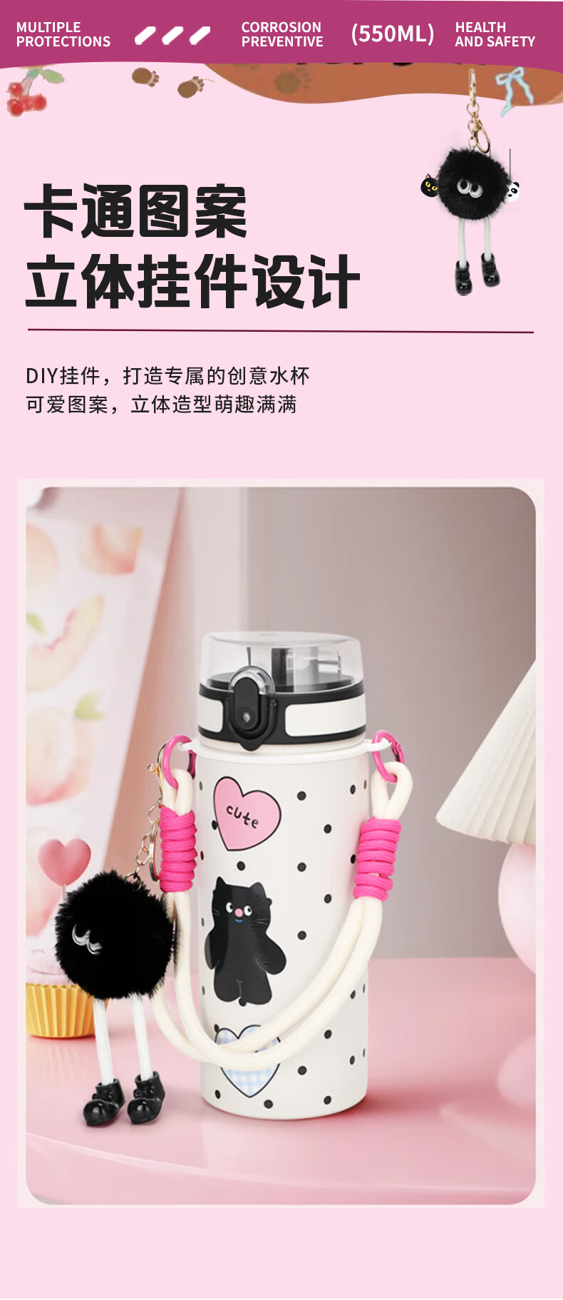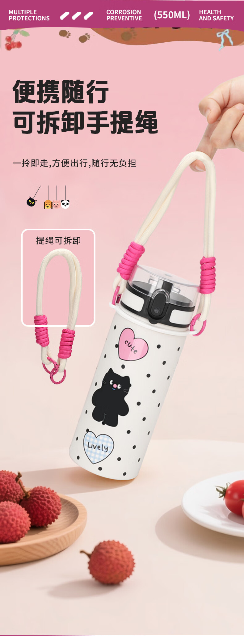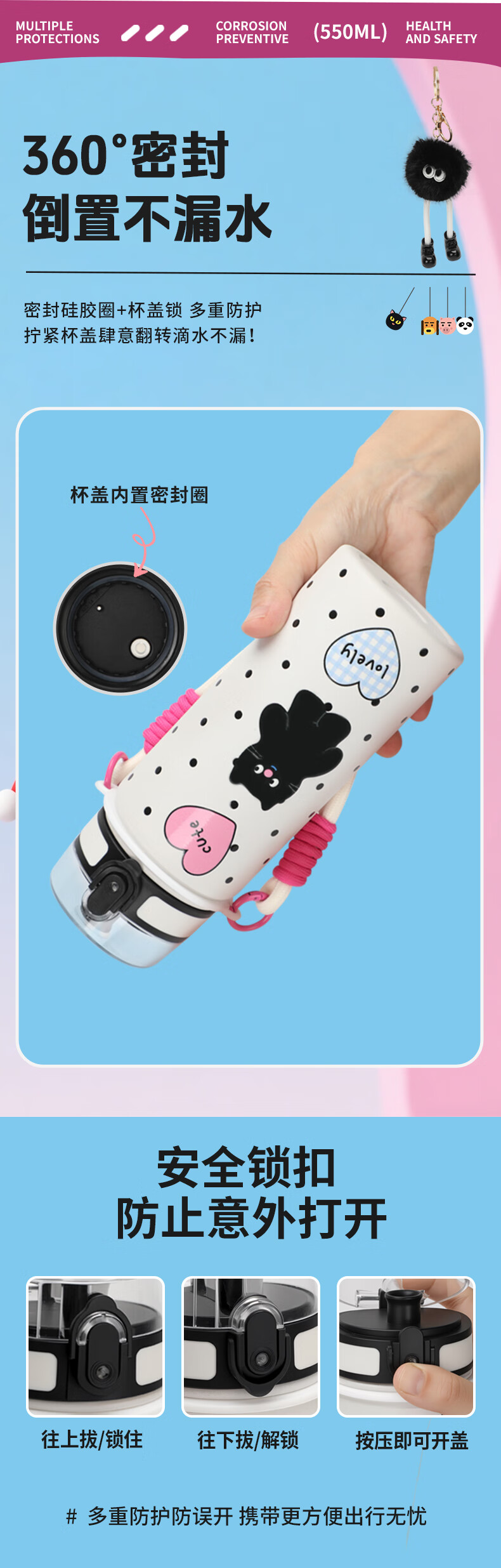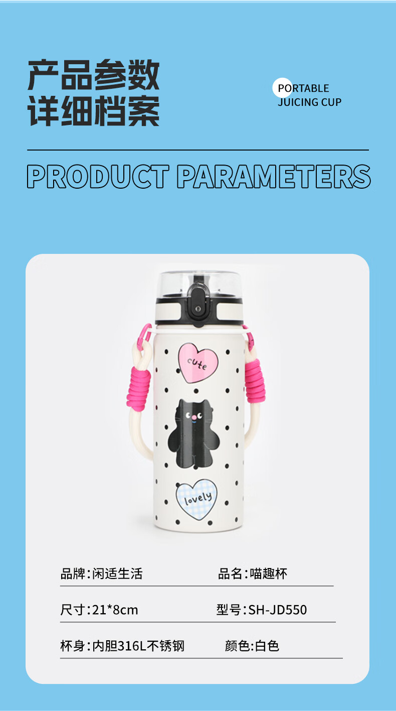 闲适生活保温杯女生 新款高颜值女士大容量便捷316L不锈钢上学专用水杯 高颜值500ml瞄趣杯【送挂件玩偶】