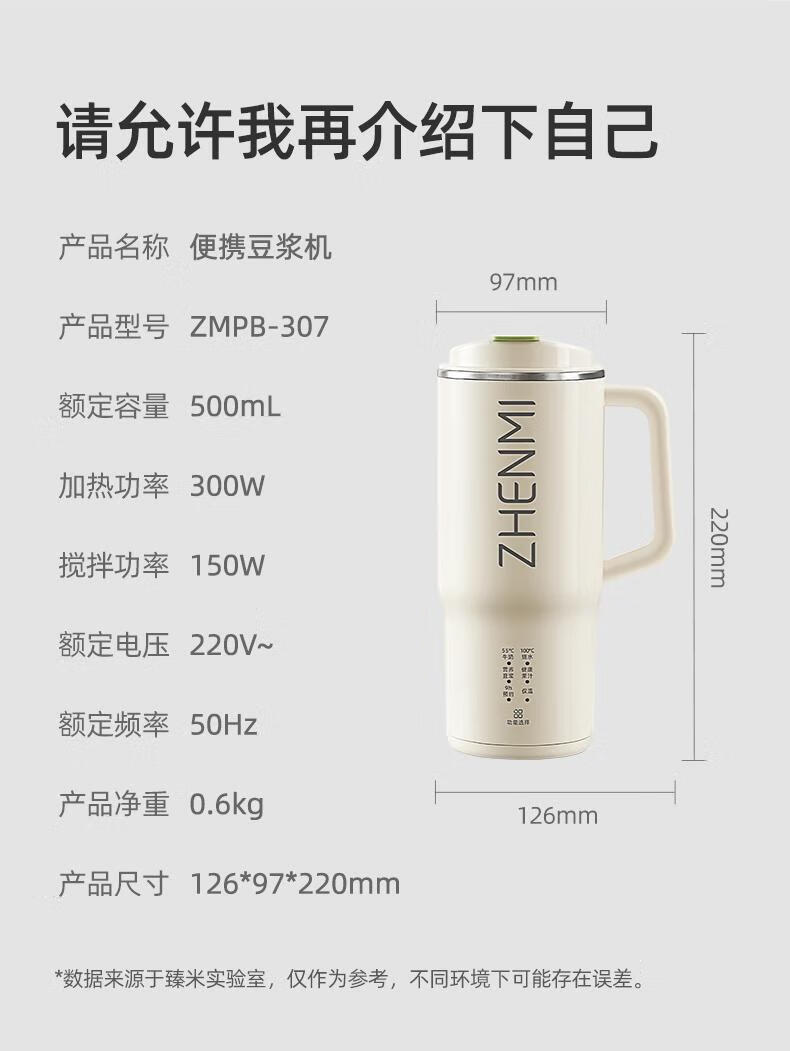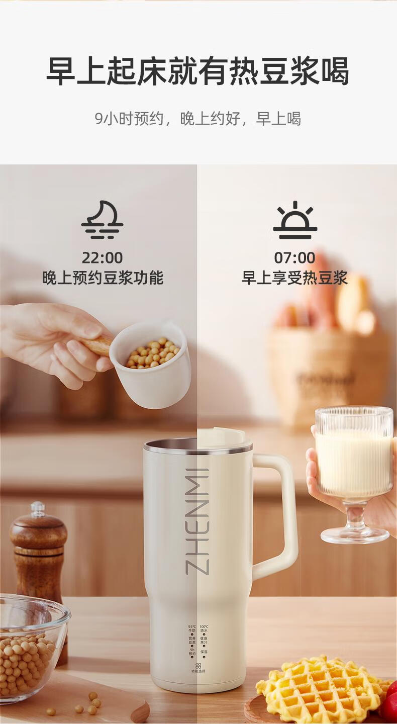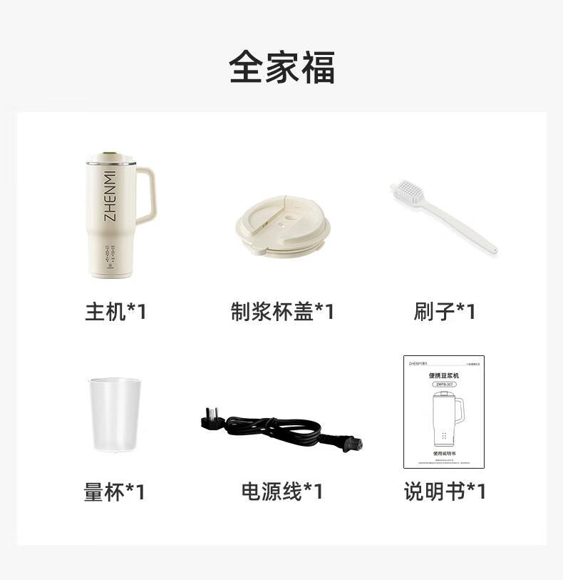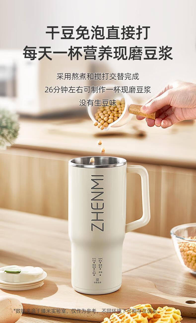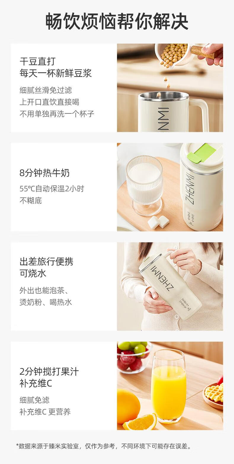 臻米/臻米榨汁机干豆直打豆浆机烧水杯热奶神器全自动迷你小型 【米白色】免泡直接打 0.5L 双盖