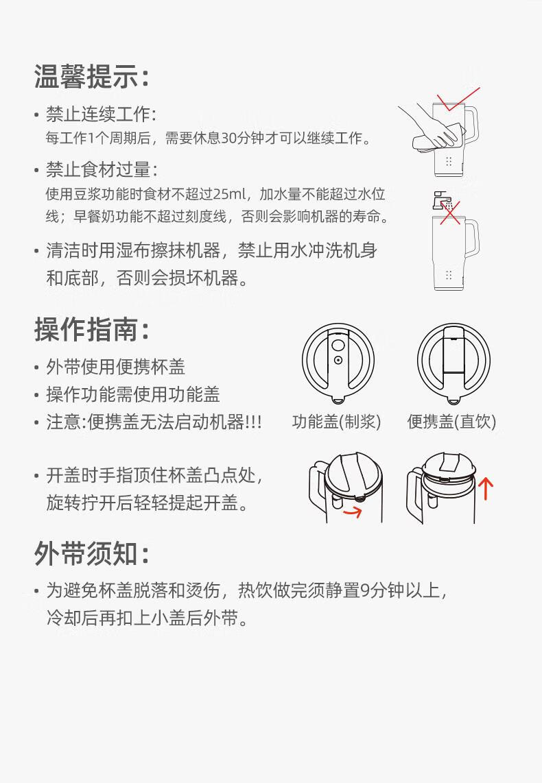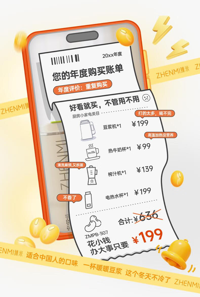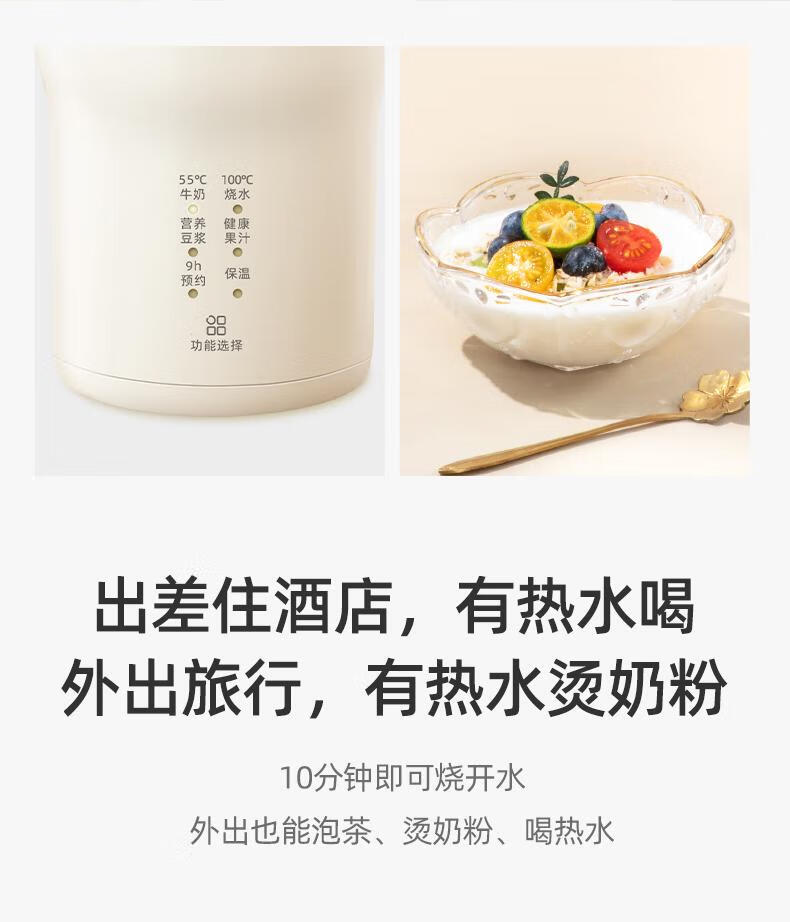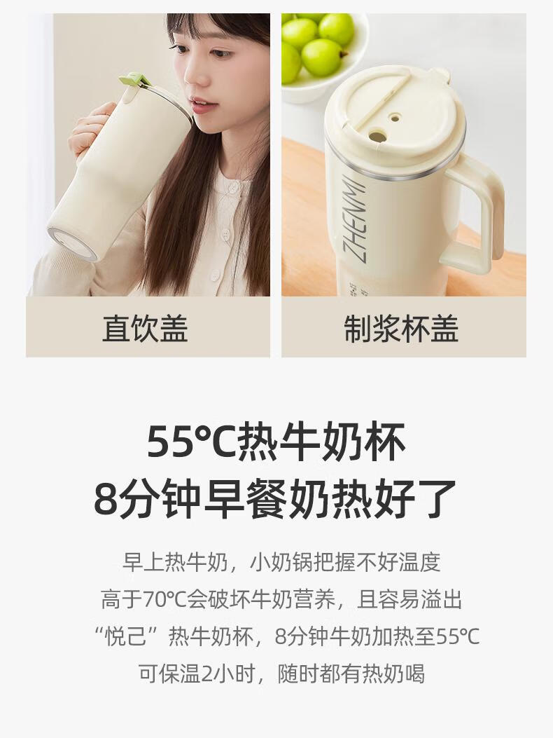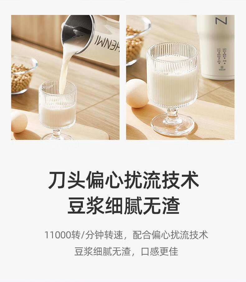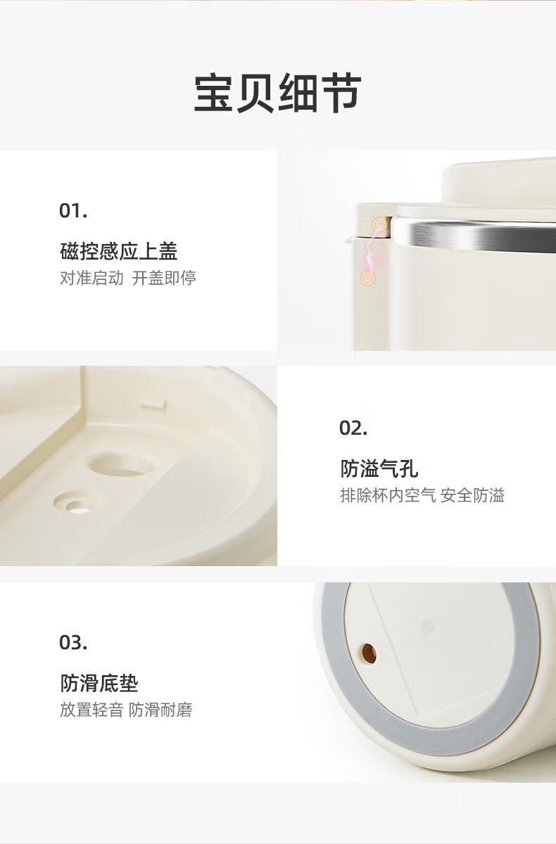 臻米/臻米榨汁机干豆直打豆浆机烧水杯热奶神器全自动迷你小型 【米白色】免泡直接打 0.5L 双盖