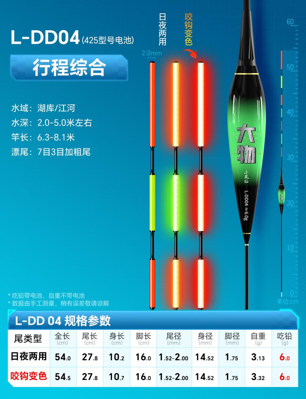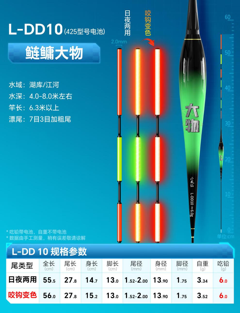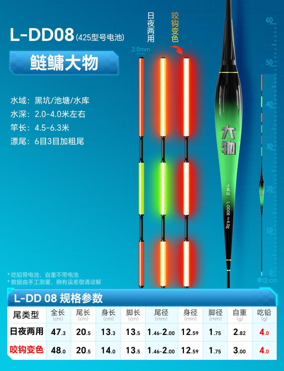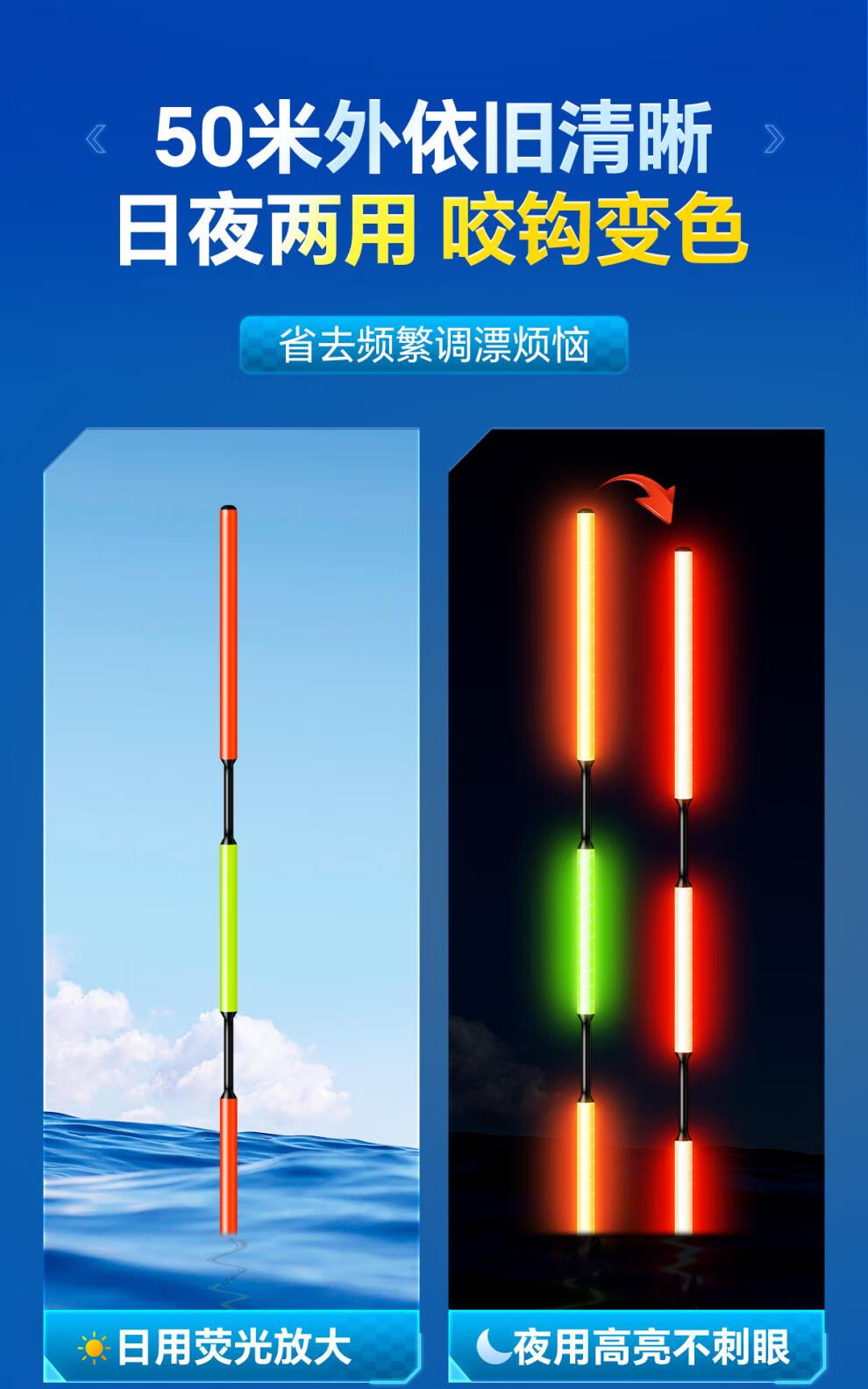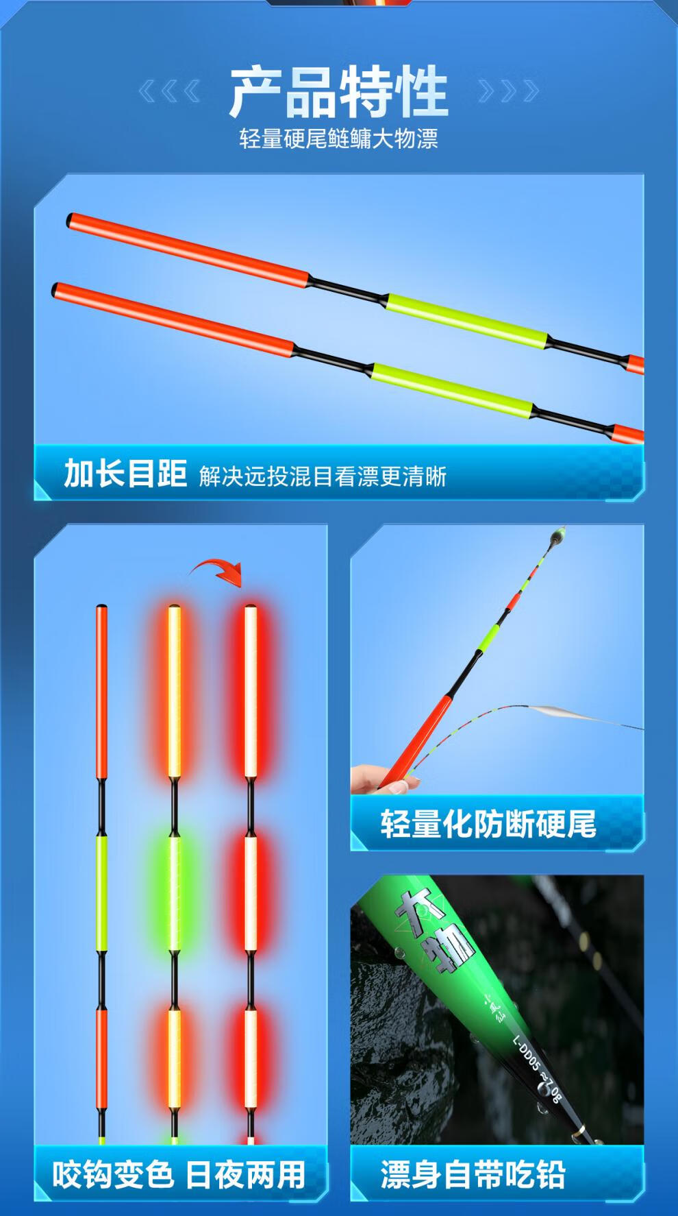 宰搂鲢鳙大物夜光漂咬钩变色日夜两用浮漂加粗醒目行程鱼漂远投 L-DD6吃铅8点0g青草鳊翘鲢鳙 日夜两用咬钩变色2支装送2