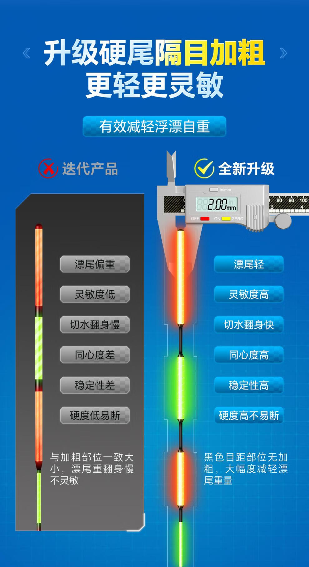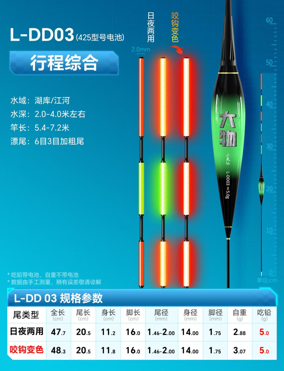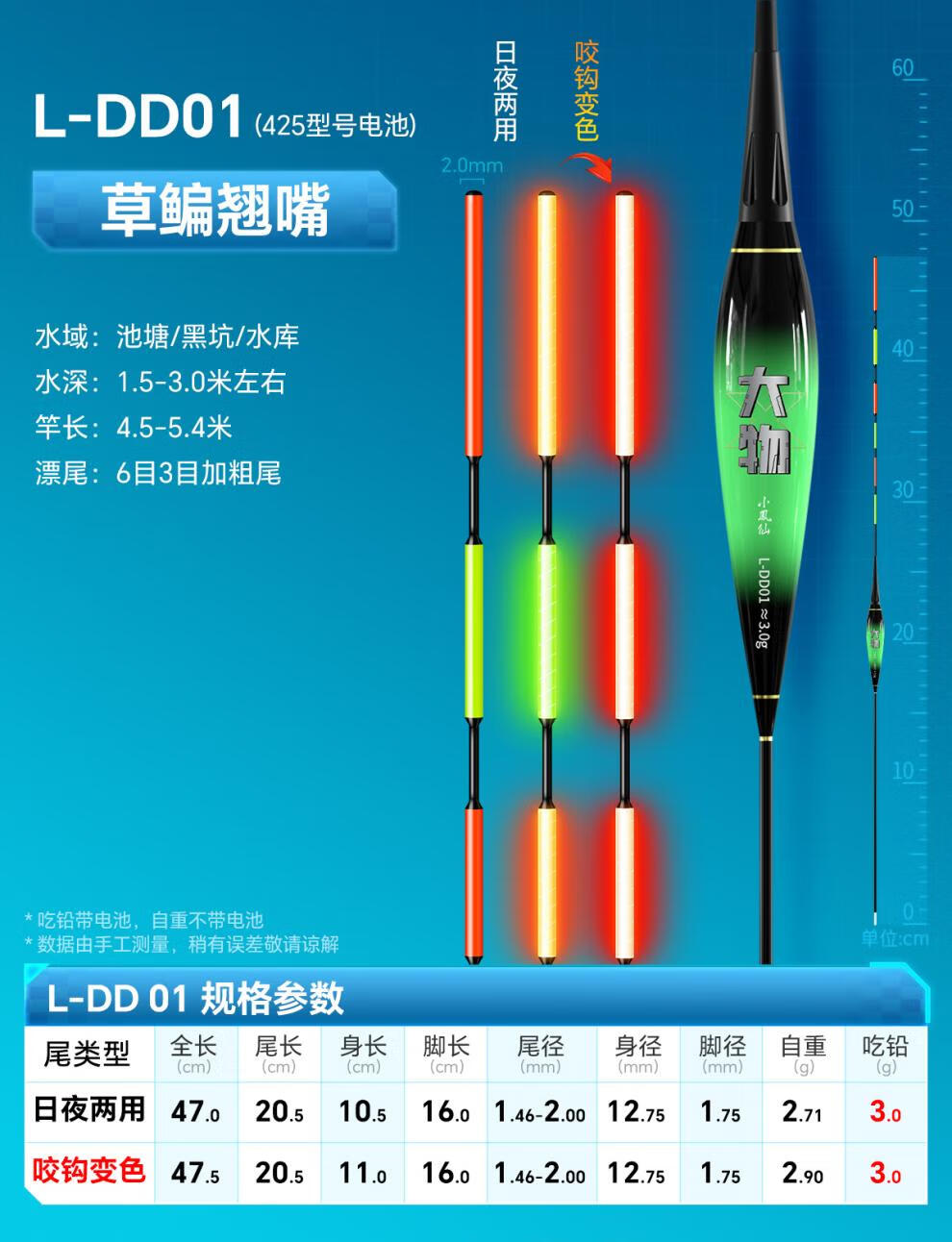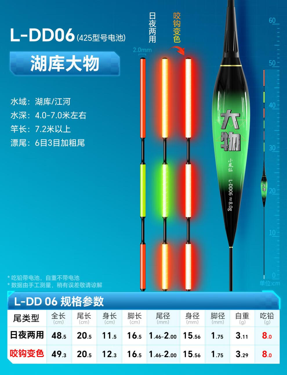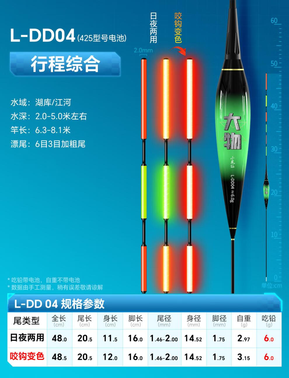 宰搂鲢鳙大物夜光漂咬钩变色日夜两用浮漂加粗醒目行程鱼漂远投 L-DD6吃铅8点0g青草鳊翘鲢鳙 日夜两用咬钩变色2支装送2