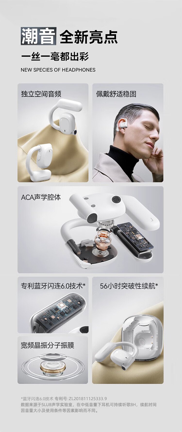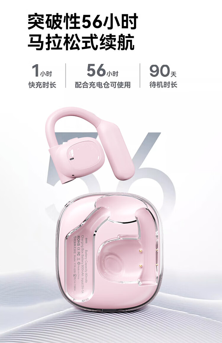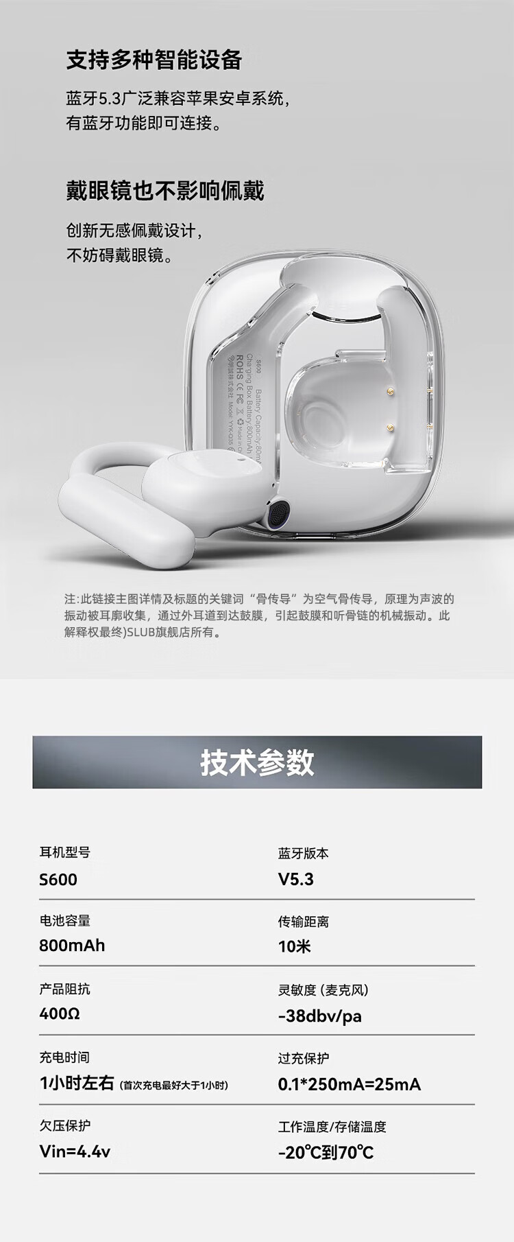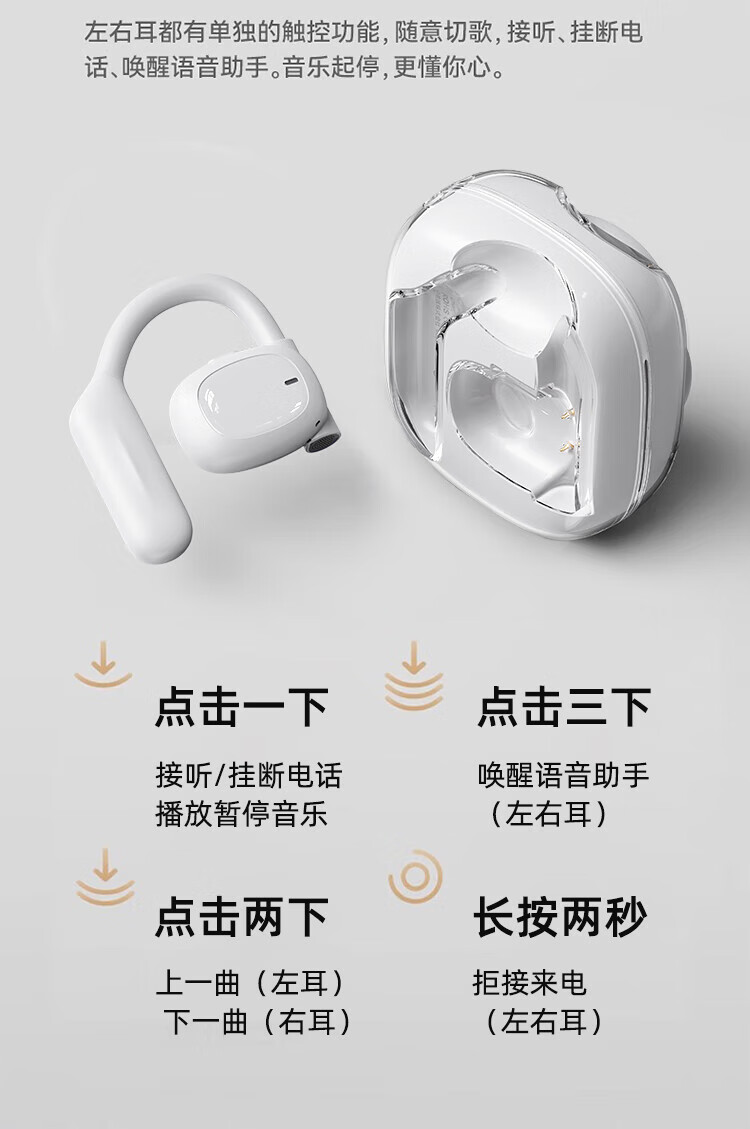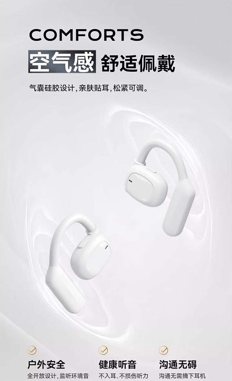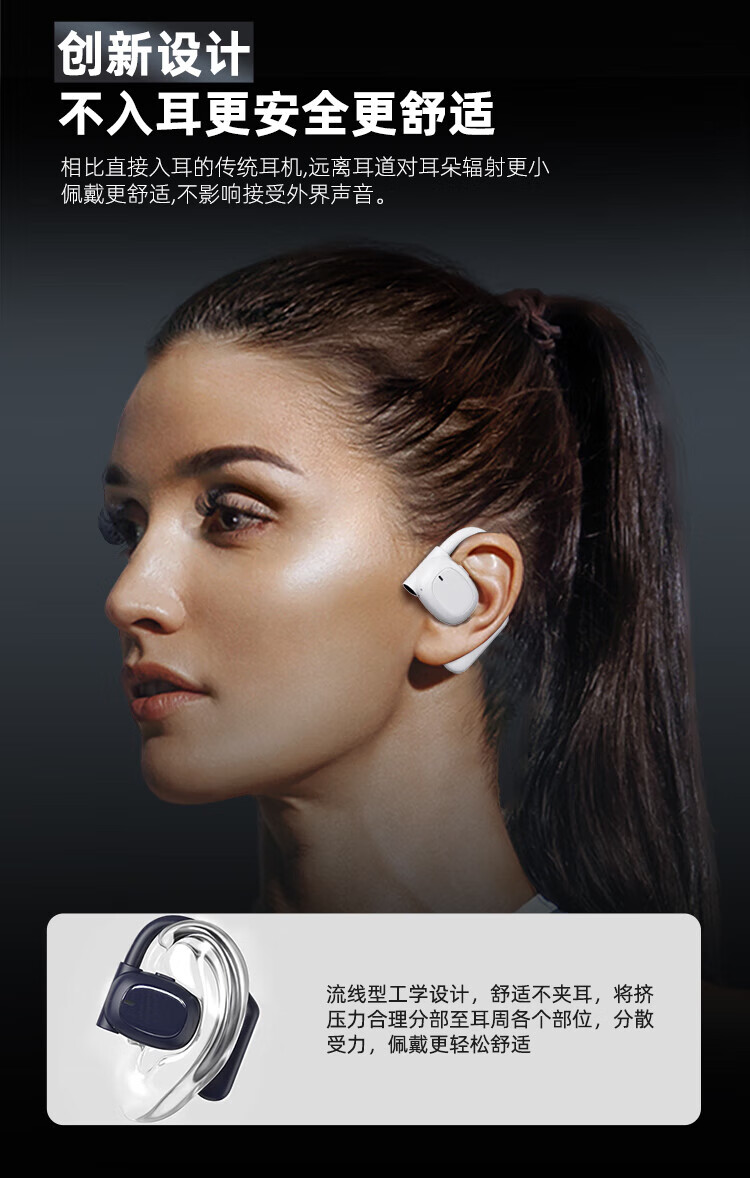 SLUB【全新顶配丨舒适好听】骨传导蓝牙耳机挂耳式开放式不入耳运动通话降噪适用小米苹果安卓手机通用 【舒适不入耳|全景环绕音】珠白