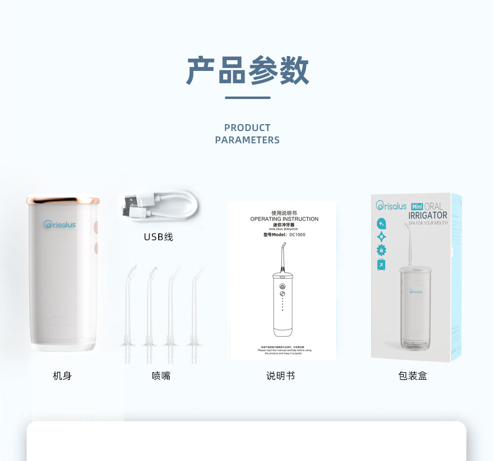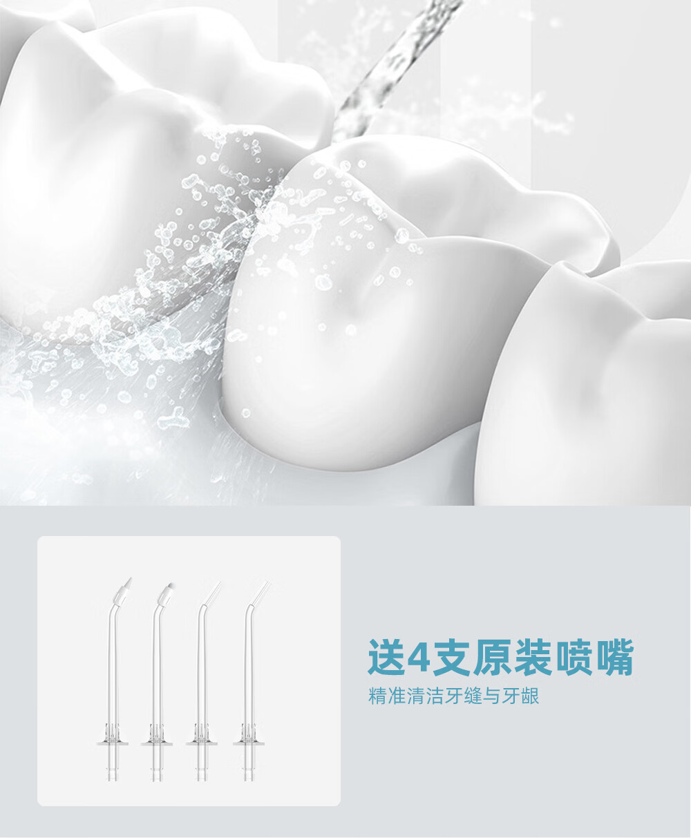 Orisalus便携冲牙器【畅销海外12年】洗牙器水牙线牙齿冲洗器清洁口腔牙缝牙黄结石洁牙器节日礼物出行必备 白色 2支喷头 脉冲水流+三档模式【超性价比款】