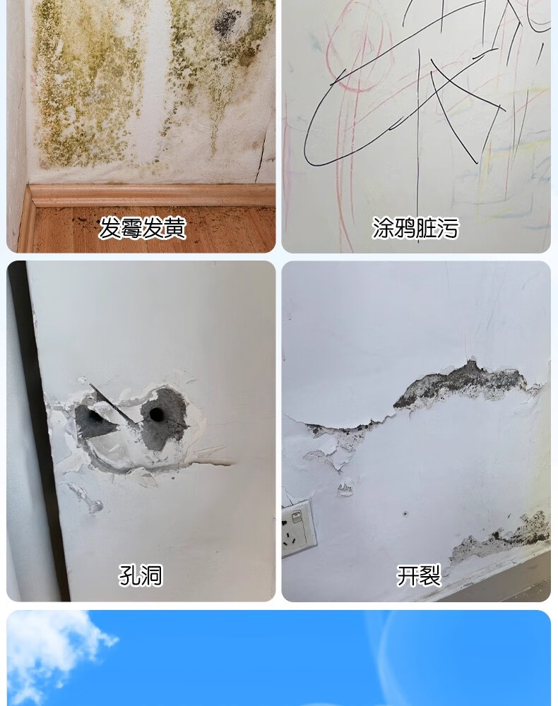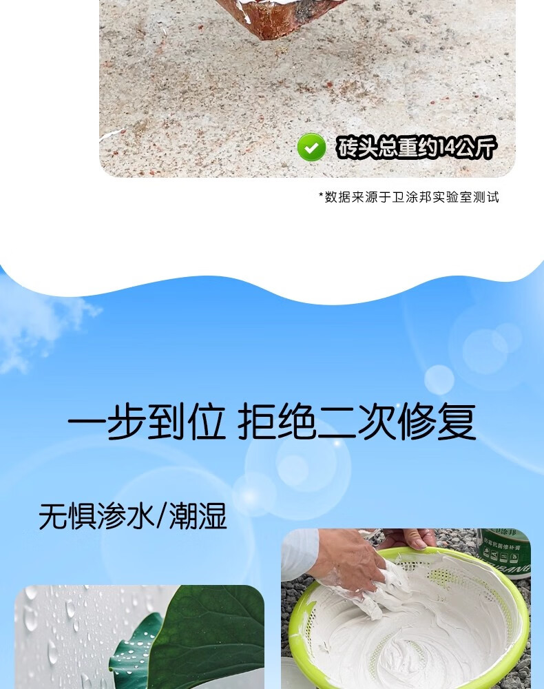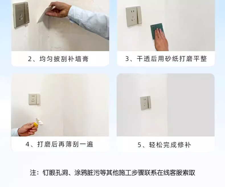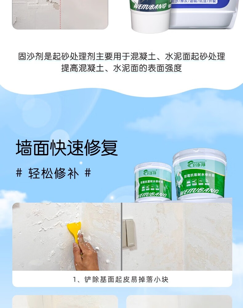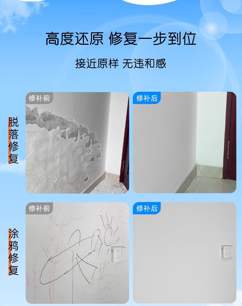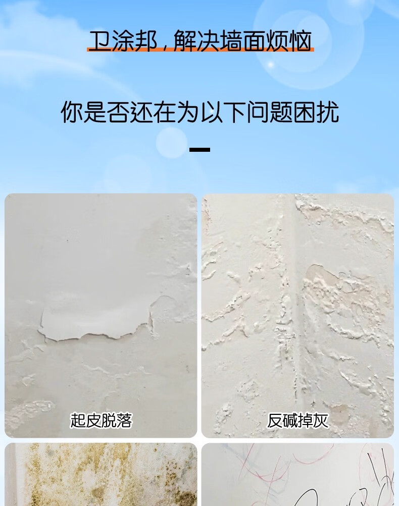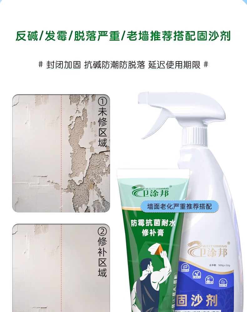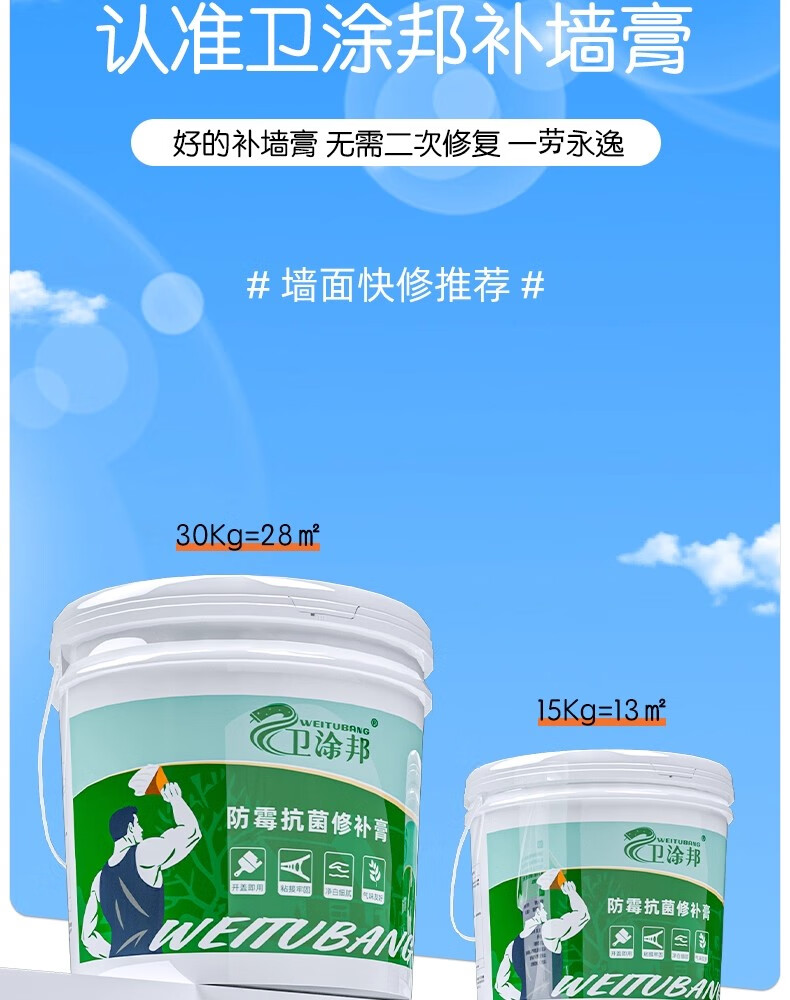 卫涂邦补墙膏墙面修补膏白色墙体修复腻子膏墙壁白墙补墙漆家用防水防潮 补墙膏 1kg*1件 【抗裂\耐水\防霉】约1平方+送工具