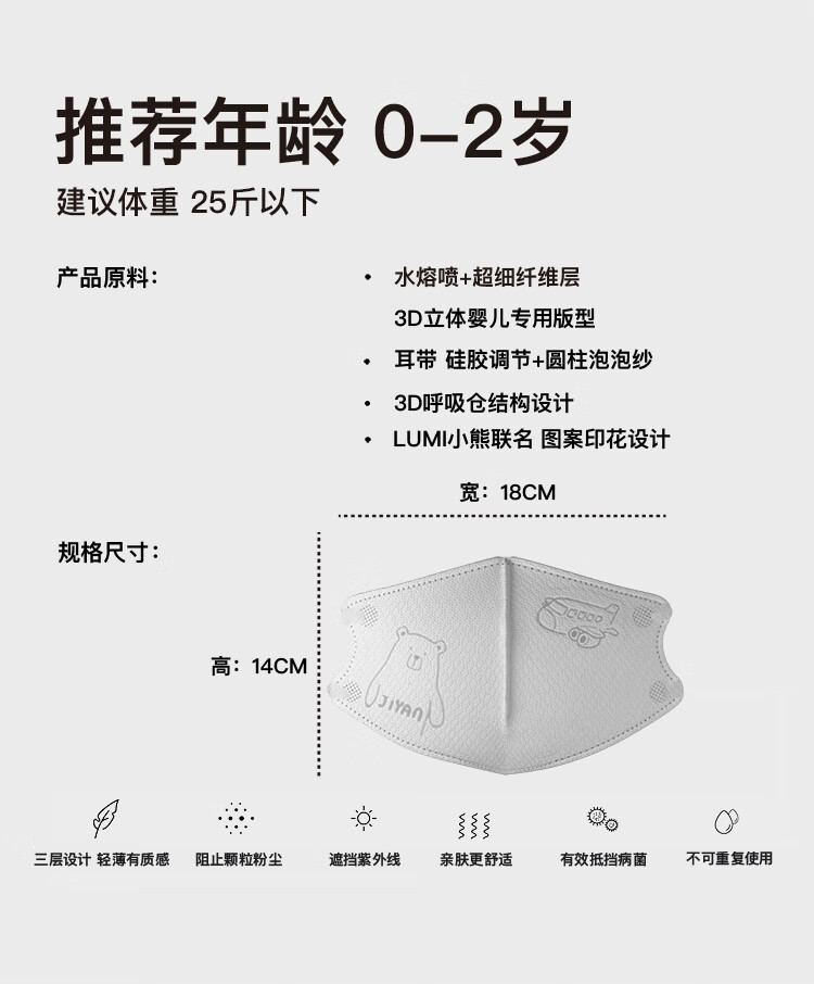 吉研婴幼儿童防护口罩防粉尘飞沫细菌轻薄透气不勒耳独立包装0-2岁 3盒【买6盒送3盒】到手90只 0-2岁可用【建议25斤以下】