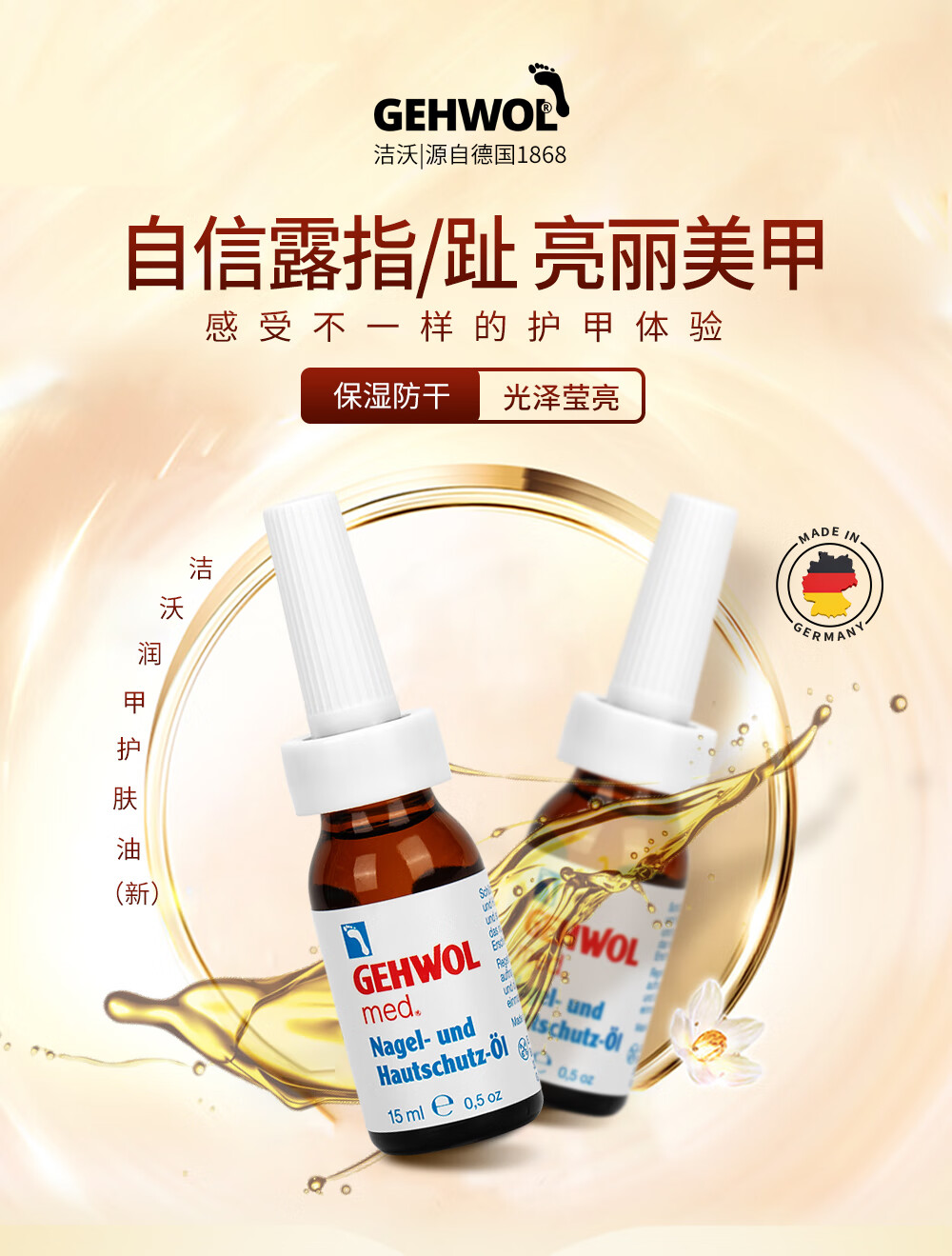 洁沃(GEHWOL) 润甲护肤油15ML 指甲油 德国原装进口 滋润软化润甲油 15ml
