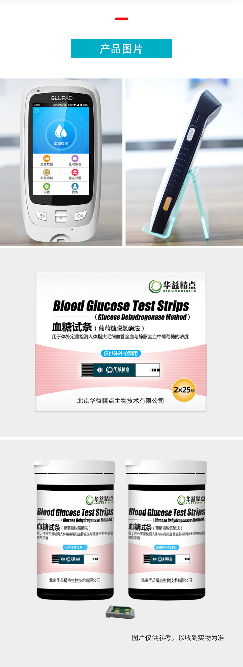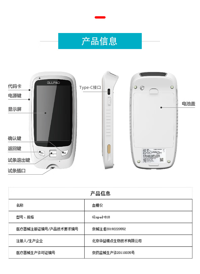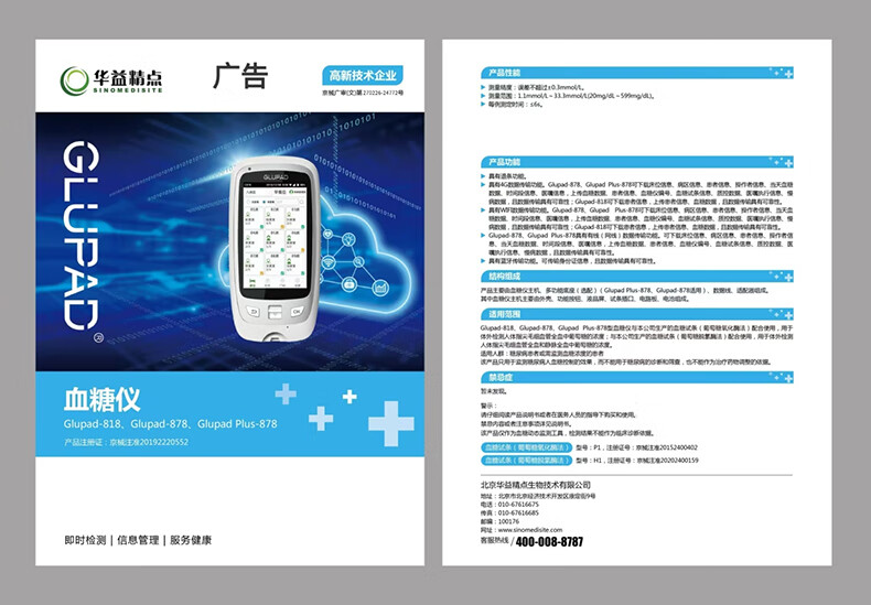 华益精点Glupad-818型血糖仪 医用级高精准度家用血糖检测仪套装礼盒装 【升级低痛】Glupad-818 100条试纸套装