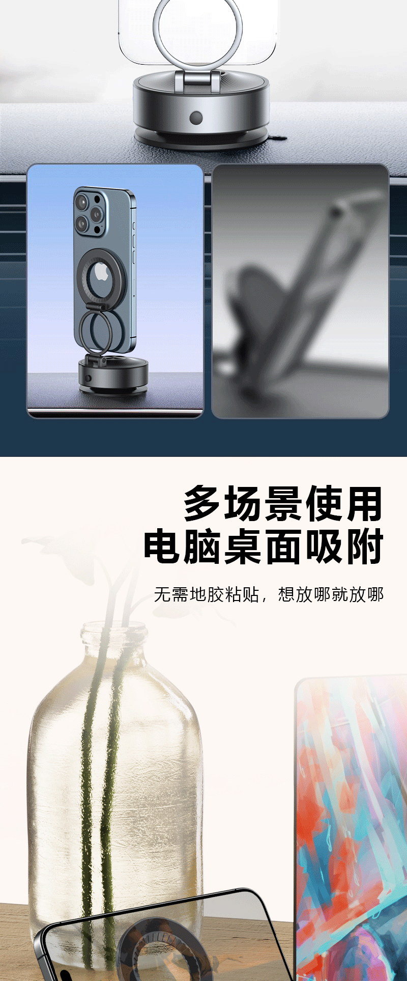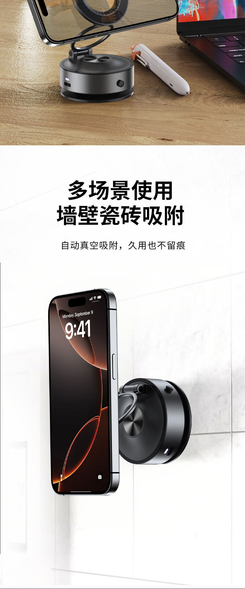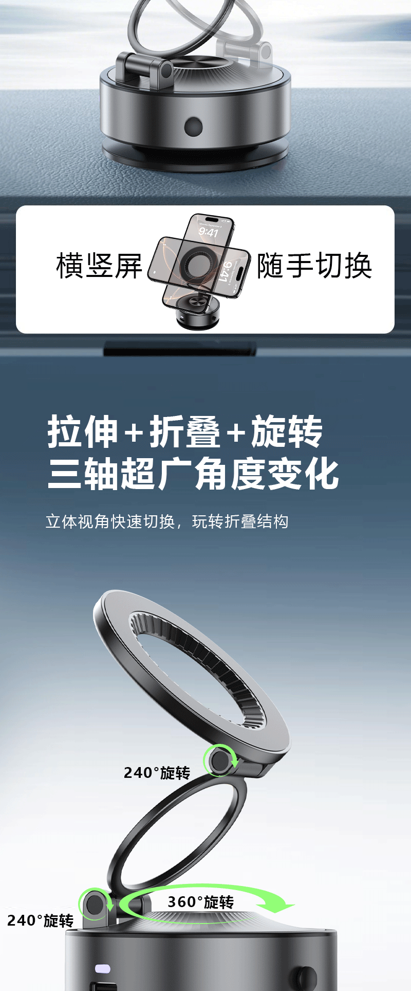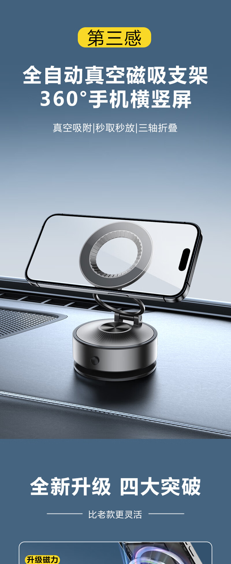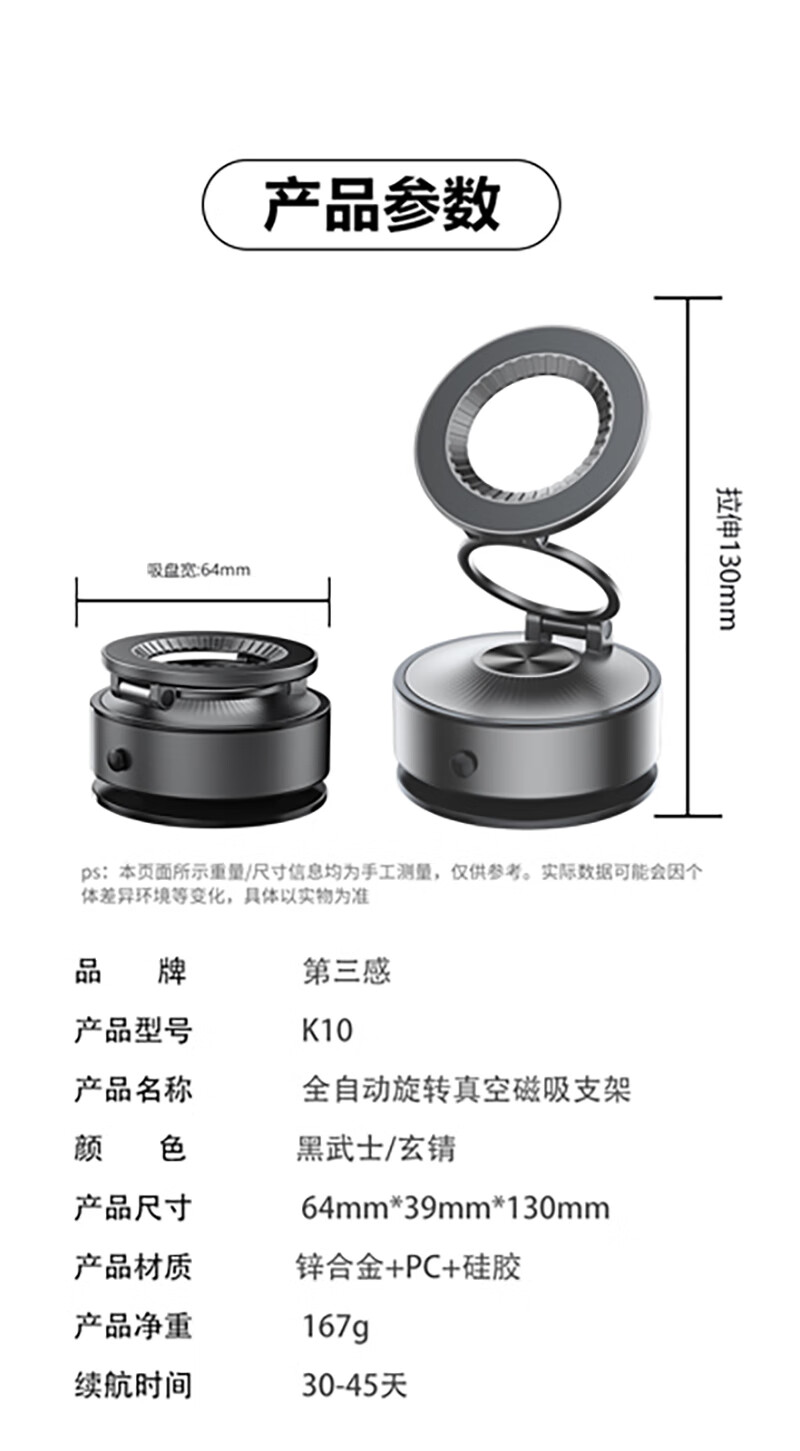 第三感全自动真空吸附金属磁吸旋转车载手机支架汽车桌面直播电动支架 全自动真空吸附金属磁吸旋转支架【玄锖黑】