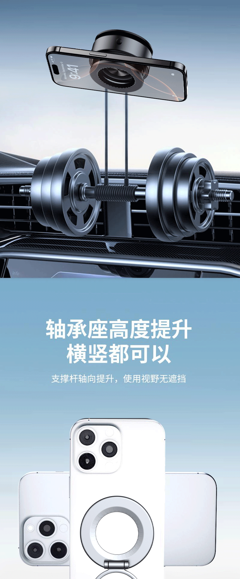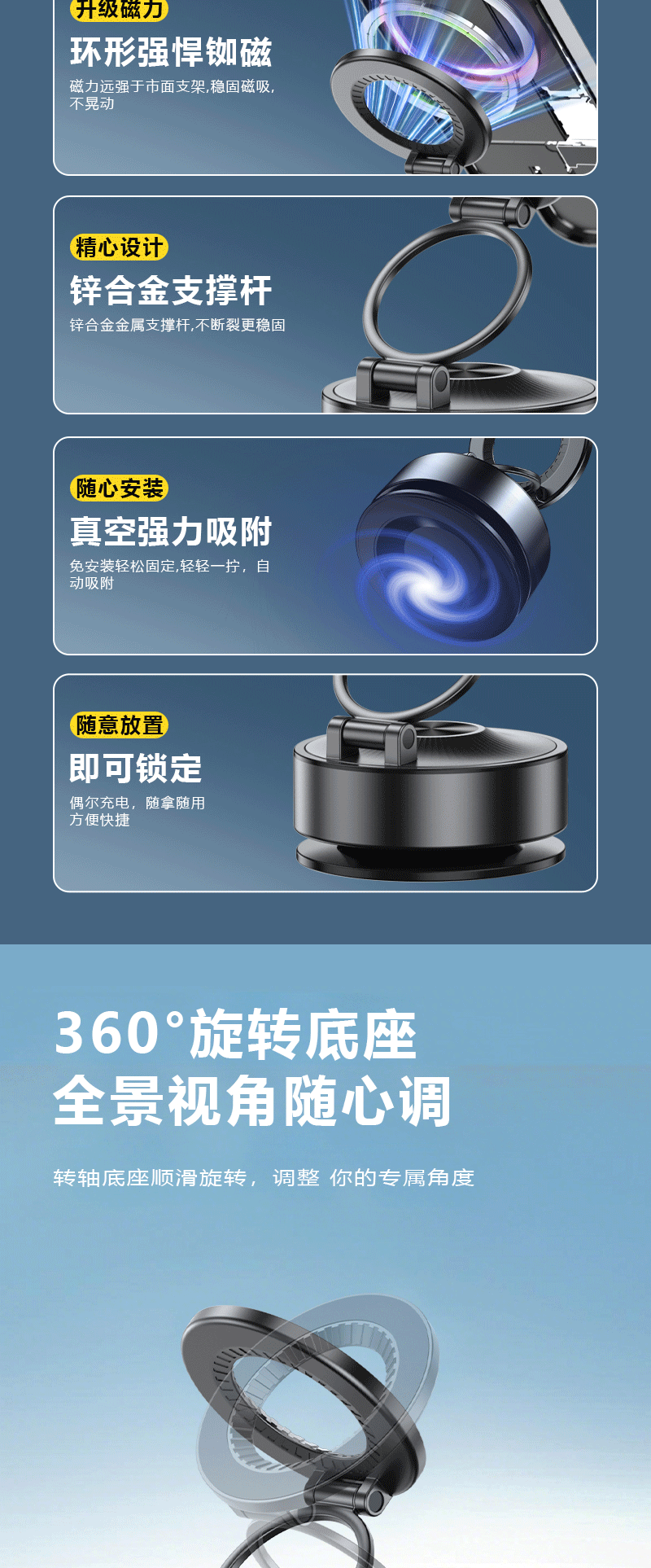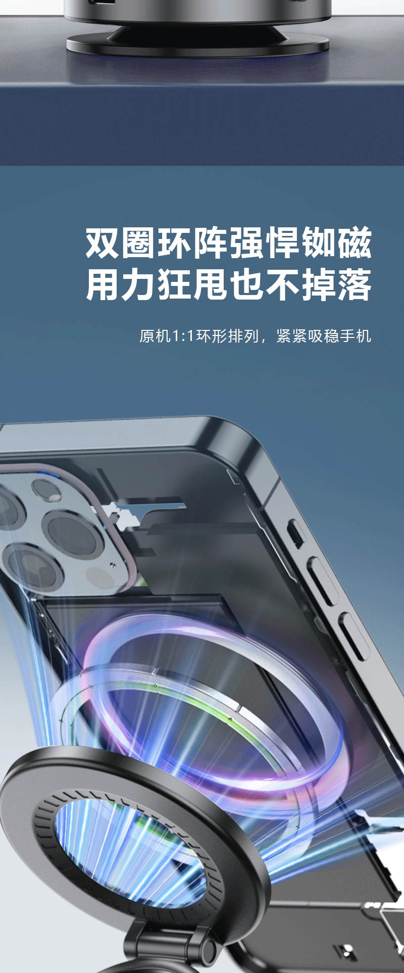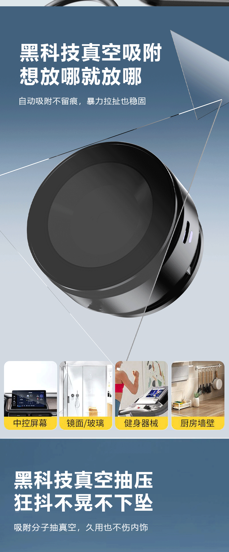 第三感全自动真空吸附金属磁吸旋转车载手机支架汽车桌面直播电动支架 全自动真空吸附金属磁吸旋转支架【玄锖黑】