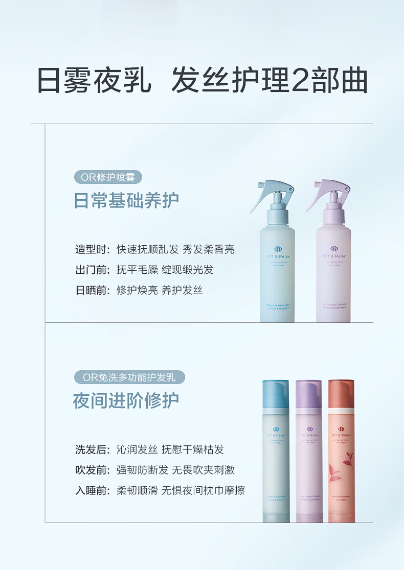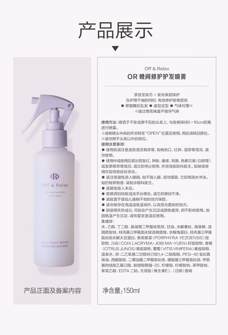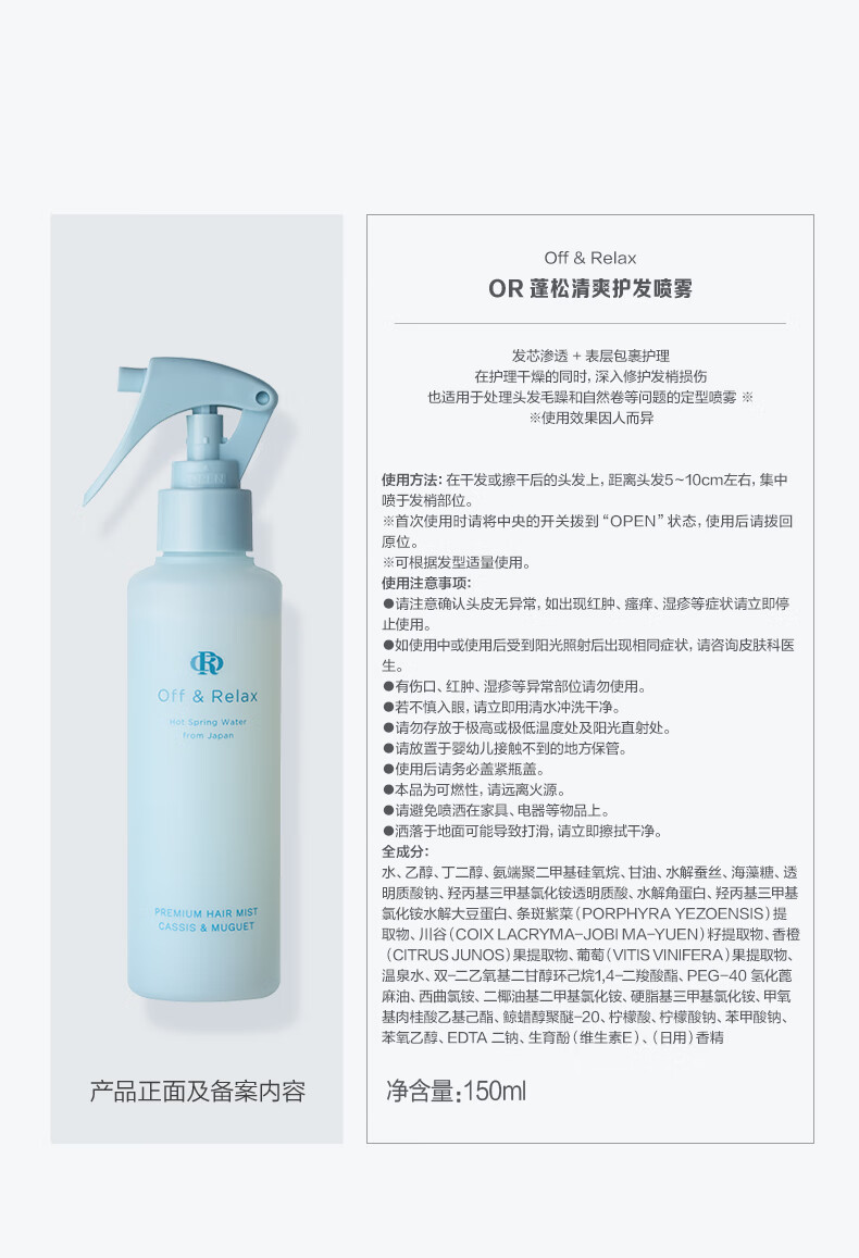 OFF&RELAX【新品抢先购】柔顺保湿护发润发精华 烫染修护防毛躁营养发喷 蓬松清爽护发喷雾150ml
