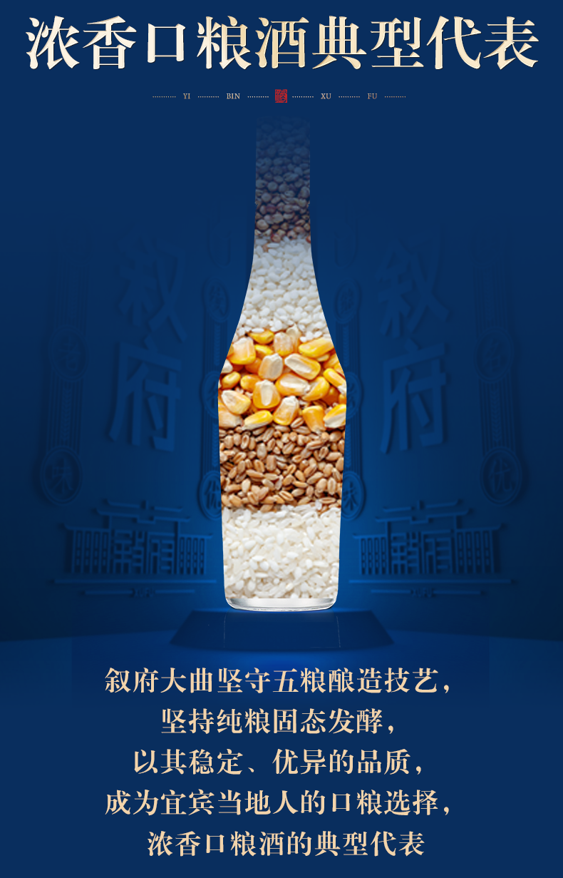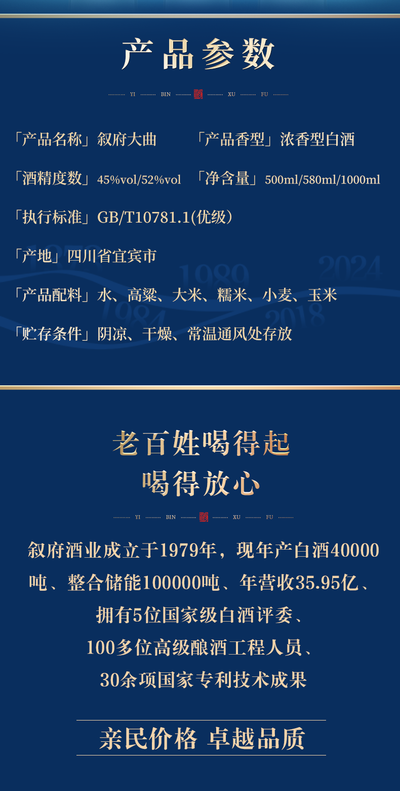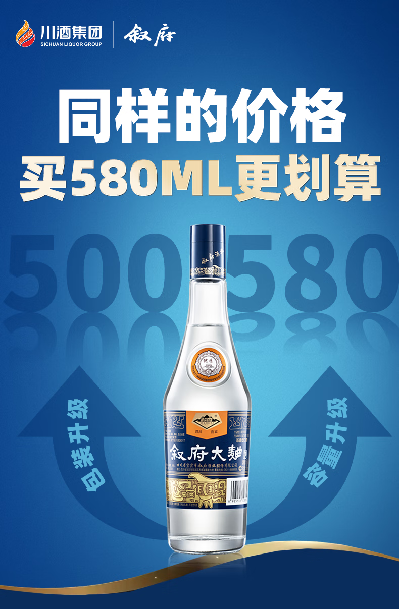 叙府酒 蓝标大曲 五粮浓香型白酒 纯粮食酒 口粮酒 光瓶酒 整箱装 52度 580mL 6瓶 整箱装