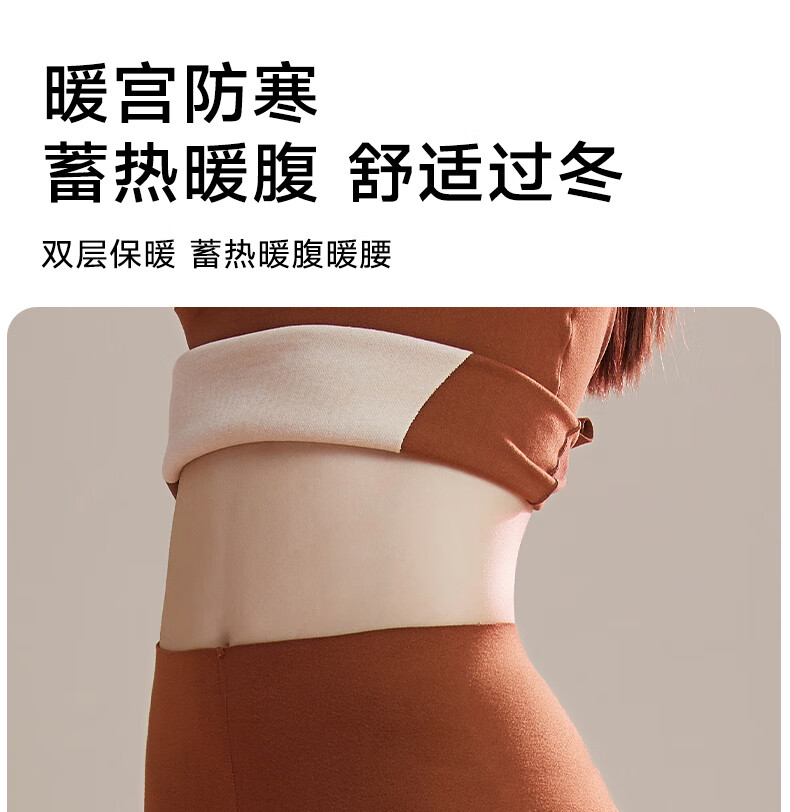 猫人无痕秋裤大码女士保暖裤薄款高腰内穿冬季双面磨绒抗菌打底裤 轻奢深咖色【双面加绒 高腰暖宫】 M 【推荐体重 90-105斤】
