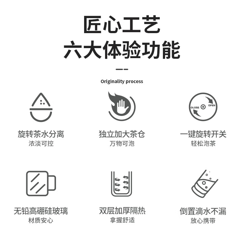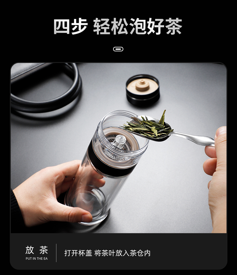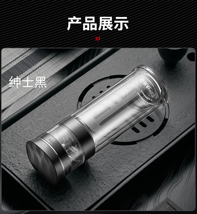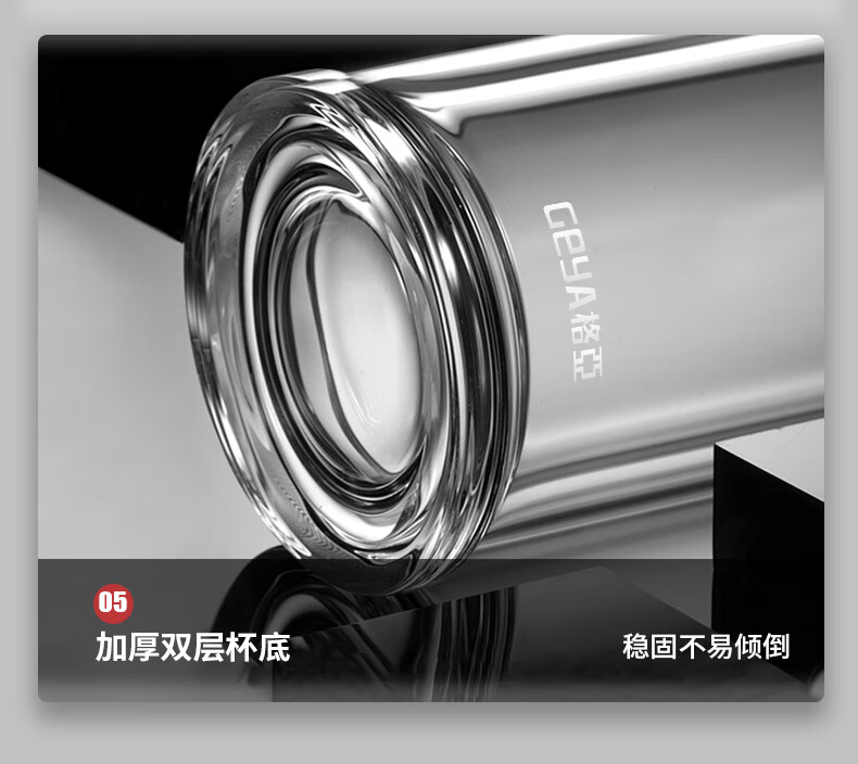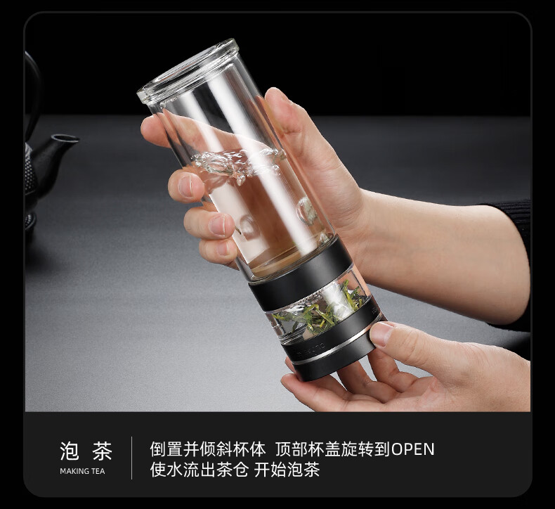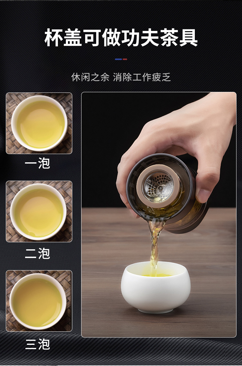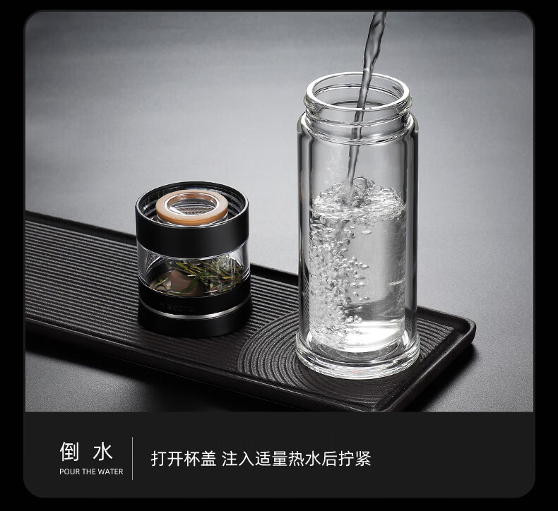 格亚(GEYA)茶水分离大容量玻璃杯双层茶杯男泡茶杯水杯便携杯子团购定制 咖啡色450ml