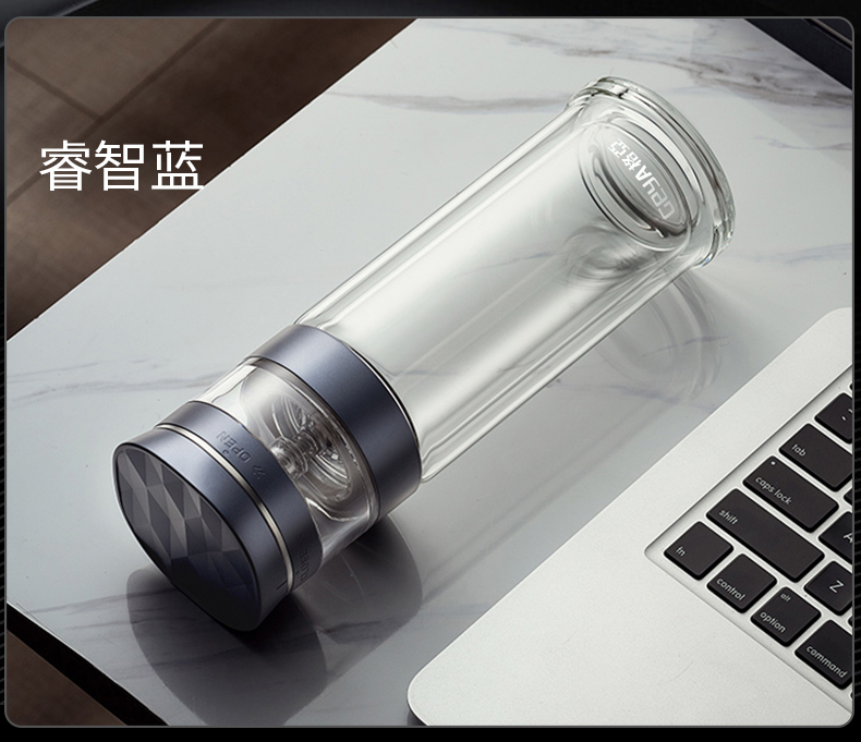 大卡纯钛保温杯高档焖茶杯茶水分离养生泡茶水杯商务办公礼品钛杯定制 青釉星碎【纯钛+礼盒】430ml